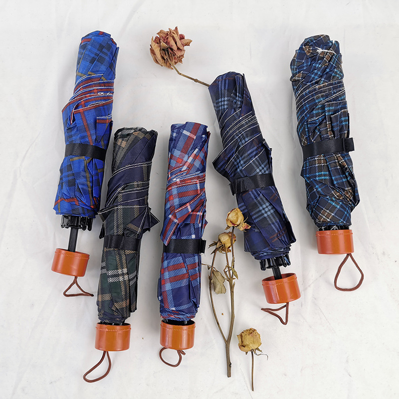 격자 무늬 우산 접는 우산 작은 휴대용 우산 수동 세 접힌 우산 남성 우산 도매 저렴한 우산