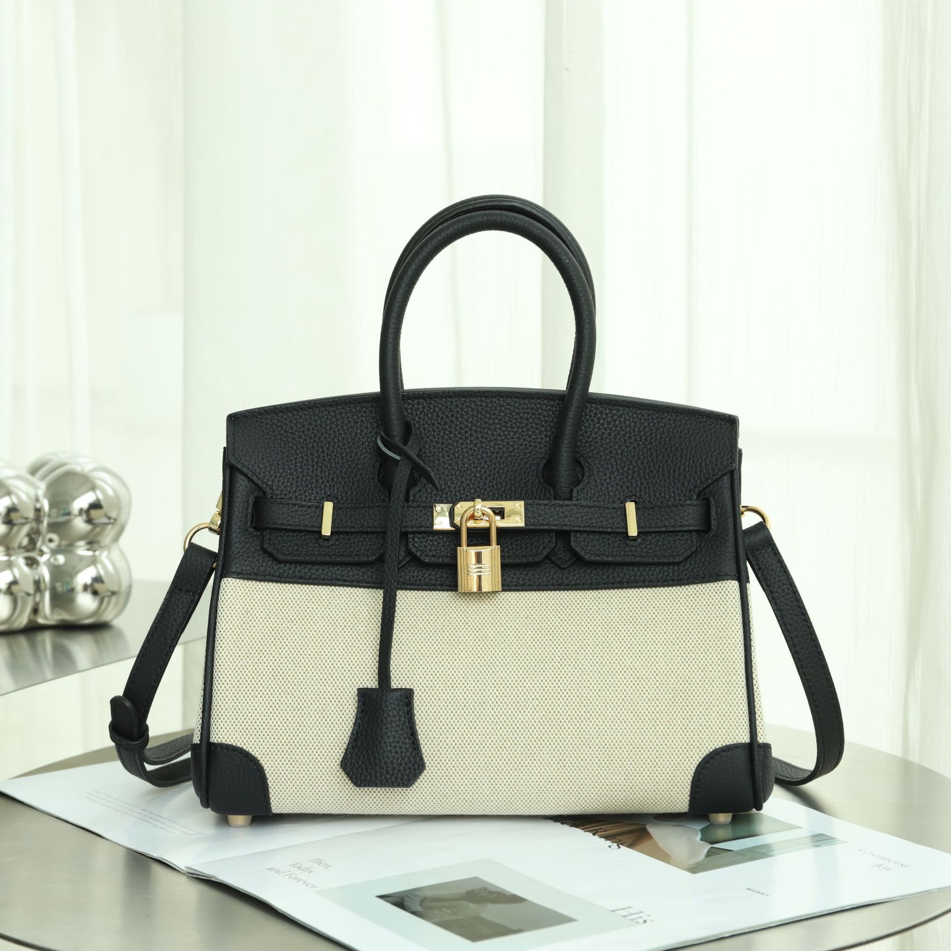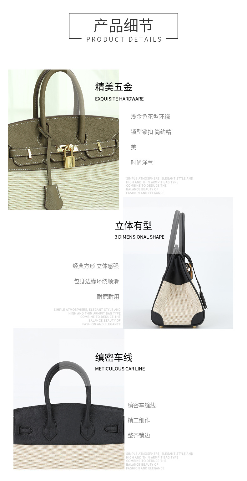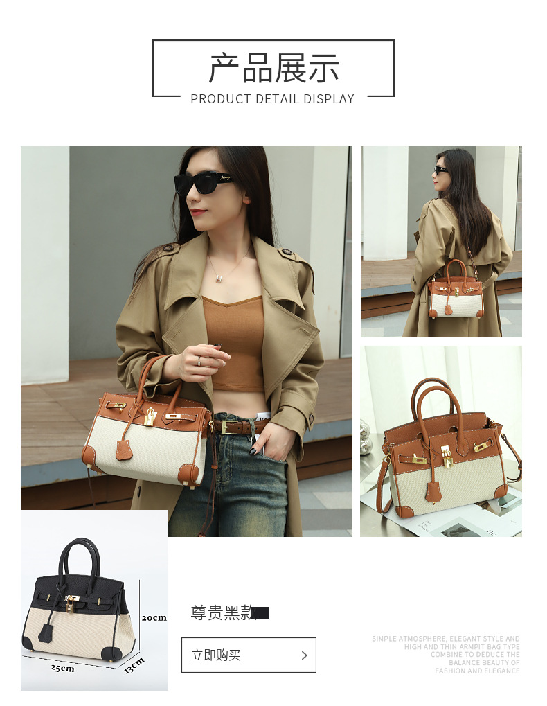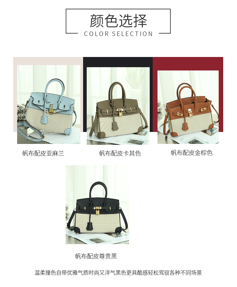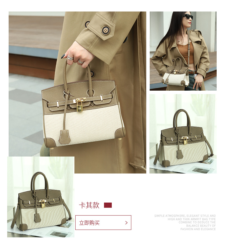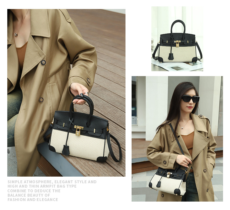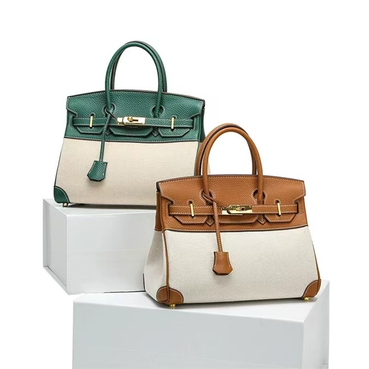 공장 맞춤형 플래티넘 백 여성용 대용량 가죽 여성용 가방 새로운 고급 캔버스 대비 색상 휴대용 숄더백스토어 가기