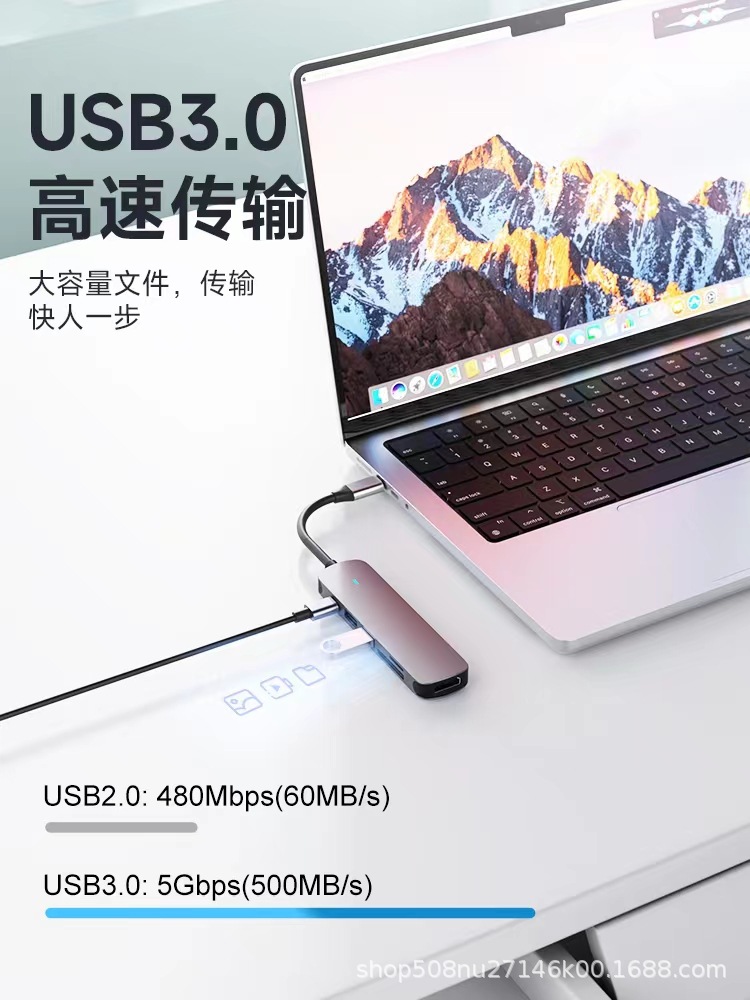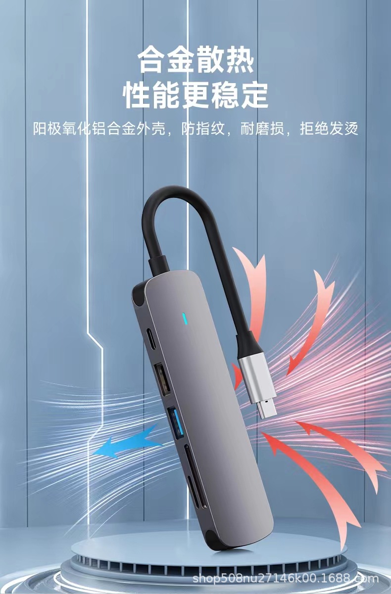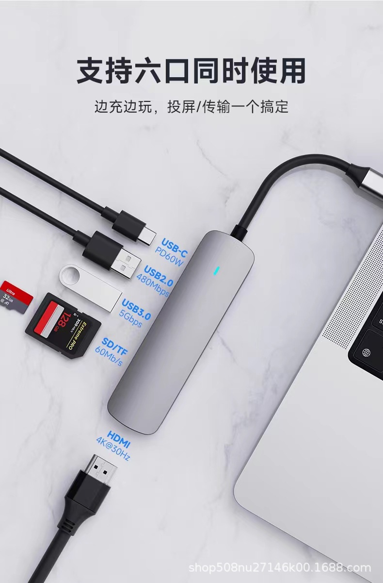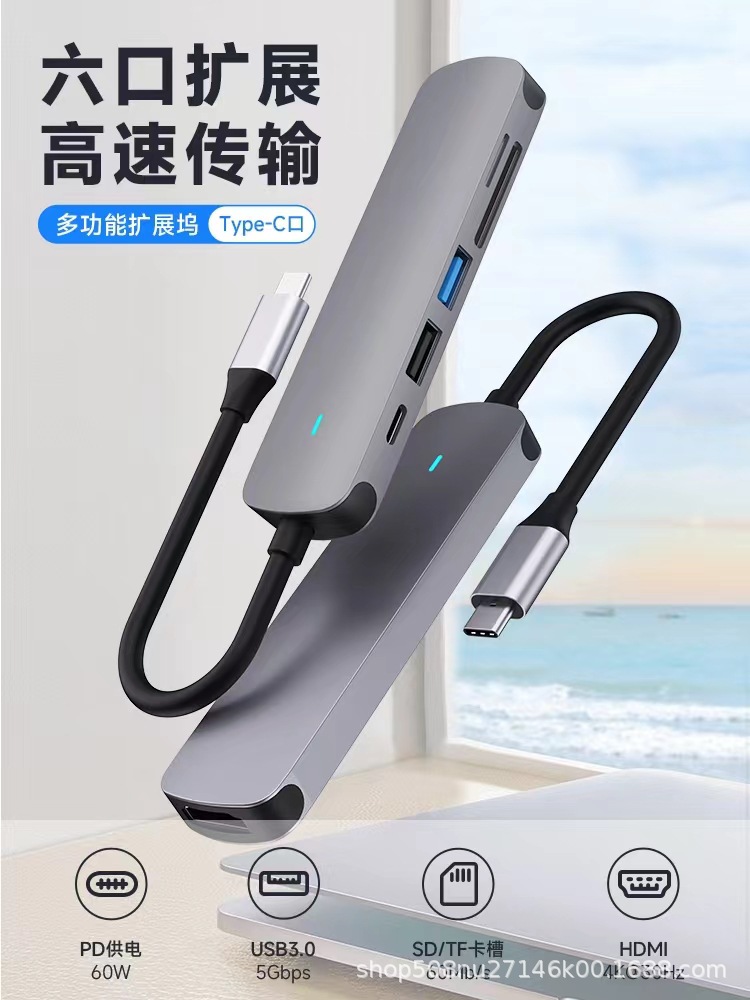 PD100W 충전 및 다기능 익스텐더 확장 도크가있는 Type-c 6-in-one usbhub3.0 스플리터스토어 가기