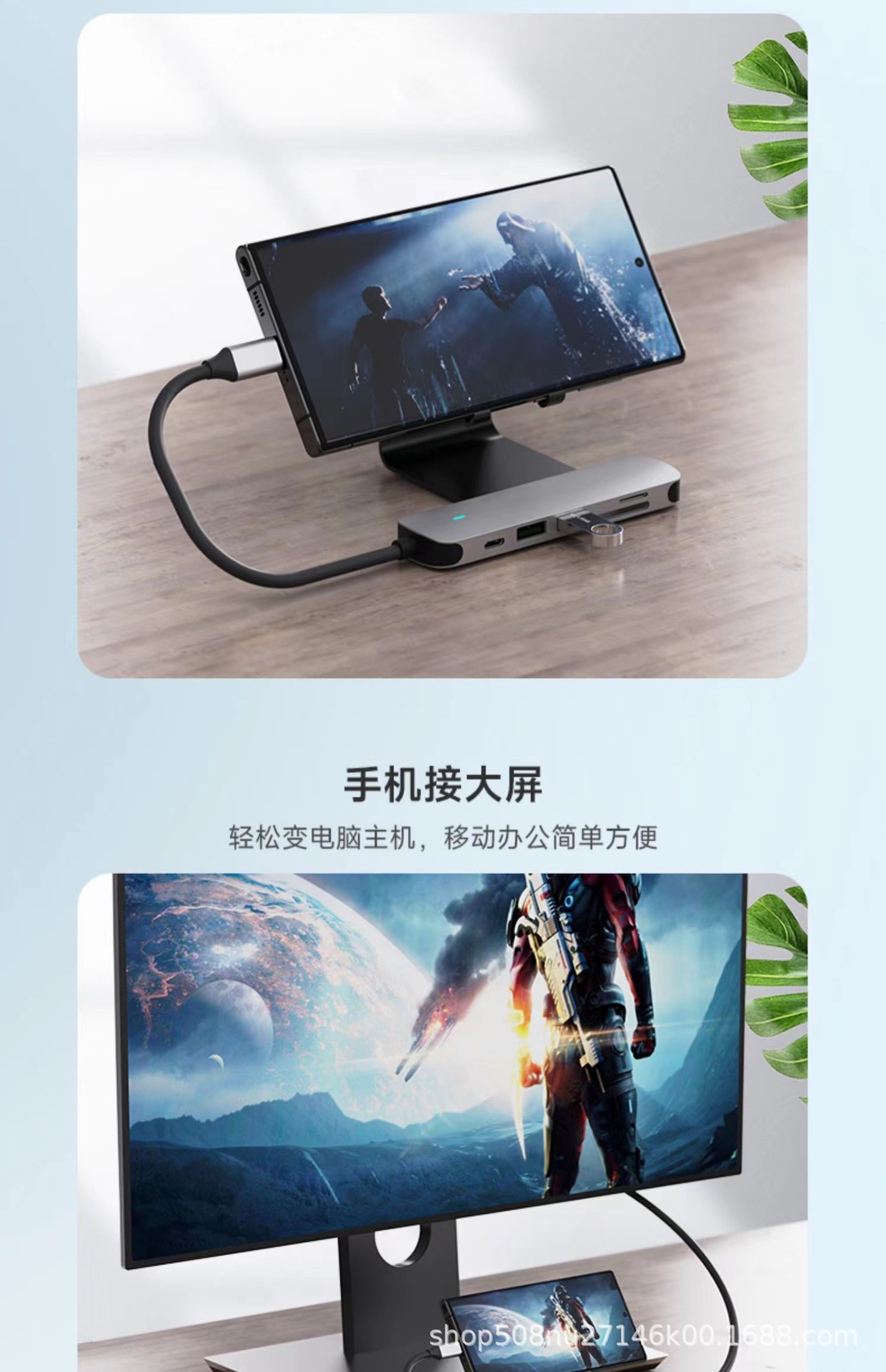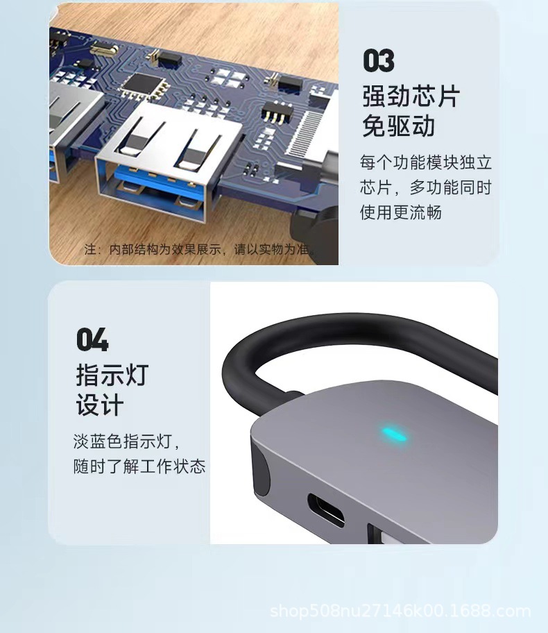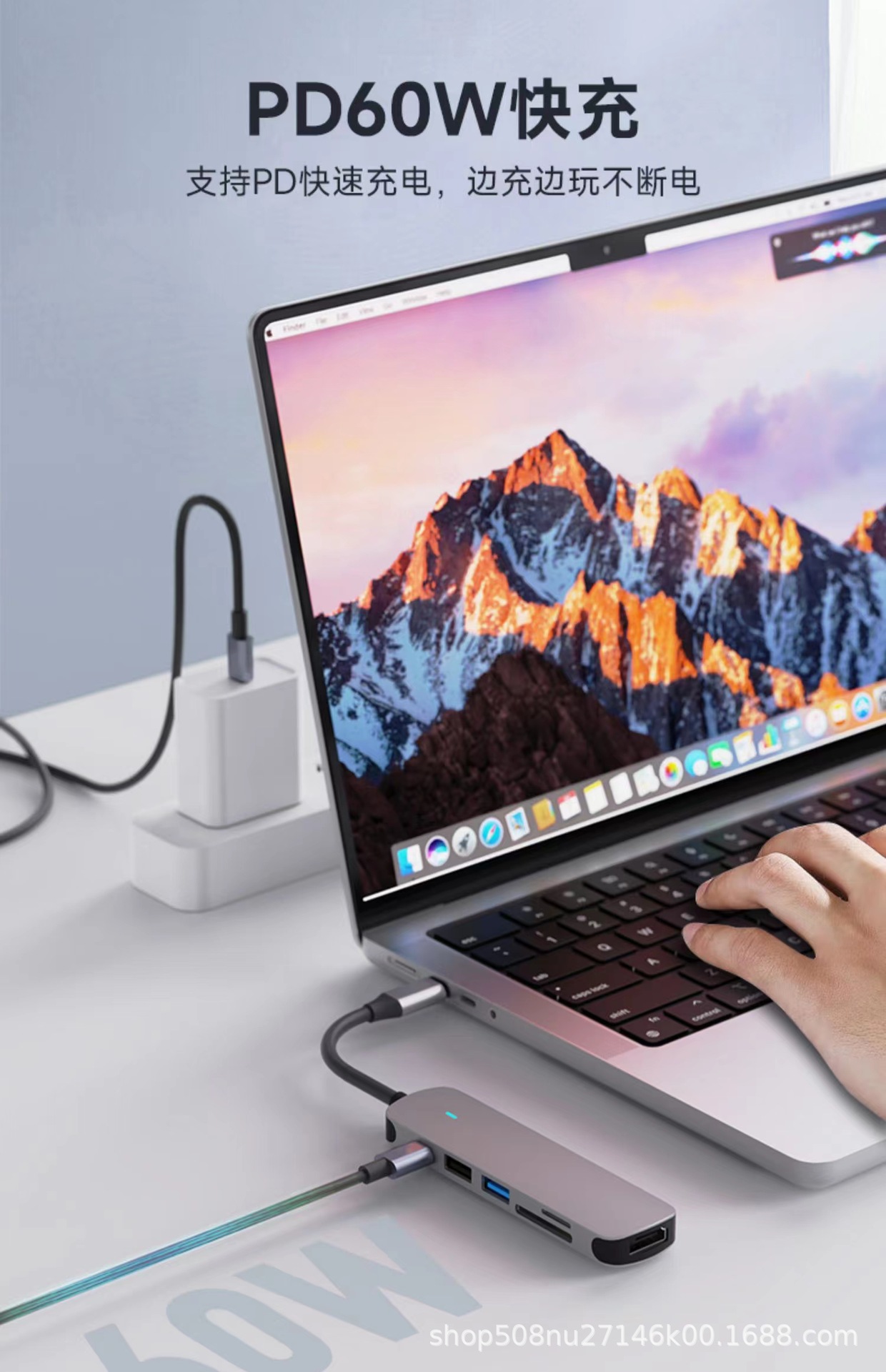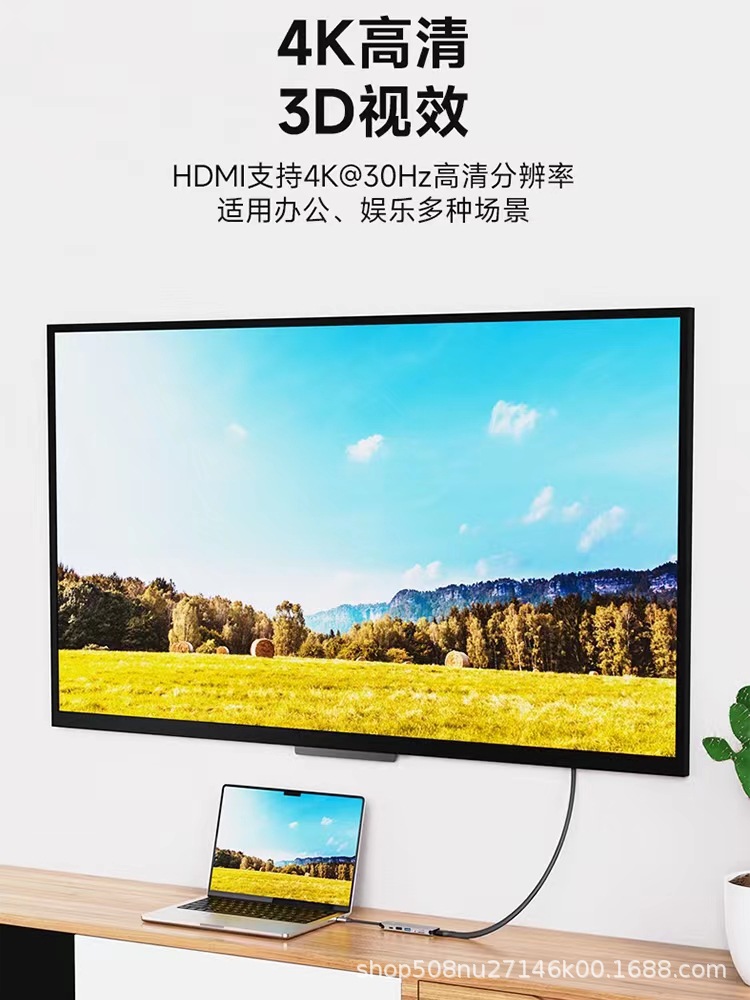 PD100W 충전 및 다기능 익스텐더 확장 도크가있는 Type-c 6-in-one usbhub3.0 스플리터스토어 가기