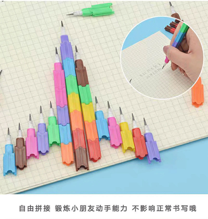 어린이 비 절단 빌딩 블록 계란 낳기 연필 이동식 펜 조립 연필 리필 계란 낳기 미사일 조립 연필