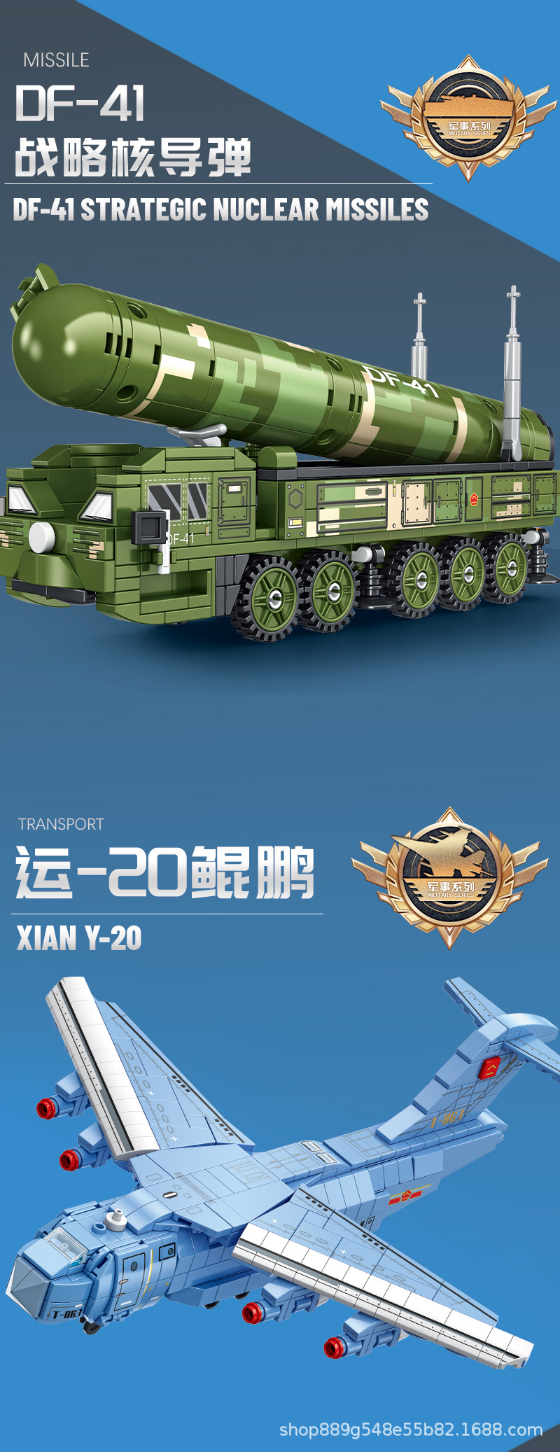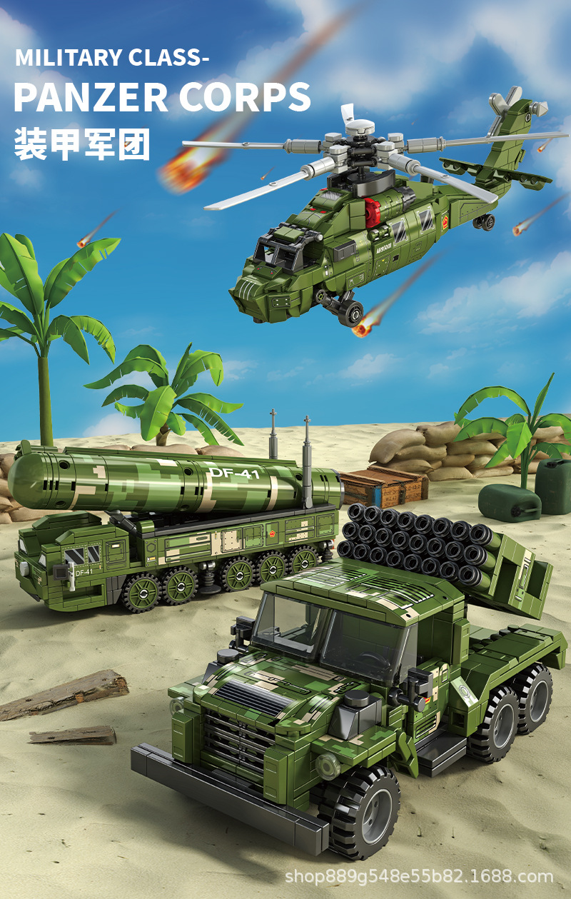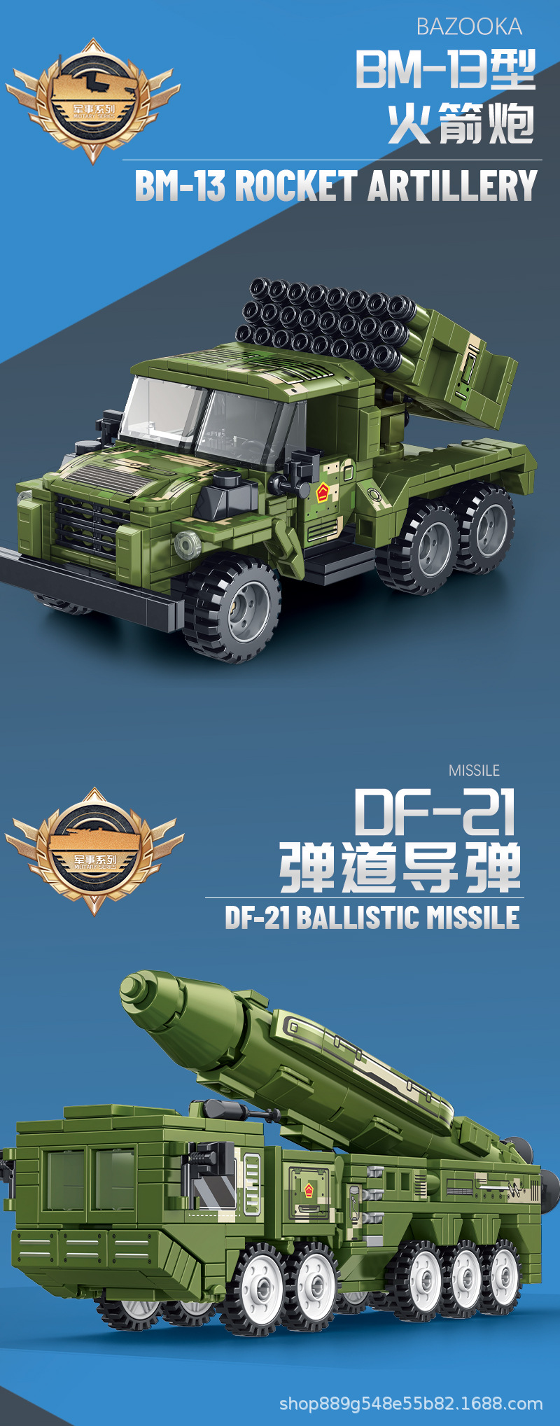 Gao Misi T3056-T3066 군사 삽입 건물 블록 전략적 핵 미사일 탱크 모델 작은 입자스토어 가기