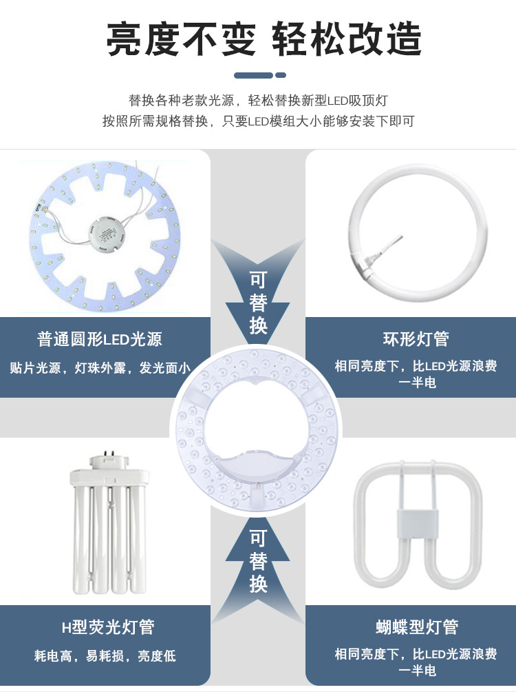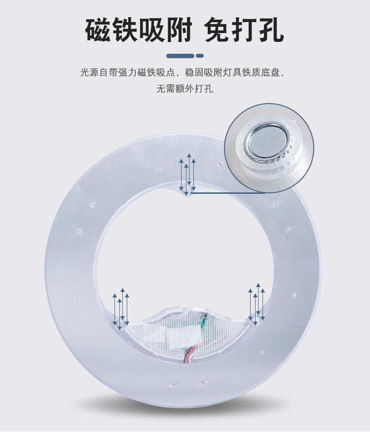 Led 원형 2 색 모듈 천장 램프 교체 수정 심지 비 천공 자기 패치 led 광원 램프 패널