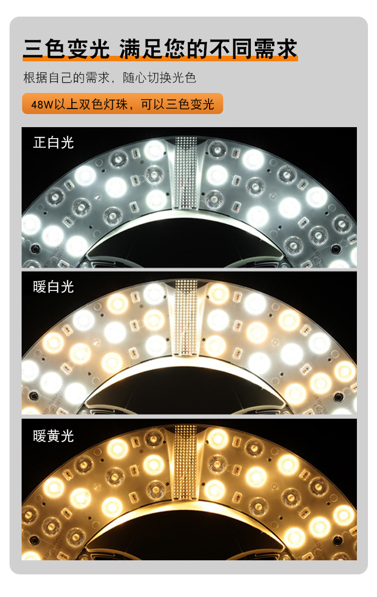 Led 원형 2 색 모듈 천장 램프 교체 수정 심지 비 천공 자기 패치 led 광원 램프 패널스토어 가기