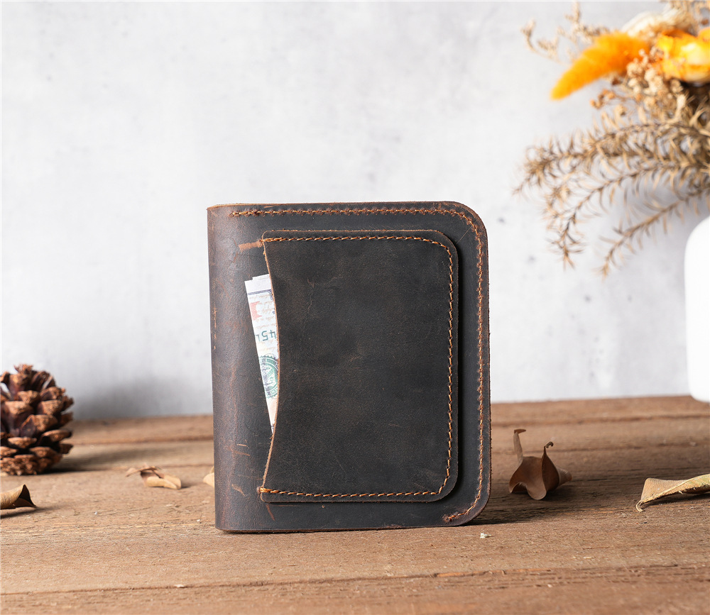 1114 남성과 여성 정품 가죽 소가죽 미친 말 동전 지갑 유럽과 미국 수제 빈티지 유행 카드 가방 지갑 무거운 하이 퀄리티