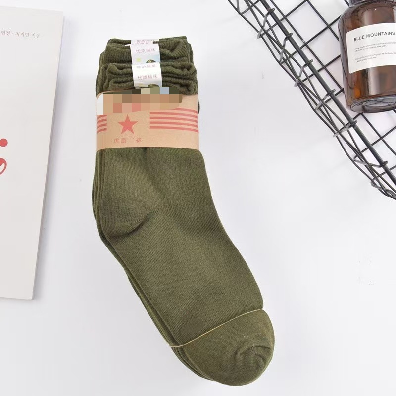 남성 가을 겨울 두꺼운 군용 녹색 양말, 노동 보호 양말, 군용 녹색 군사 훈련 양말, 내마모성 종아리 양말, 노점 공급 양말 도매스토어 가기