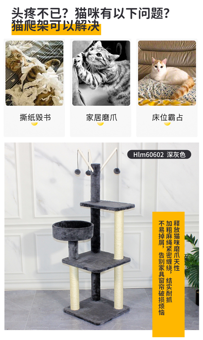 고양이 클라이밍 프레임, 고양이 집, 고양이 트리, 일체형 다기능 천장까지 닿는 고양이 선반, 사이잘 스크래쳐, 장난감, 고양이 용품, 내구성