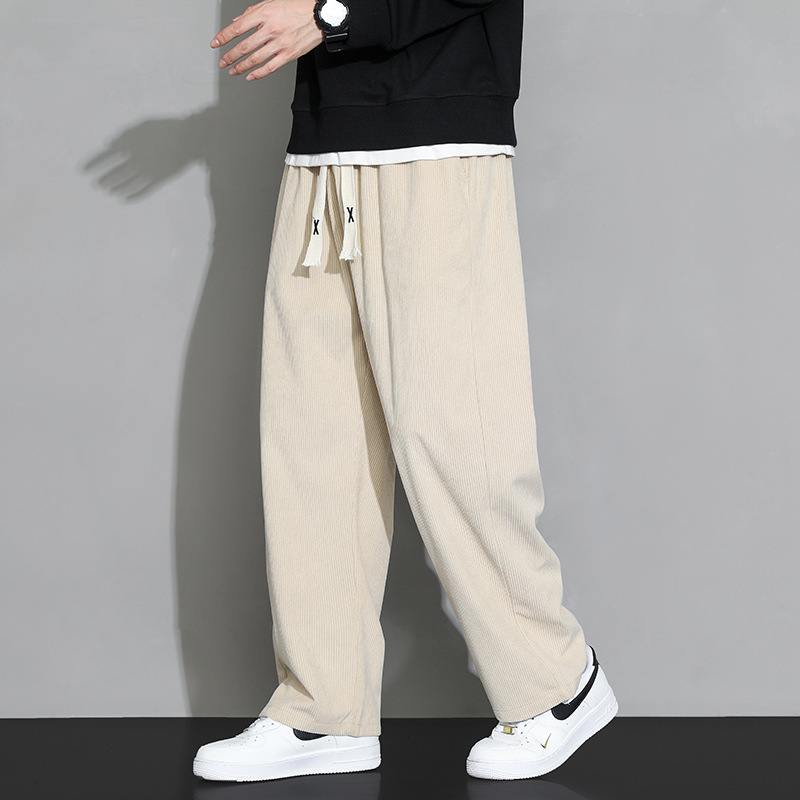 가을과 겨울 코듀로이 남성 캐주얼 바지 유행 느슨한 스트레이트 홍콩 스타일 유행 브랜드 스포츠 가방 사이드 롱 팬츠 남성용