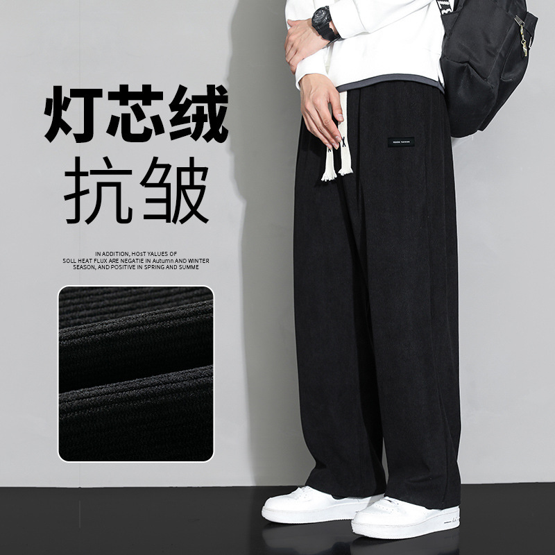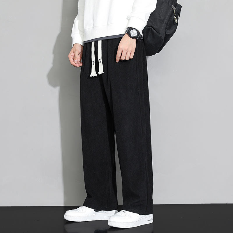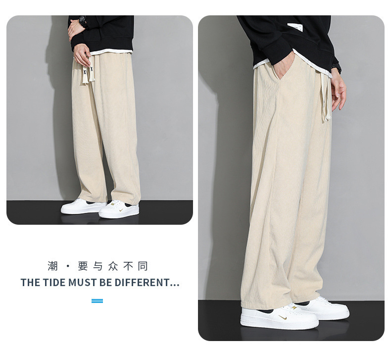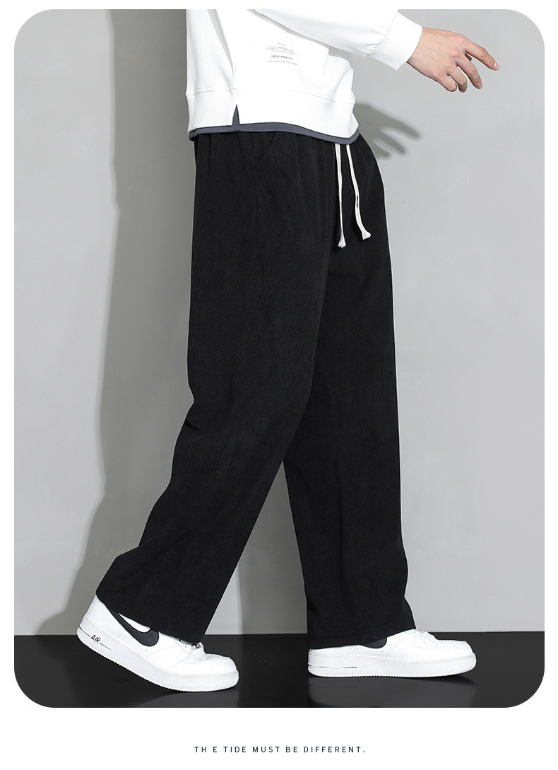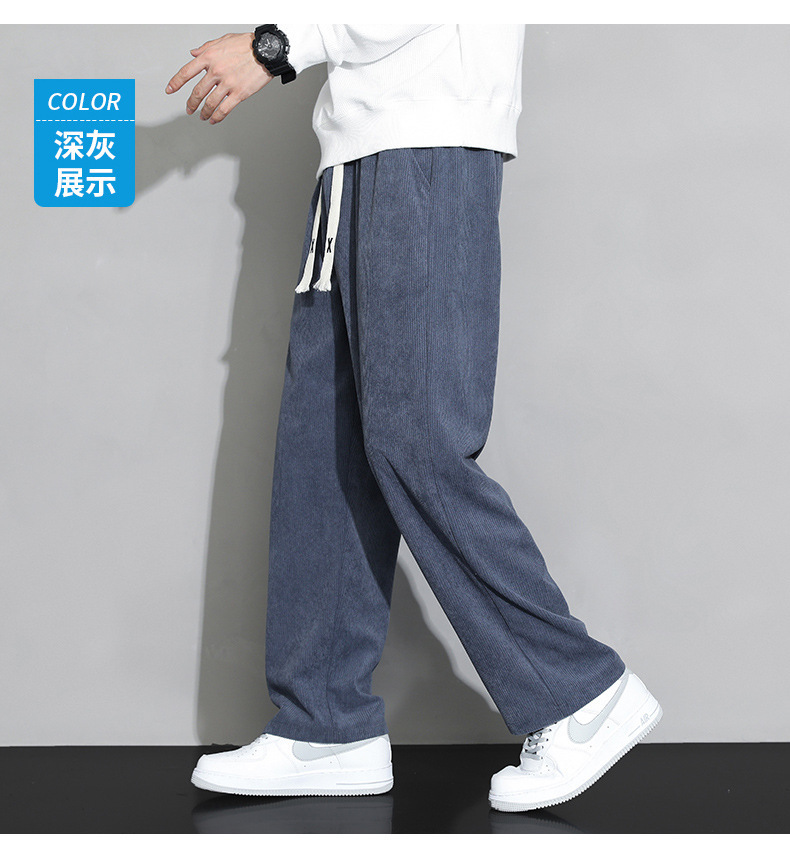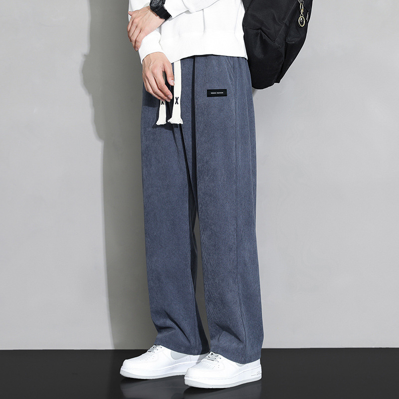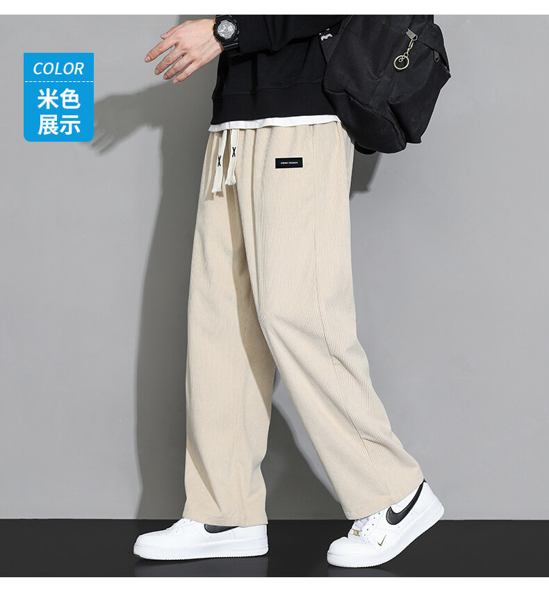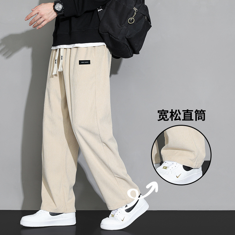 가을과 겨울 코듀로이 남성 캐주얼 바지 유행 느슨한 스트레이트 홍콩 스타일 유행 브랜드 스포츠 가방 사이드 롱 팬츠 남성용스토어 가기