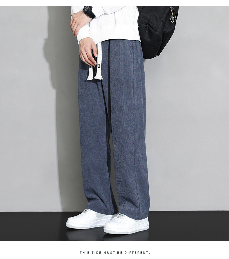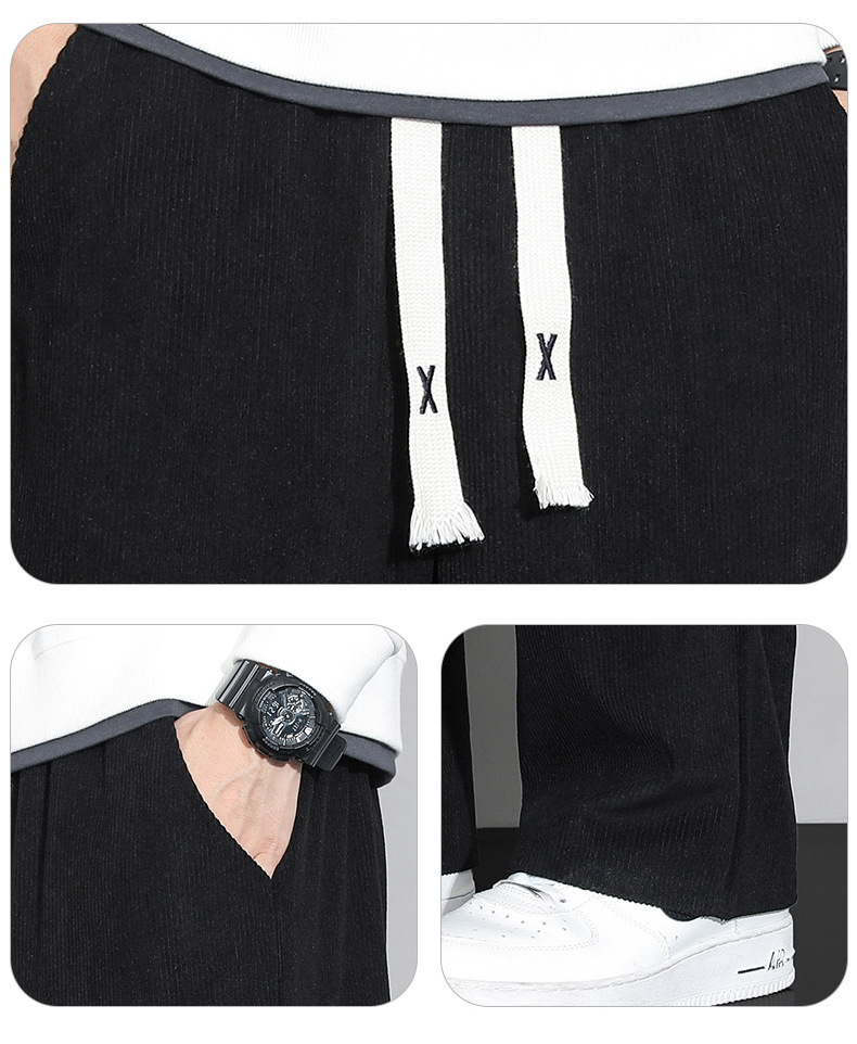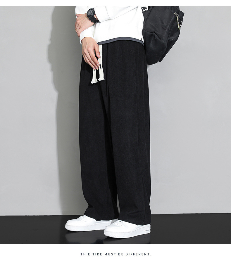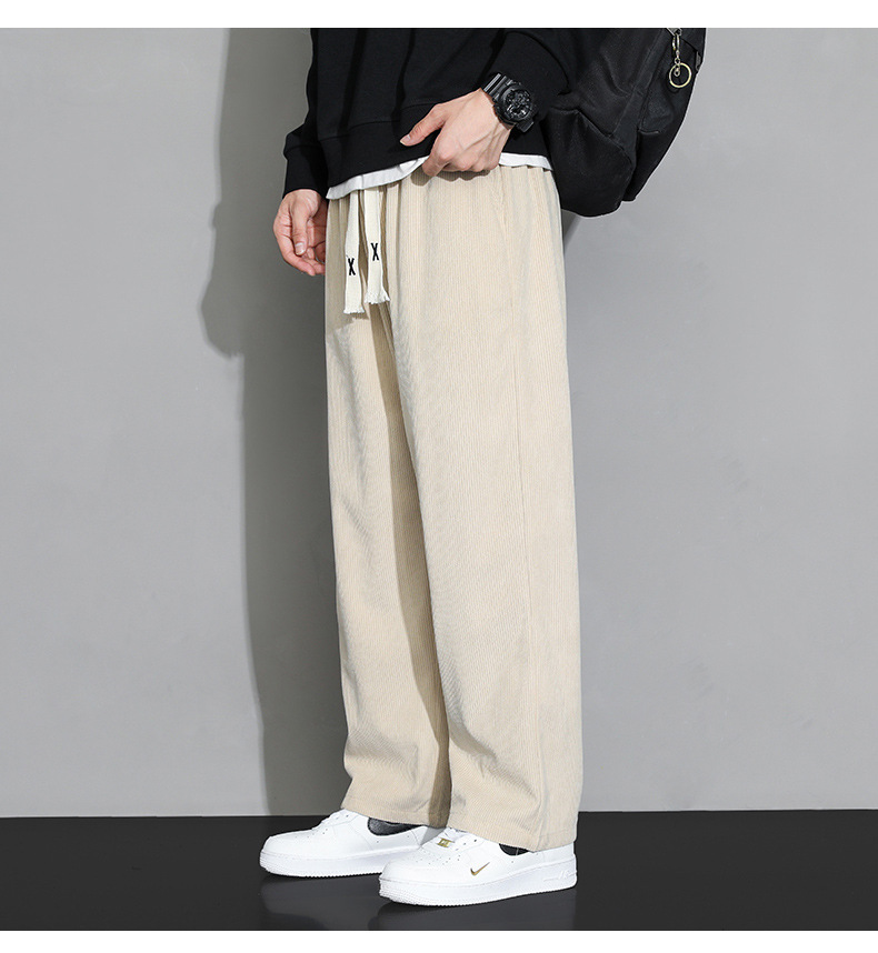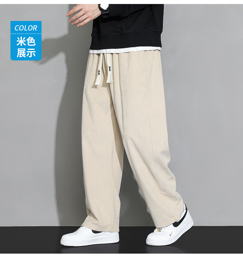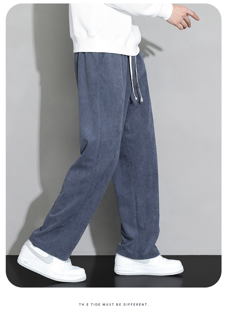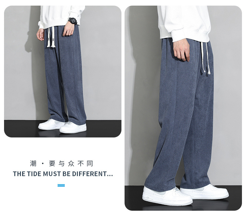 가을과 겨울 코듀로이 남성 캐주얼 바지 유행 느슨한 스트레이트 홍콩 스타일 유행 브랜드 스포츠 가방 사이드 롱 팬츠 남성용스토어 가기