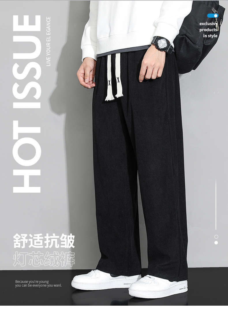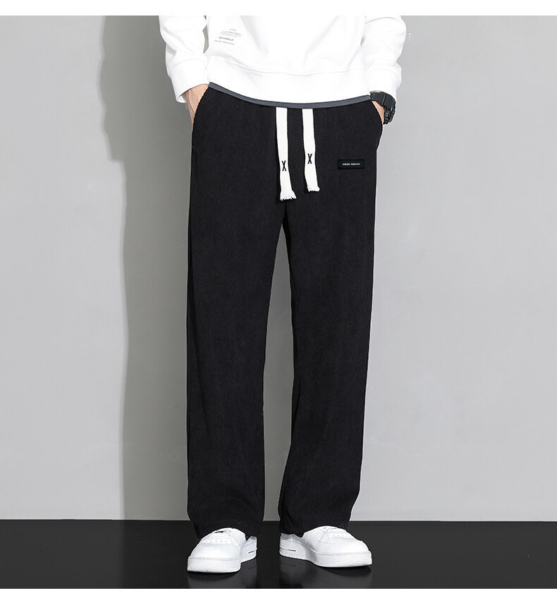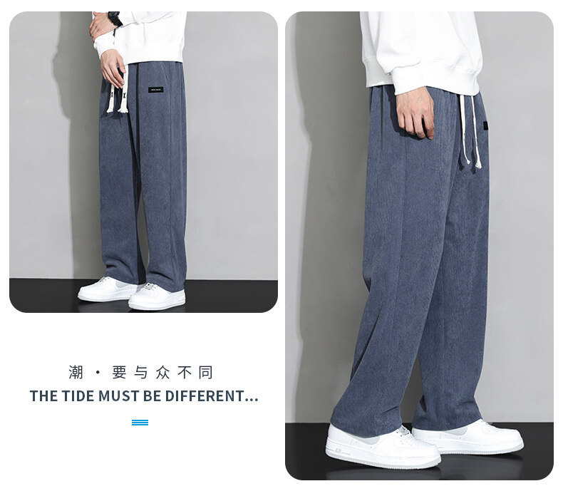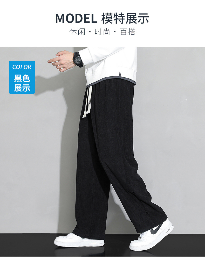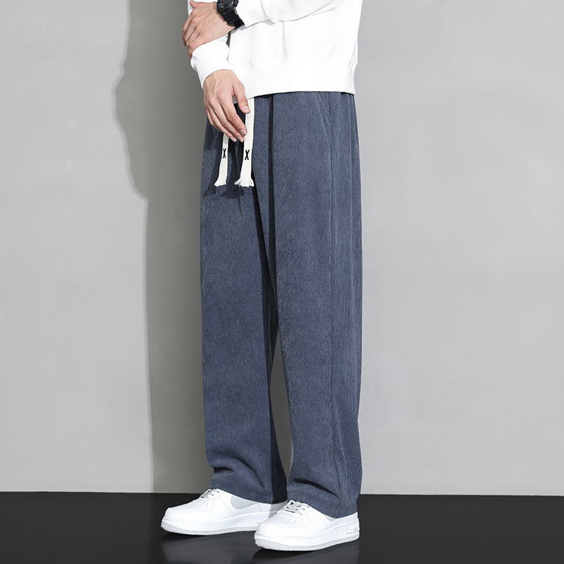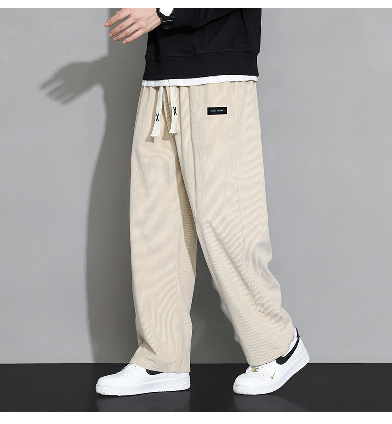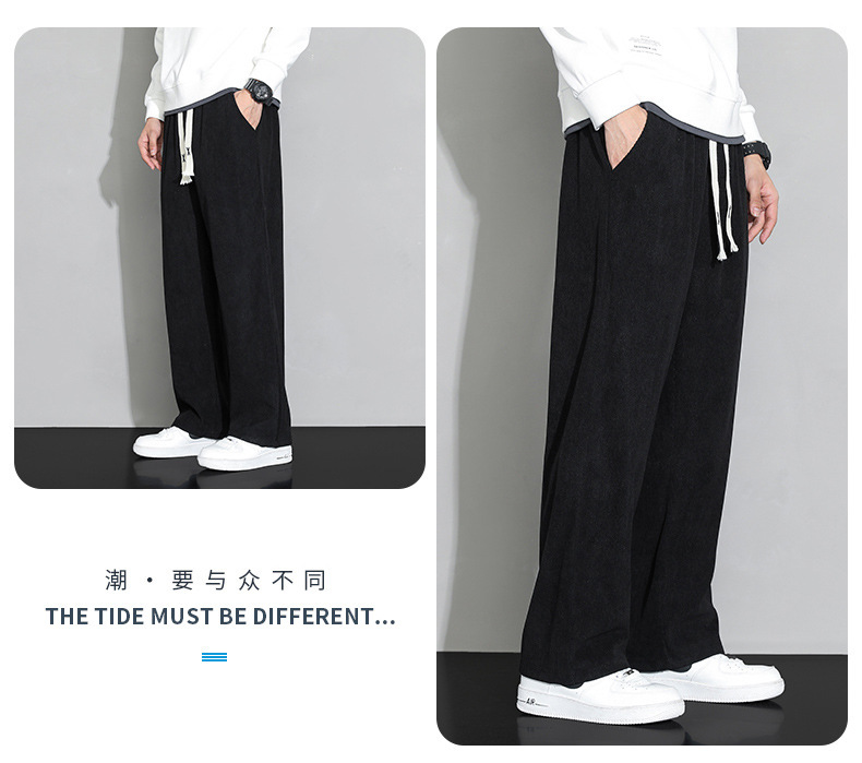 가을과 겨울 코듀로이 남성 캐주얼 바지 유행 느슨한 스트레이트 홍콩 스타일 유행 브랜드 스포츠 가방 사이드 롱 팬츠 남성용스토어 가기