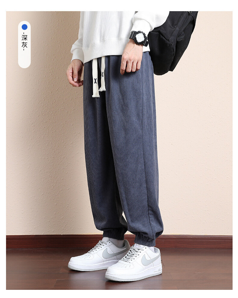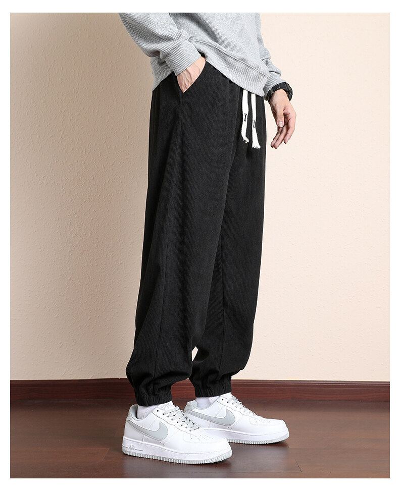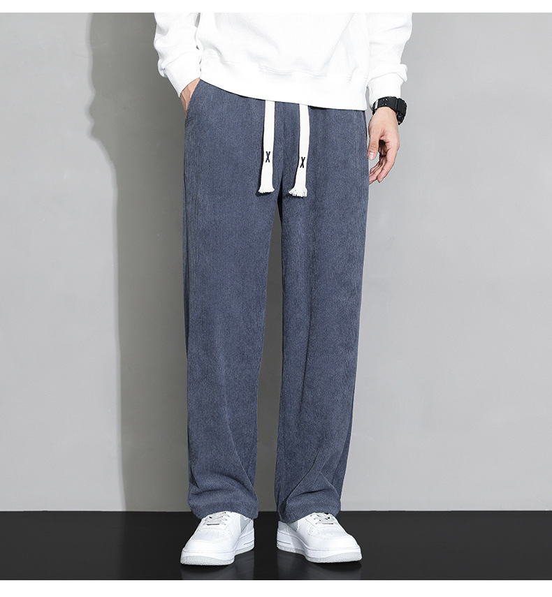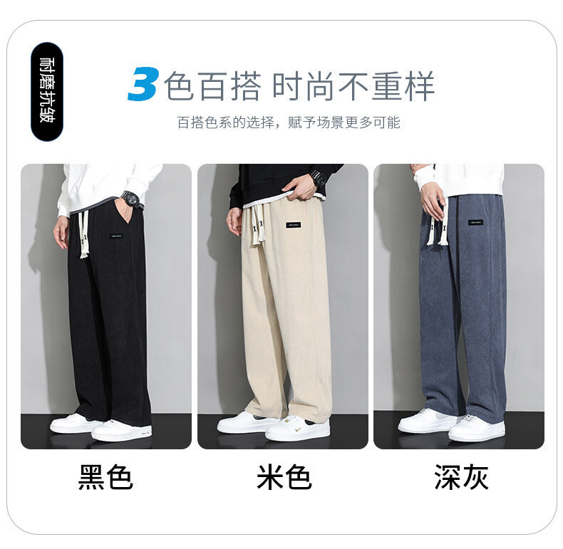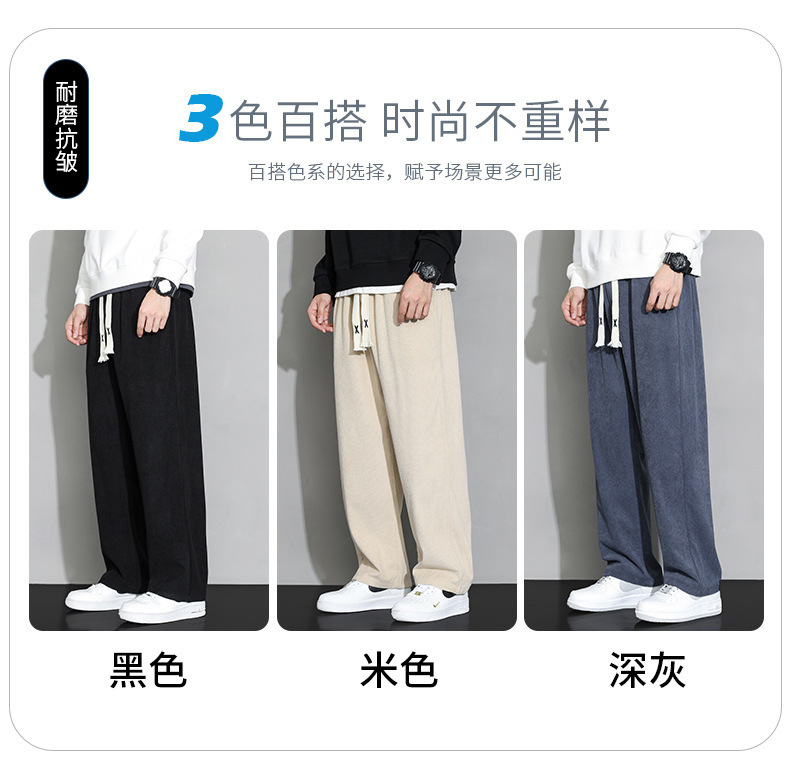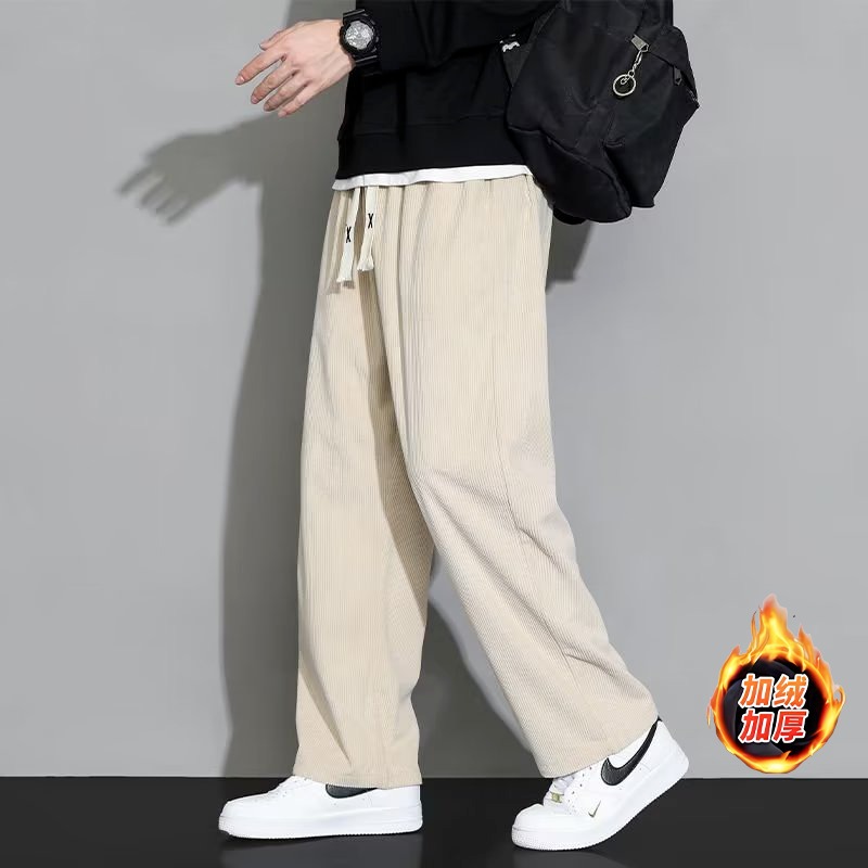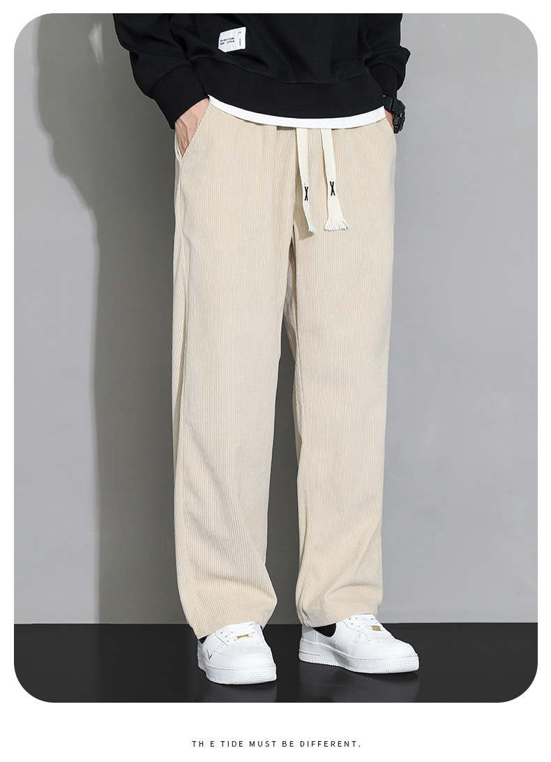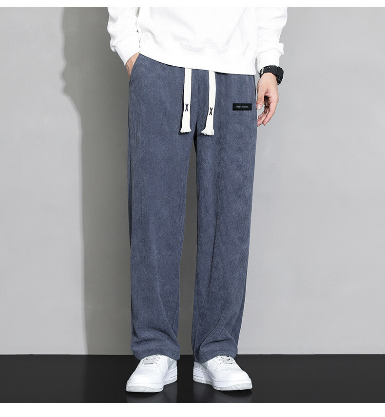가을과 겨울 코듀로이 남성 캐주얼 바지 유행 느슨한 스트레이트 홍콩 스타일 유행 브랜드 스포츠 가방 사이드 롱 팬츠 남성용스토어 가기