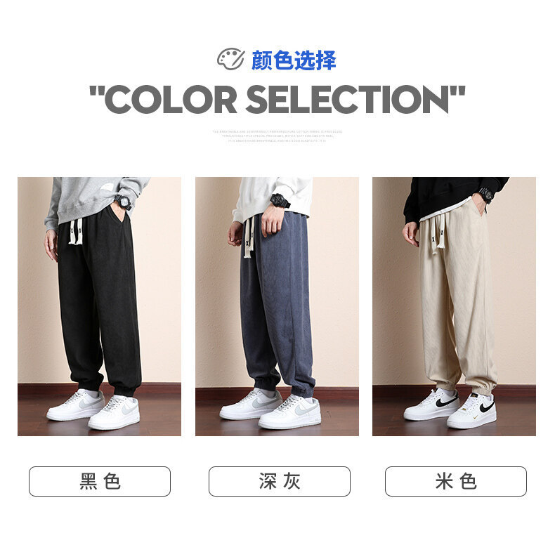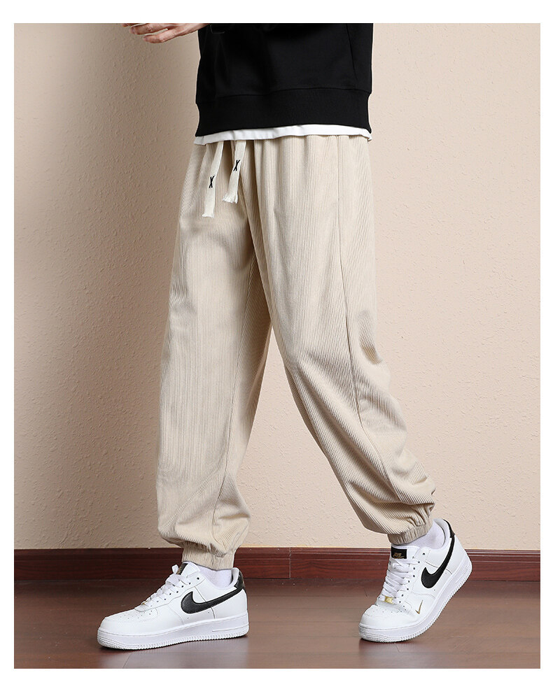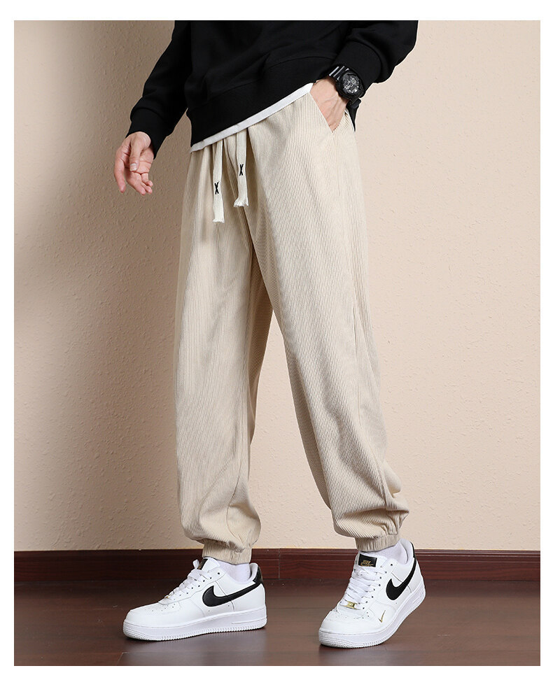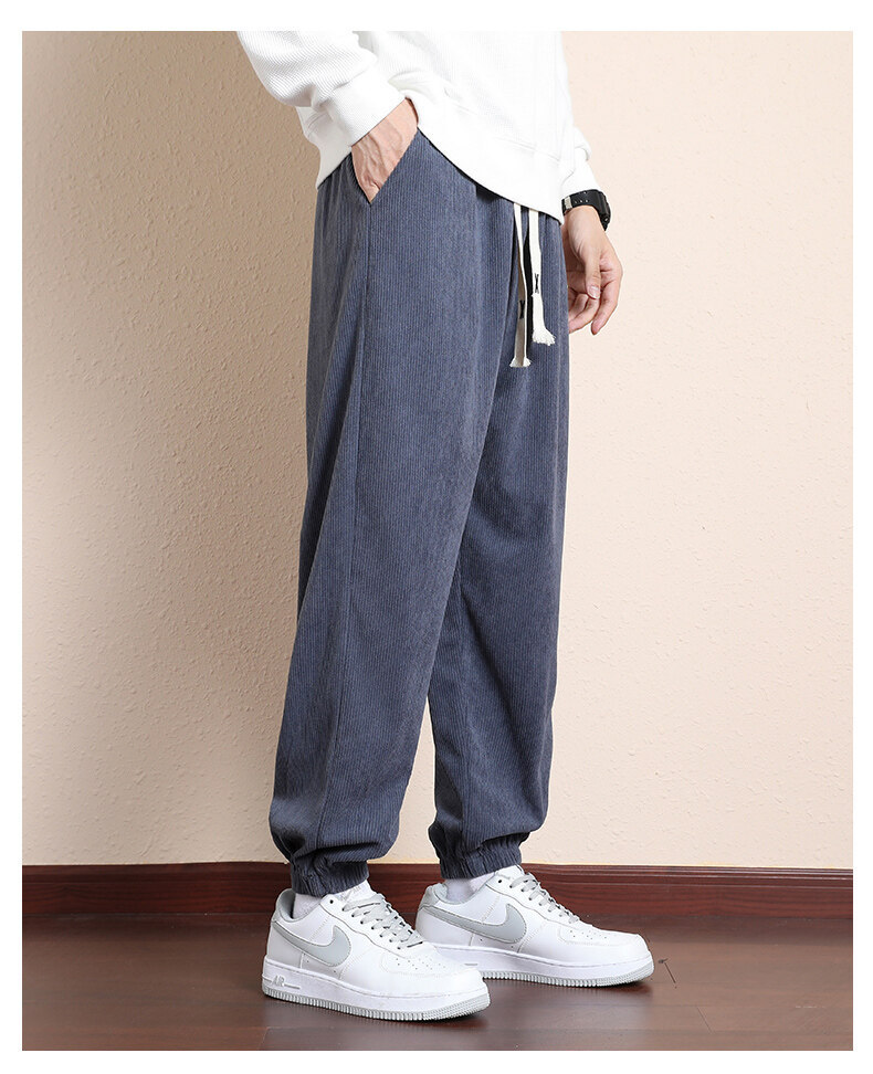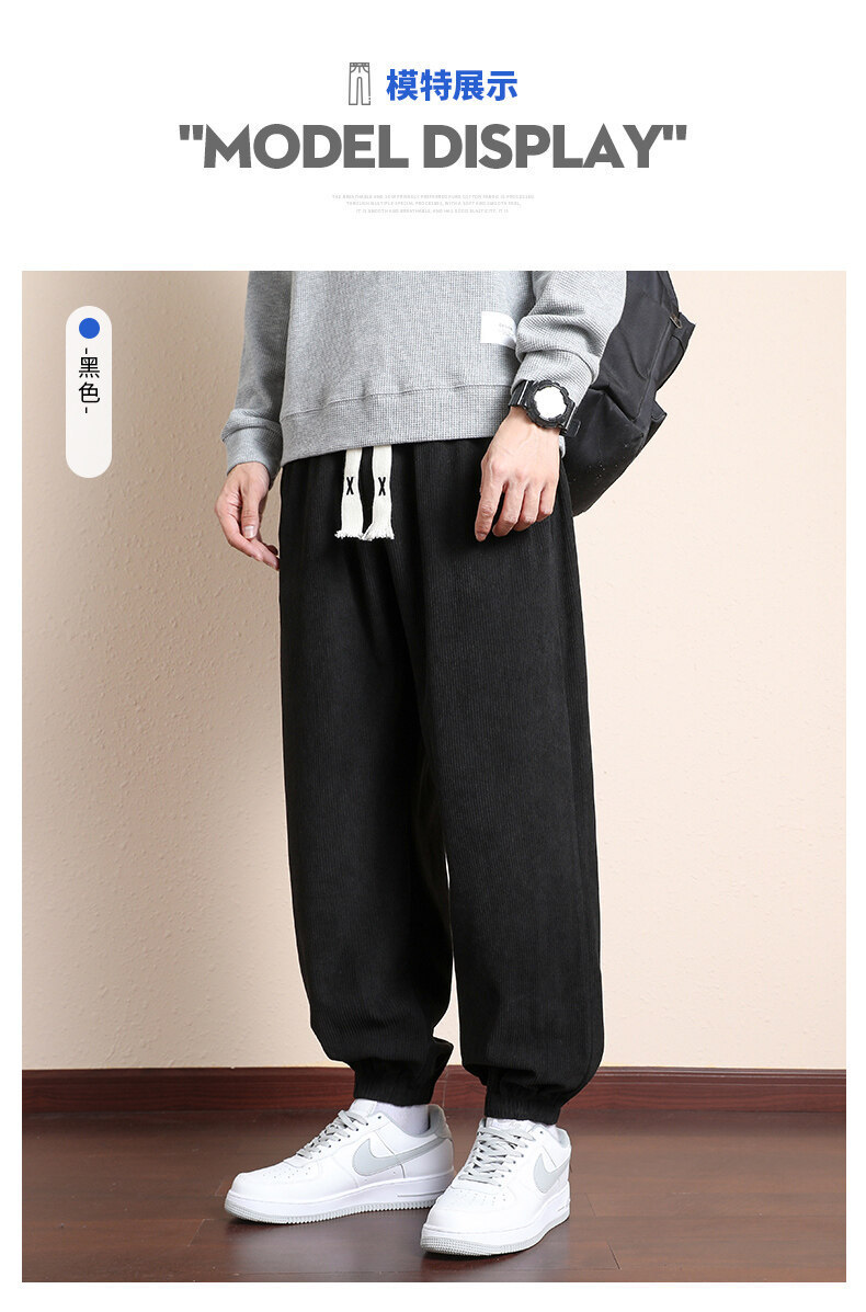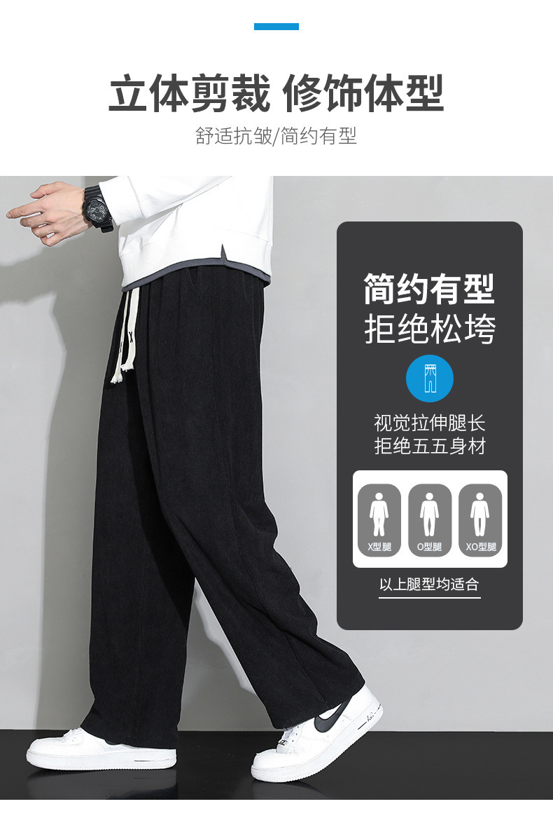 가을과 겨울 코듀로이 남성 캐주얼 바지 유행 느슨한 스트레이트 홍콩 스타일 유행 브랜드 스포츠 가방 사이드 롱 팬츠 남성용스토어 가기