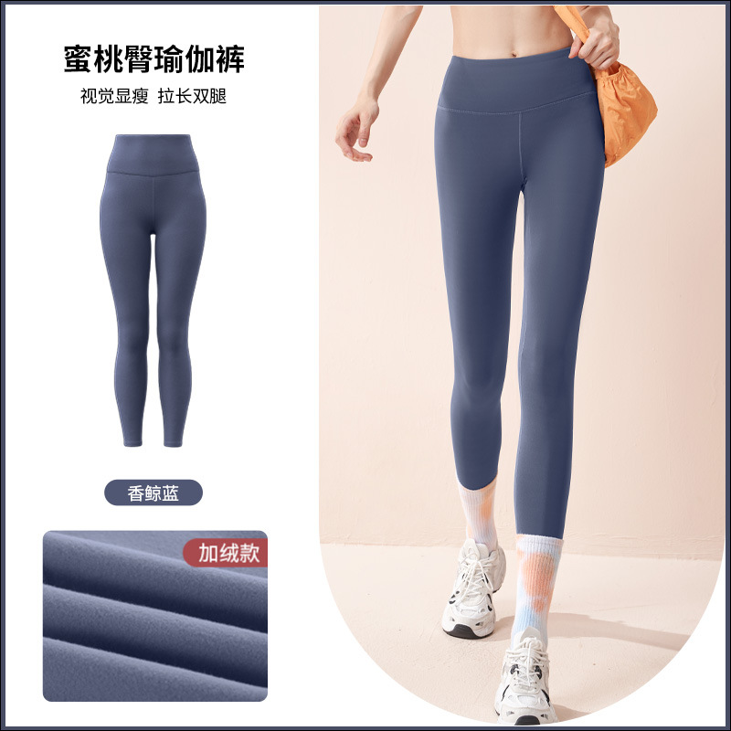 Juyitang 가을, 겨울 얇은 벨벳 요가 바지 하이 웨이스트 엉덩이 리프팅 복부 스포츠 스타킹 여성용 원활한 피트니스 바지