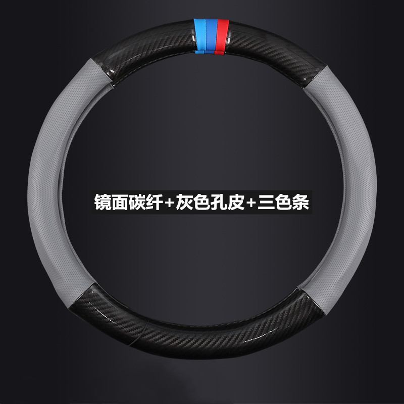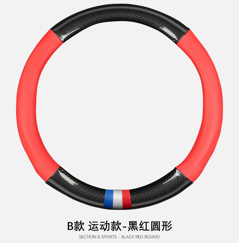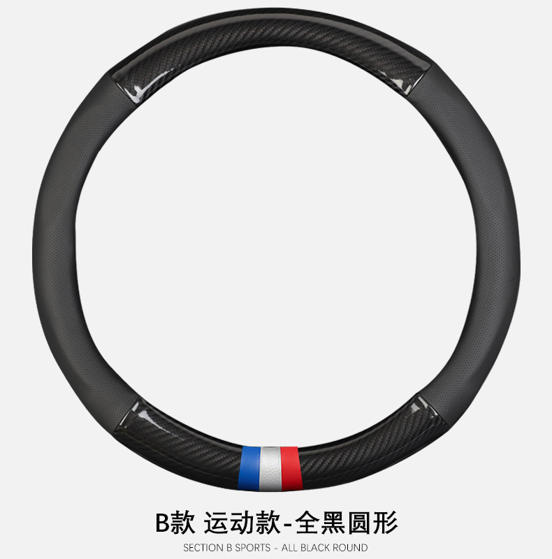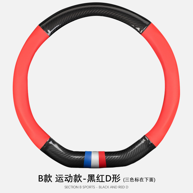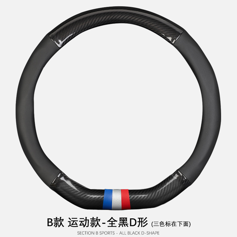 • 거울 탄소 섬유 + 검정색 천공 가죽 + 빨간색, 흰색 및 파란색 3색 스트립 [D 모양]