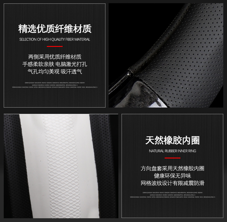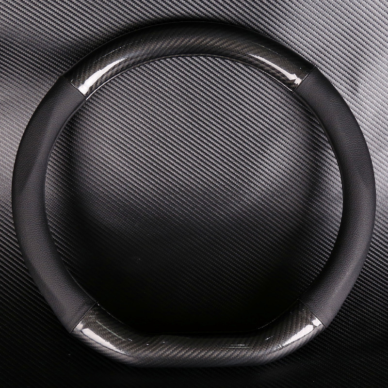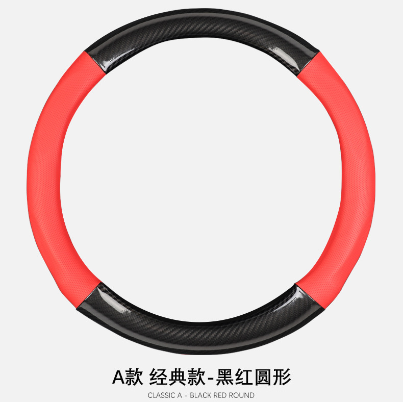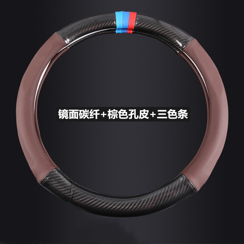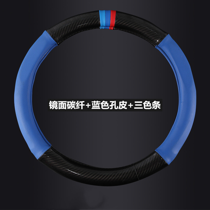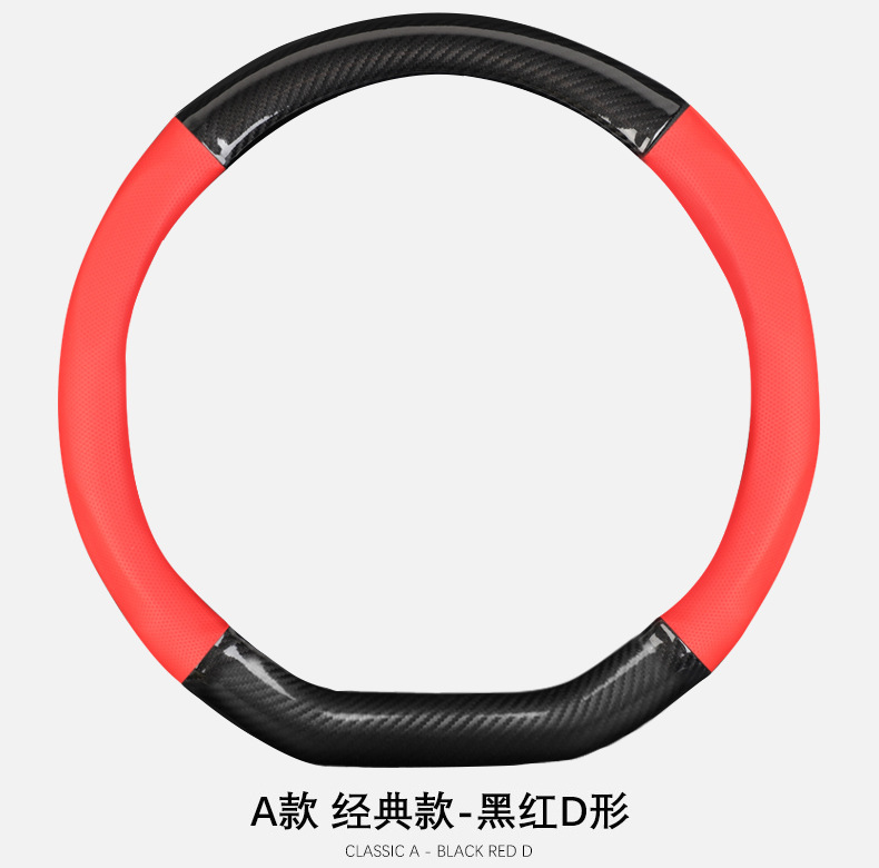 • 거울 탄소 섬유 + 검정색 천공 가죽 + 빨간색, 흰색 및 파란색 3색 스트립 [D 모양]