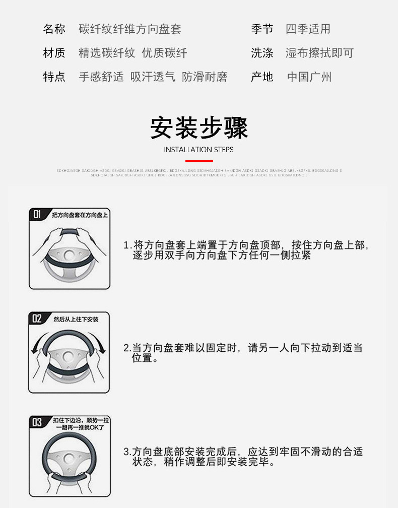 탄소 섬유 패턴 스티어링 휠 커버 자동차 인테리어 제품 수정 핸들 커버 범용 핸드 재봉없는 탄소 섬유 핸들 커버스토어 가기