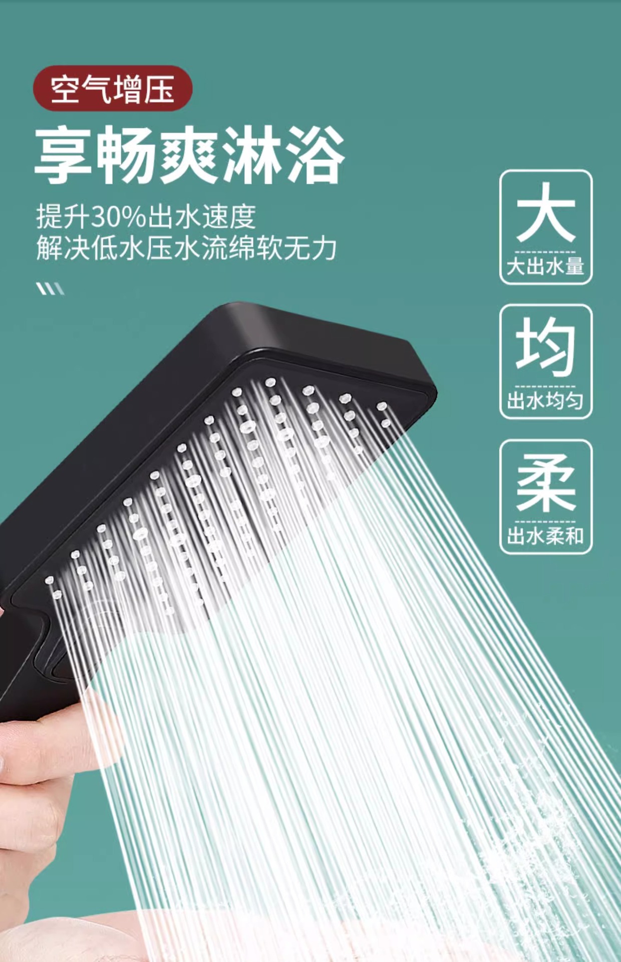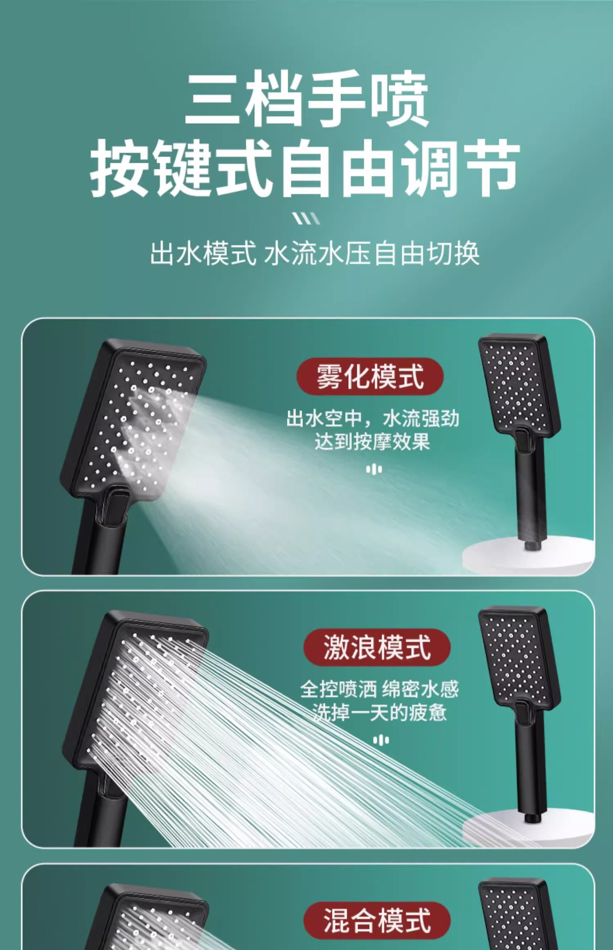 사각 샤워 노즐 가압 샤워 세트 목욕 수도꼭지 빗에서 입욕 가압 꽃 건조 샤워 헤드