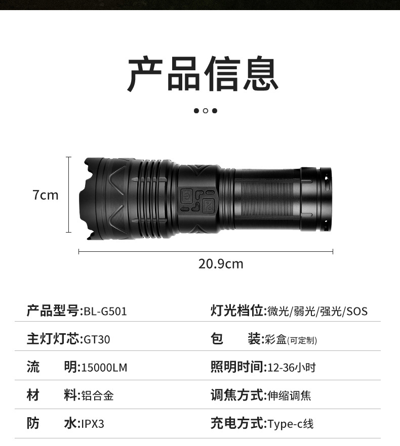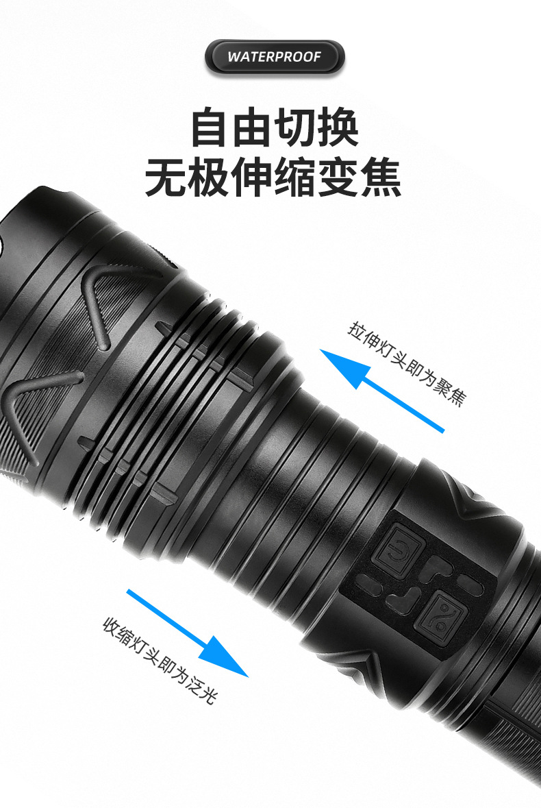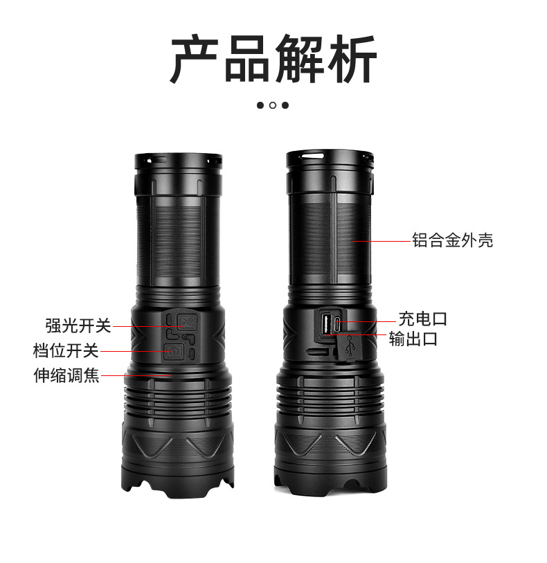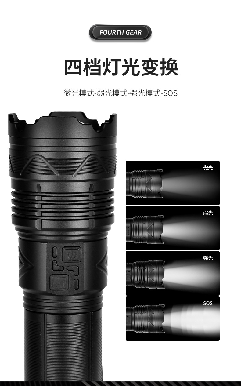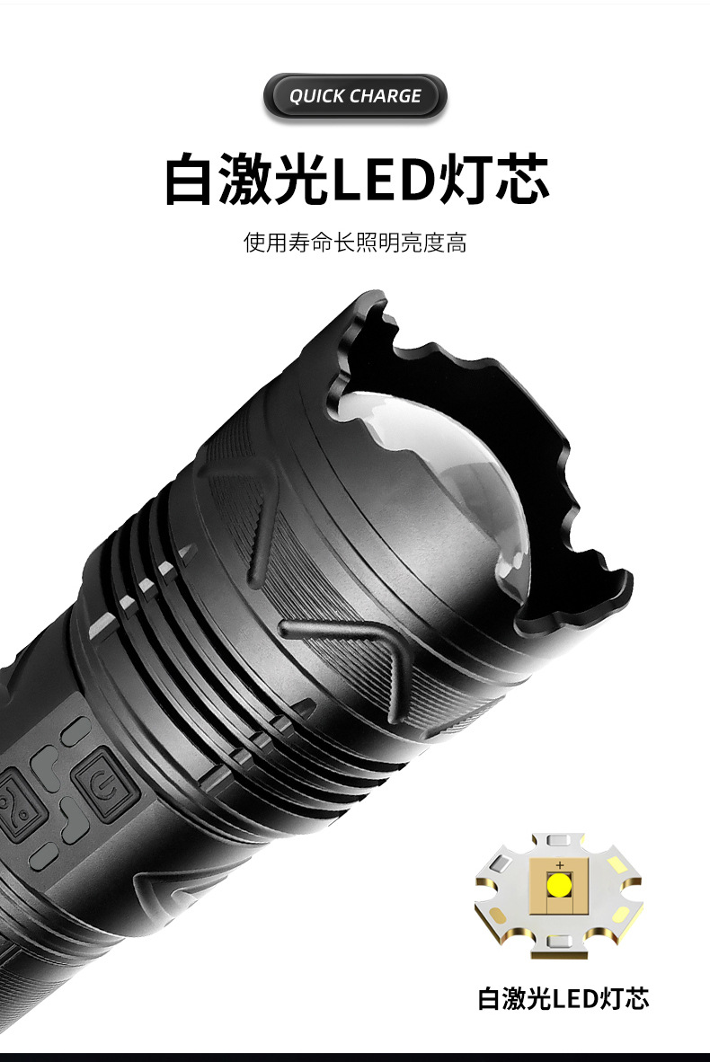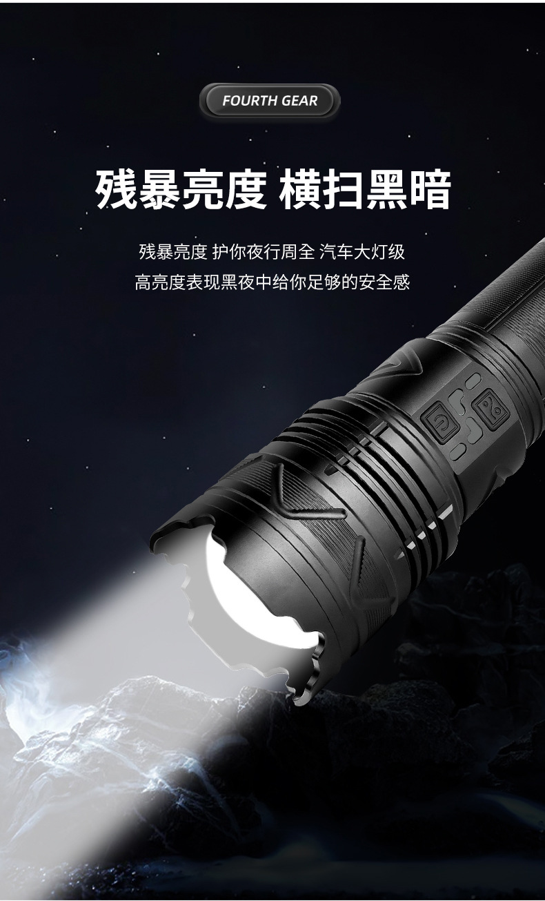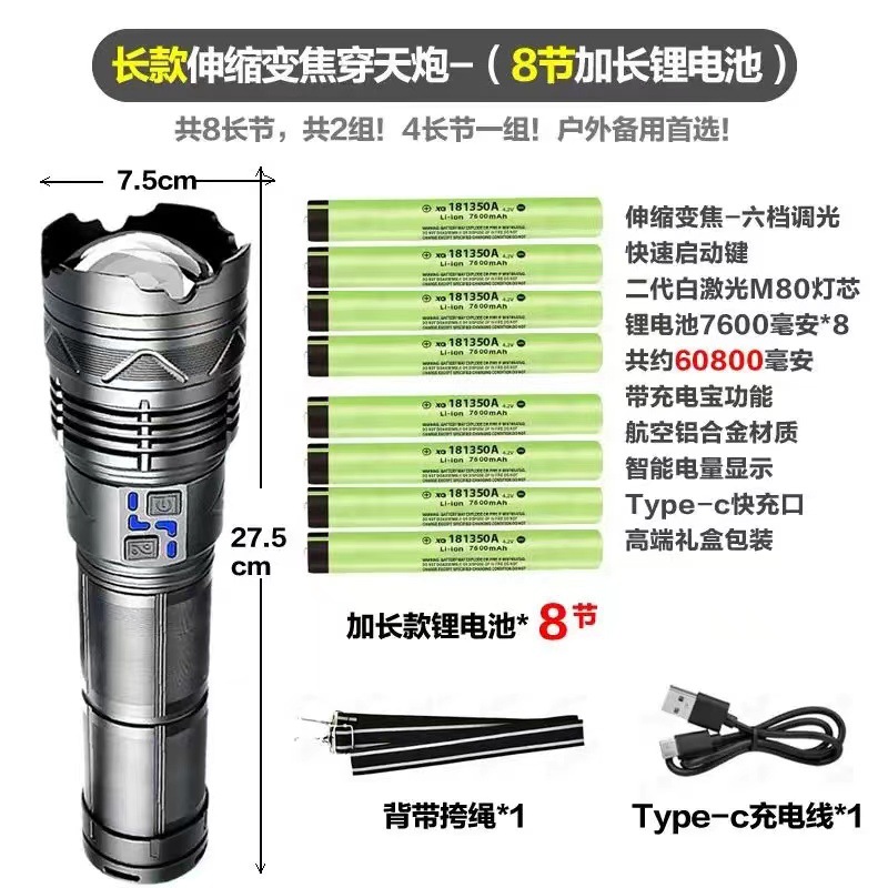 스카이 건을 통해 강한 손전등 슈퍼 밝은 야외 장거리 레이저 손전등 다기능 램프 줌 고출력 강한 조명