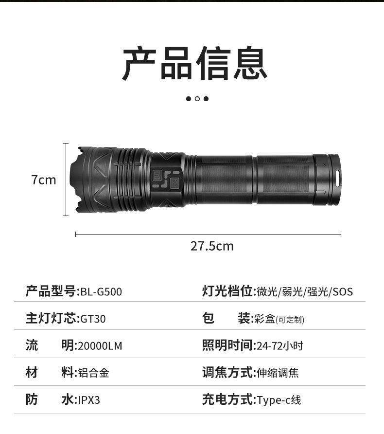 • X30 짧은 손전등 + 라인 + 스트랩 박스 (배터리 없음)