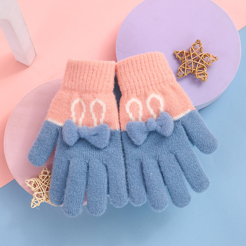 • 컬러 매칭 보우 파이브 핑거 장갑 [핑크 블루]