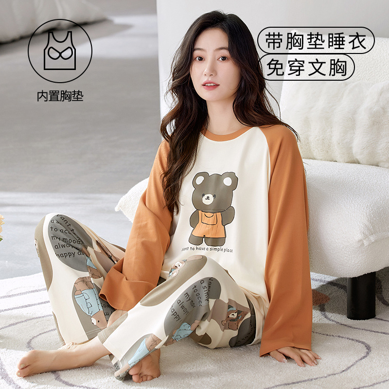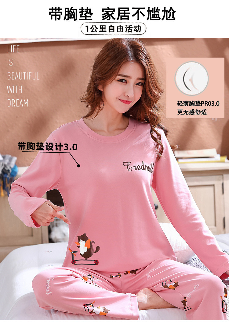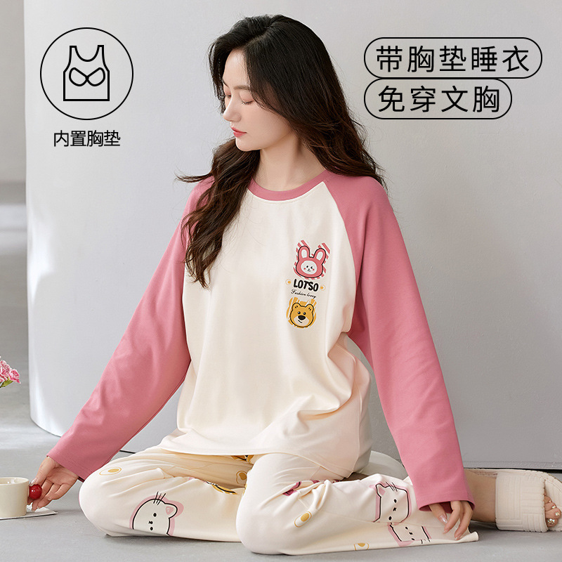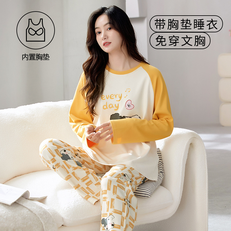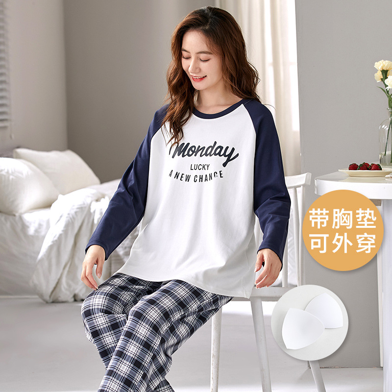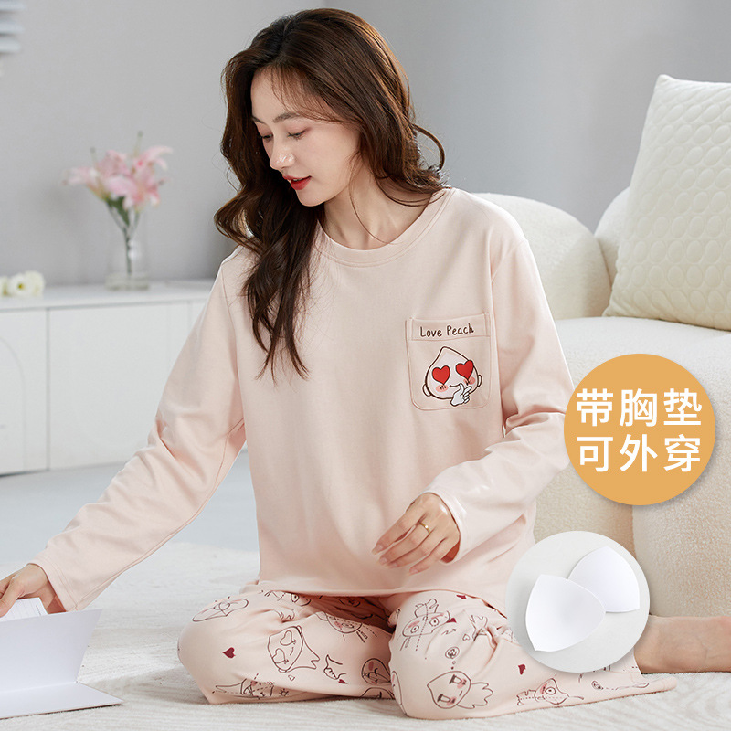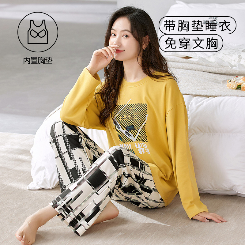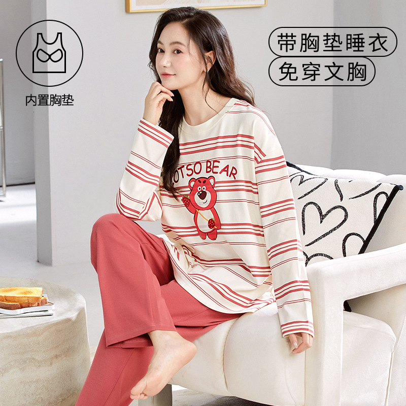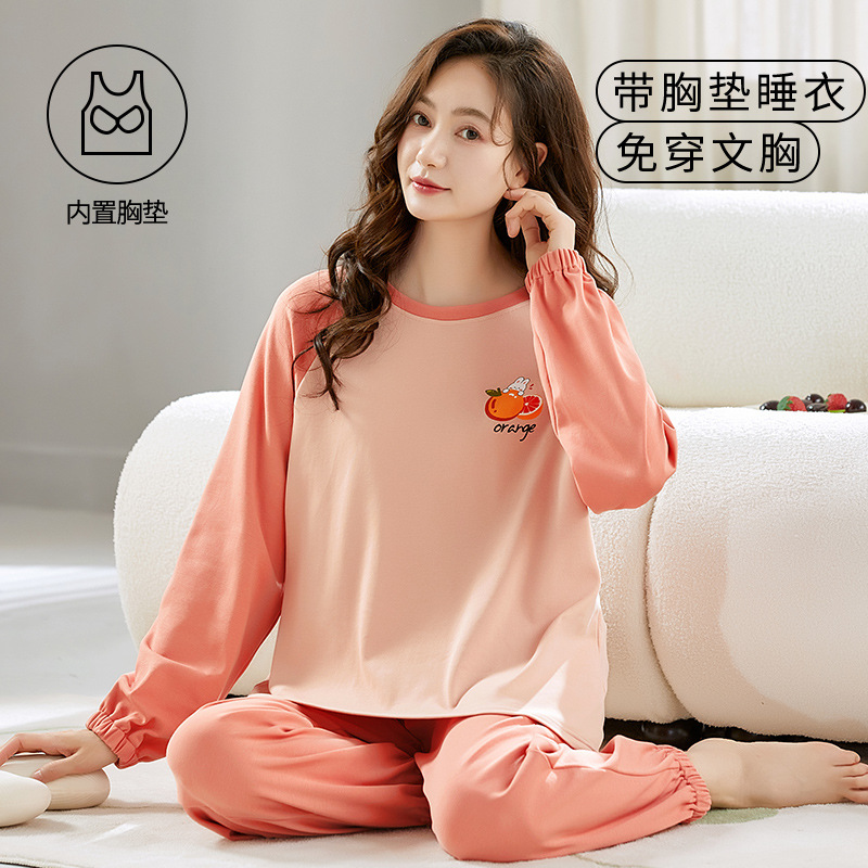 크루 넥 풀오버 파자마 여성의 봄과 가을, 가슴 패드웨어-무료 속옷 긴팔 홈 옷 안티 범프 복장