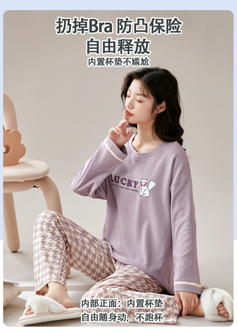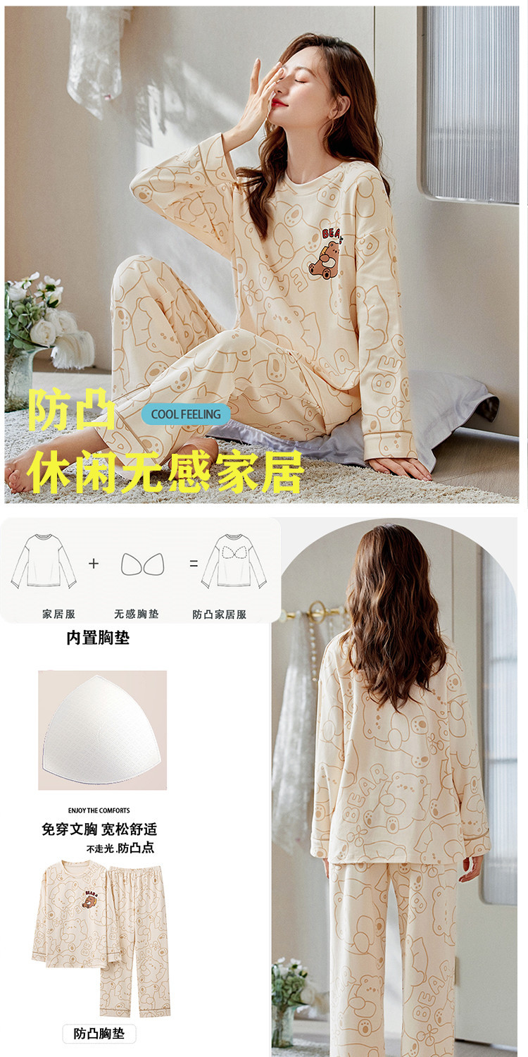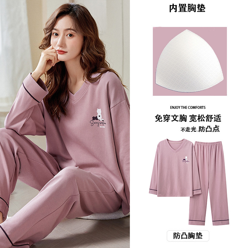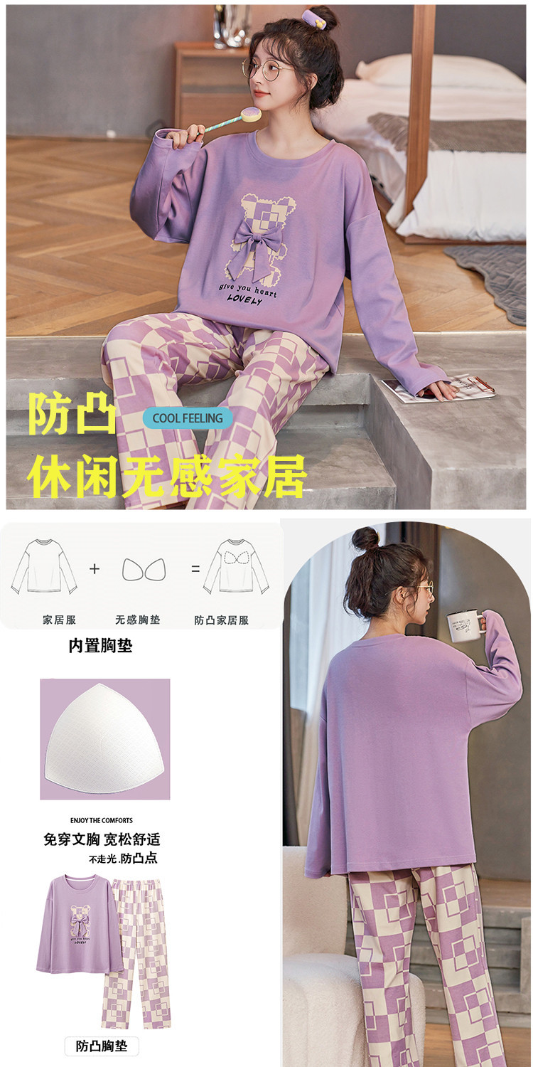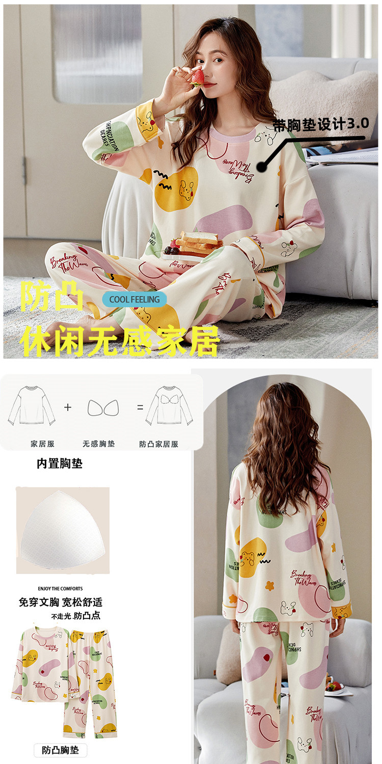 크루 넥 풀오버 파자마 여성의 봄과 가을, 가슴 패드웨어-무료 속옷 긴팔 홈 옷 안티 범프 복장