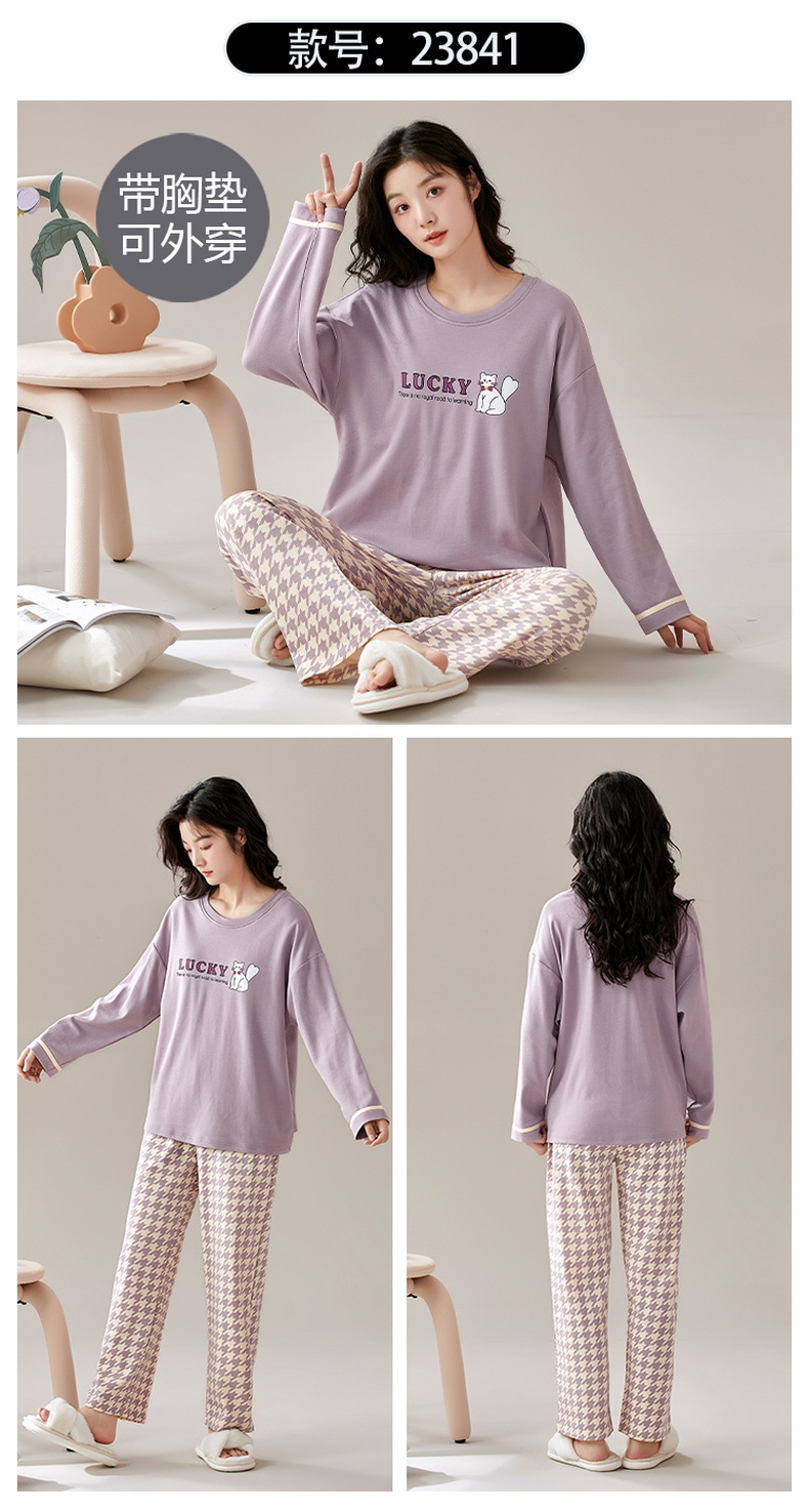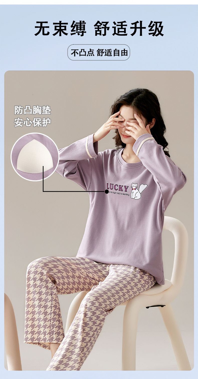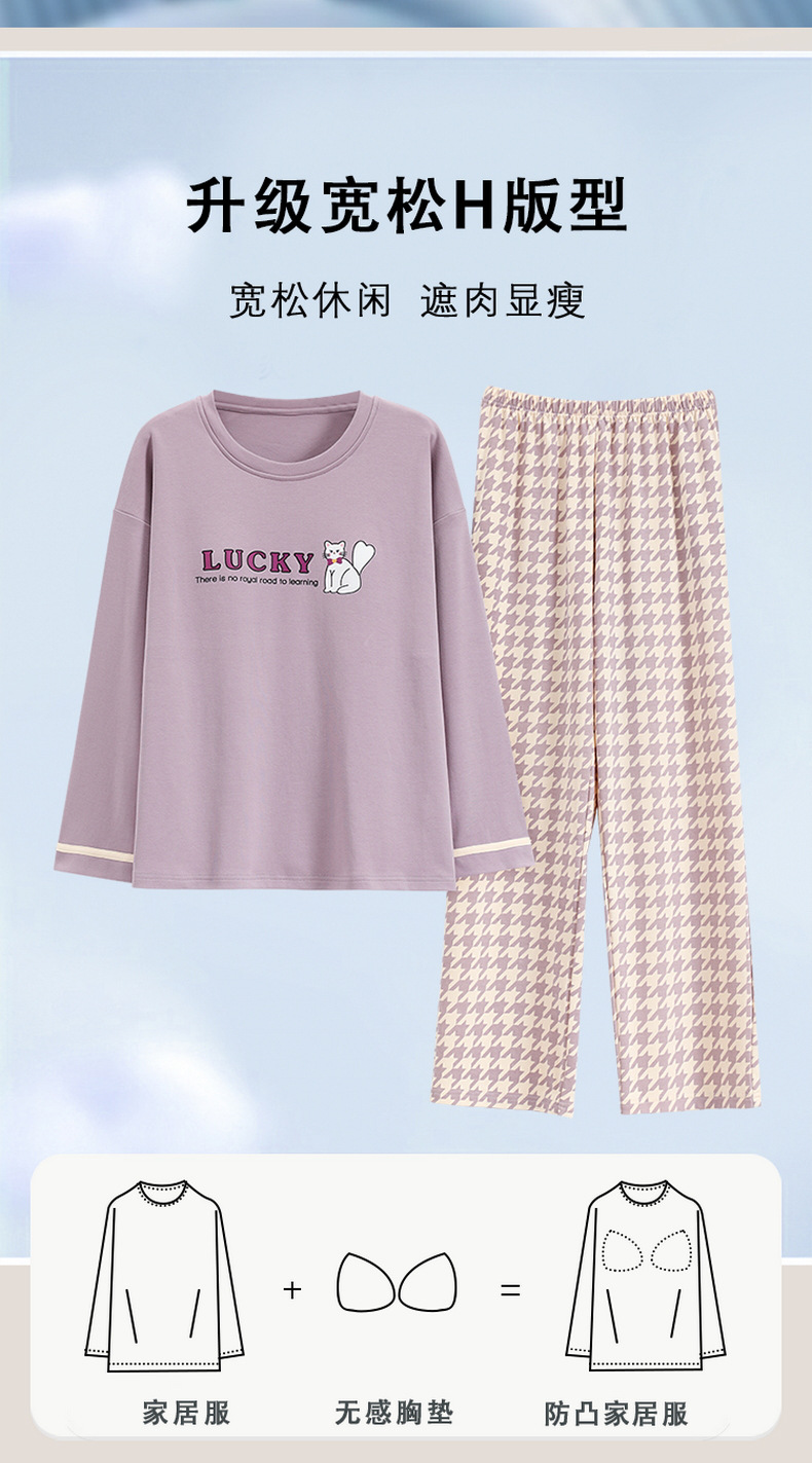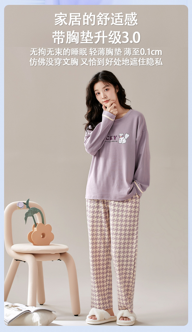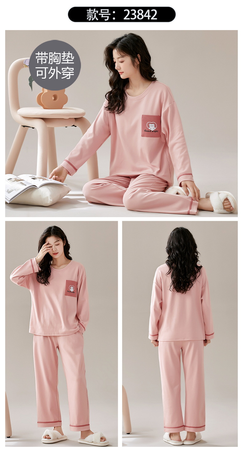 크루 넥 풀오버 파자마 여성의 봄과 가을, 가슴 패드웨어-무료 속옷 긴팔 홈 옷 안티 범프 복장