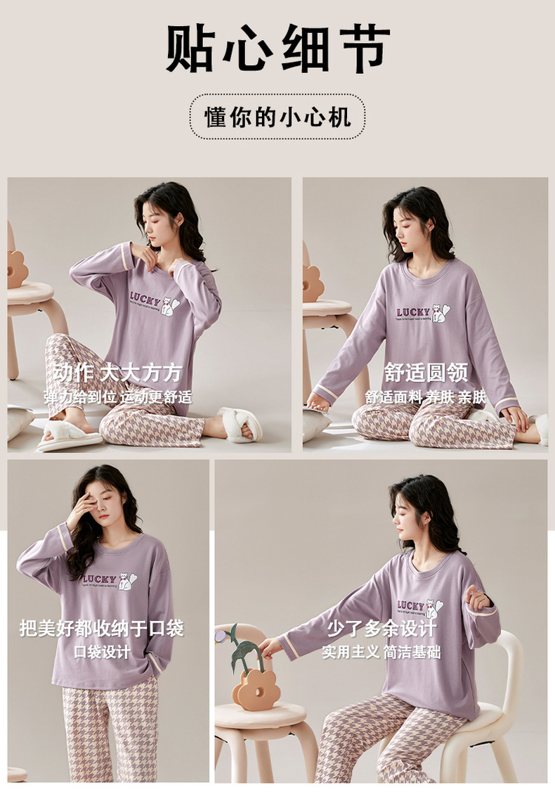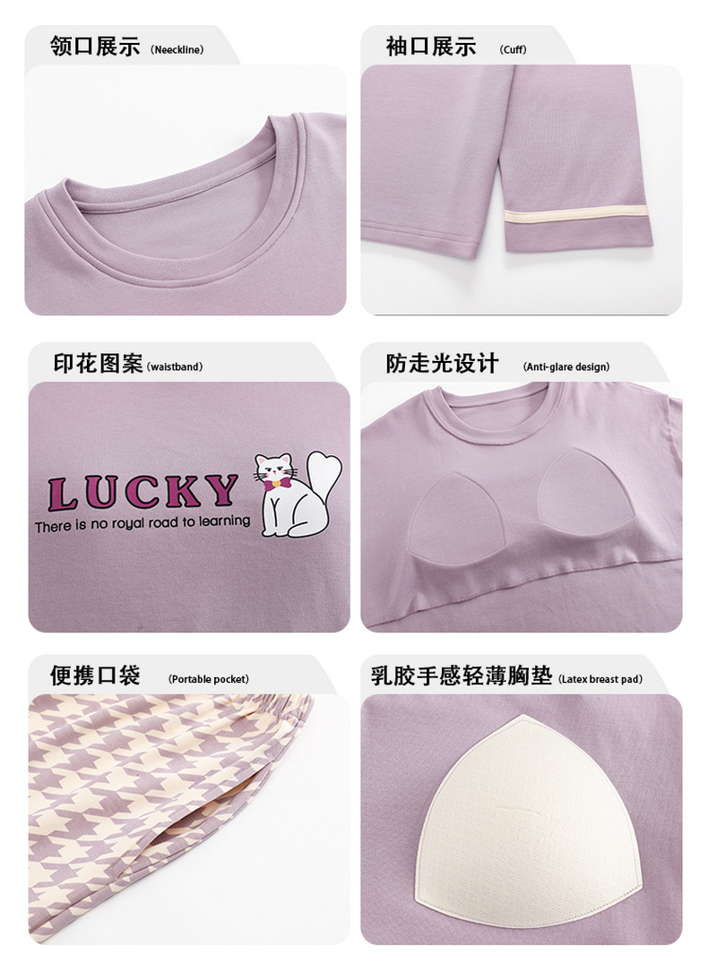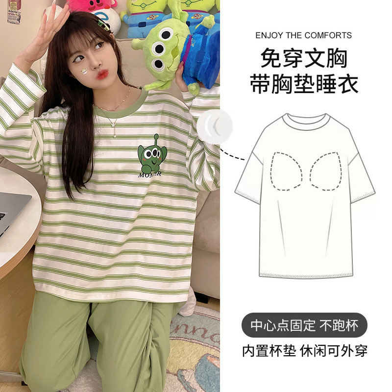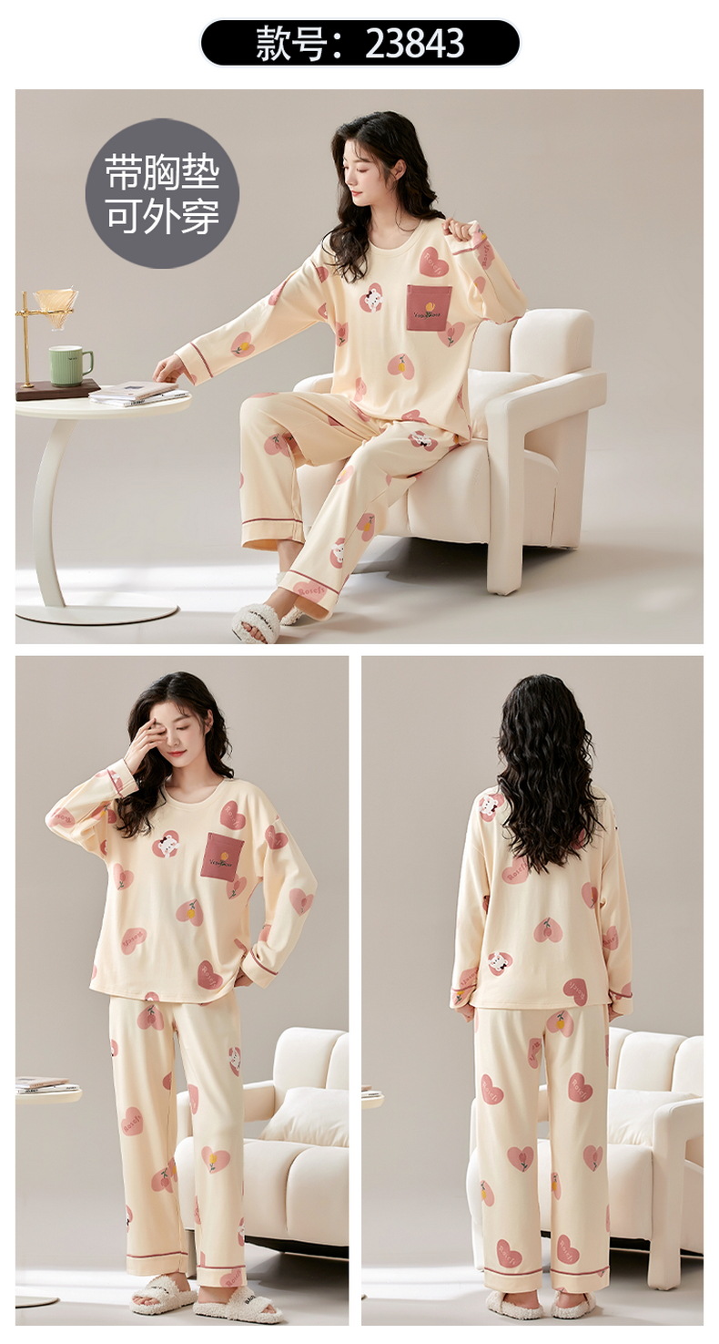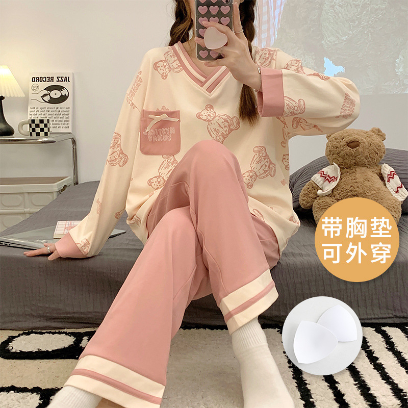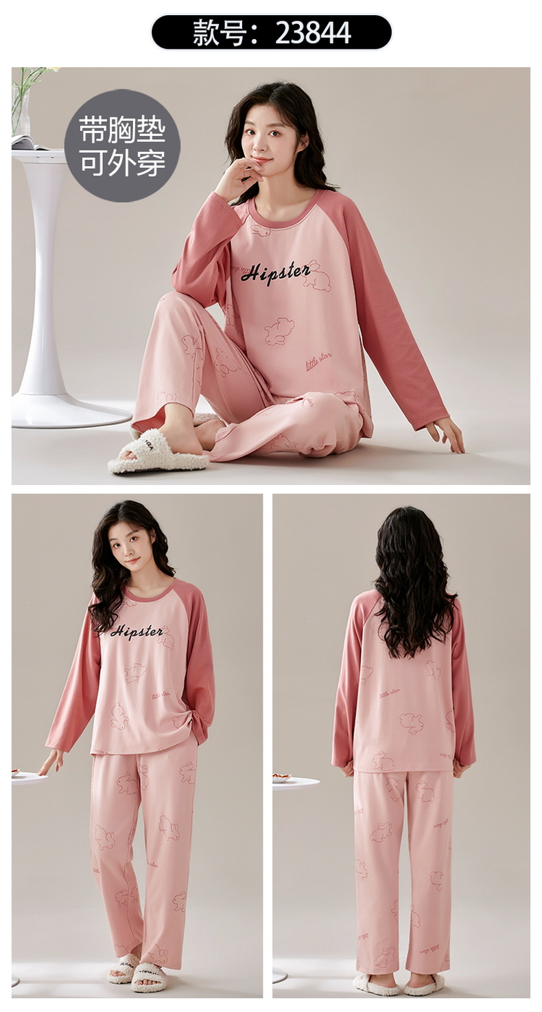 크루 넥 풀오버 파자마 여성의 봄과 가을, 가슴 패드웨어-무료 속옷 긴팔 홈 옷 안티 범프 복장