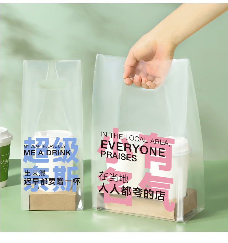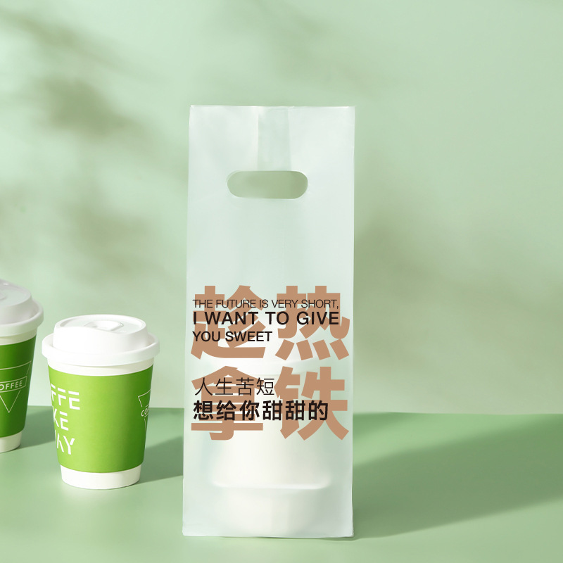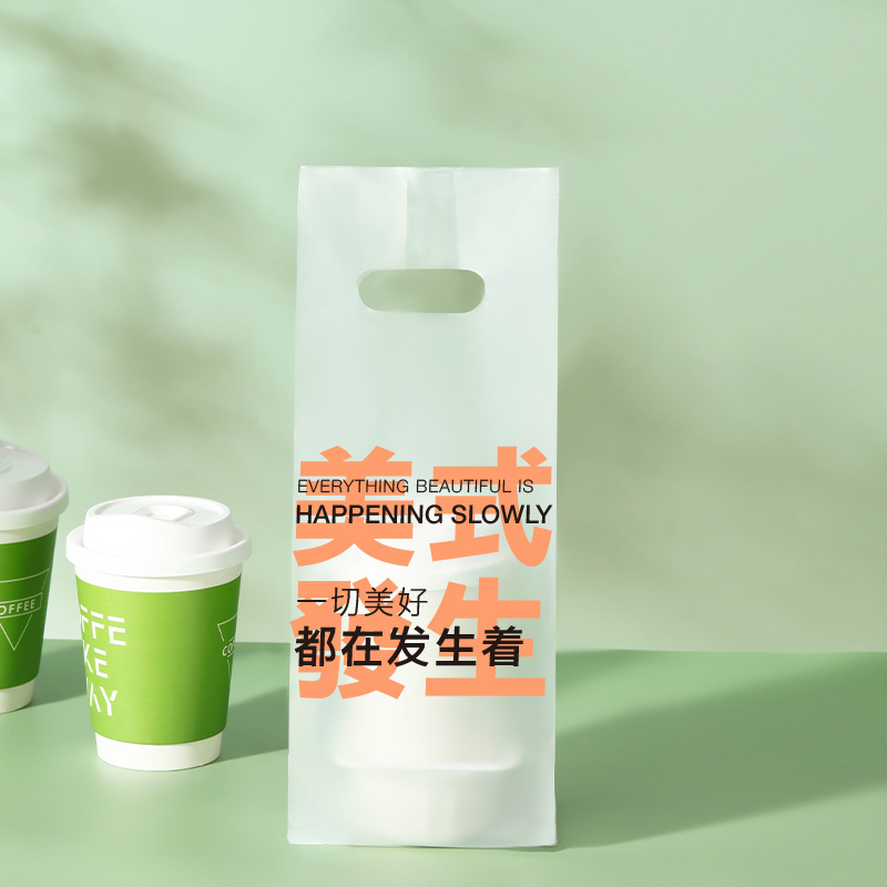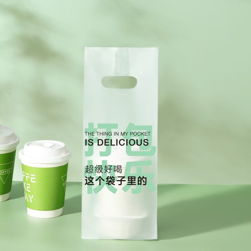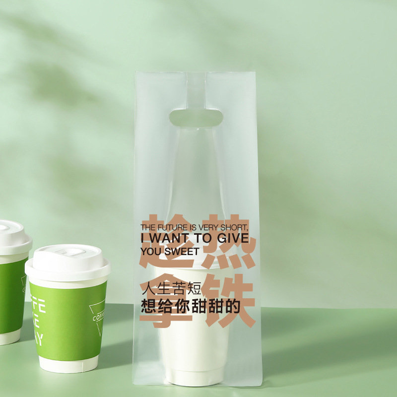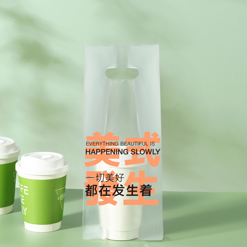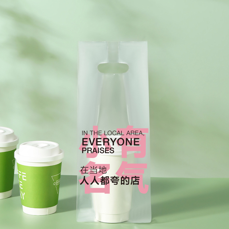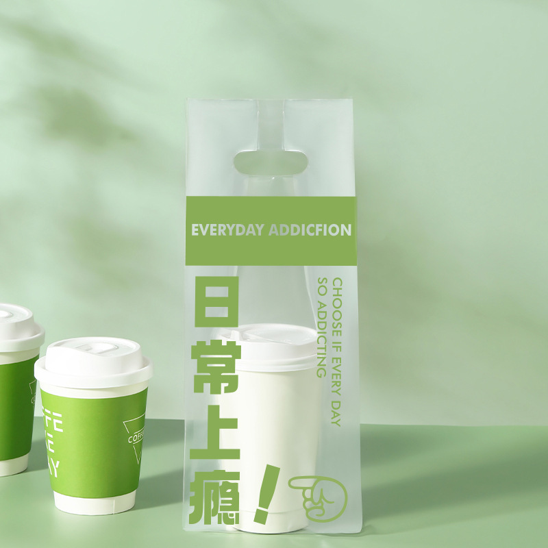 커피 포장 가방 테이크 아웃 우유 차 음료 싱글 컵 더블 컵 비닐 봉투 일회용 투명 핸드백 음료 포장스토어 가기
