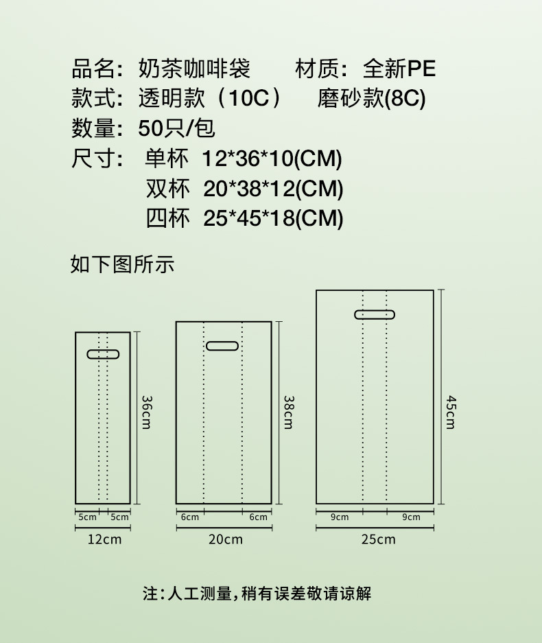 • 투명 아메리카노 포장 봉투; 싱글컵 포장; 플라스틱 컵 홀더 포함 (1팩 50개입)