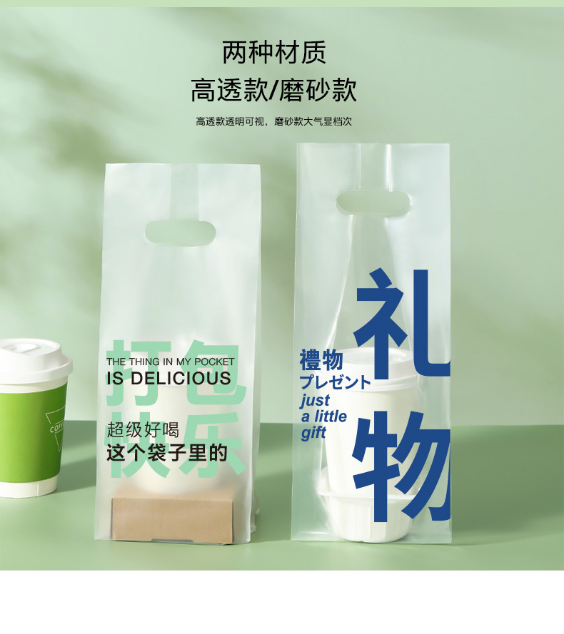 커피 포장 가방 테이크 아웃 우유 차 음료 싱글 컵 더블 컵 비닐 봉투 일회용 투명 핸드백 음료 포장