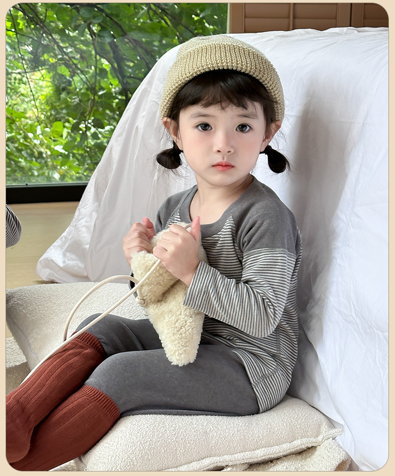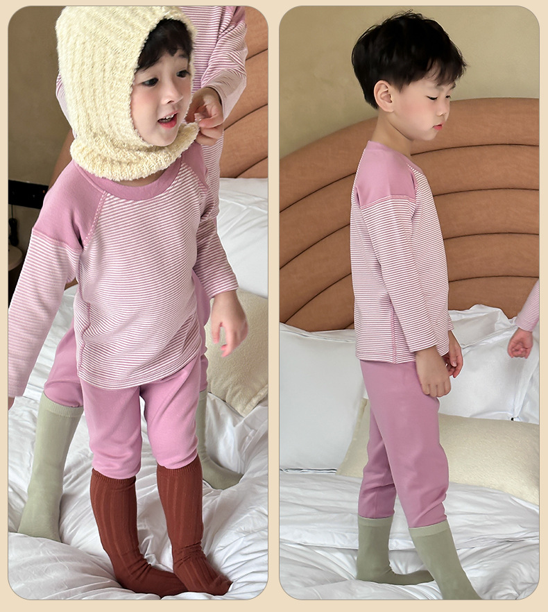 가을과 겨울 어린이 라글란 소매 줄무늬 속옷 세트 아래로 단백질 소년과 소녀 라운드 넥 기본 가을 옷과 바지스토어 가기