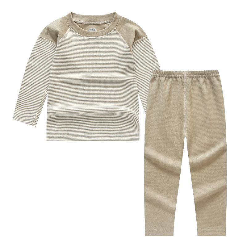 가을과 겨울 어린이 라글란 소매 줄무늬 속옷 세트 아래로 단백질 소년과 소녀 라운드 넥 기본 가을 옷과 바지