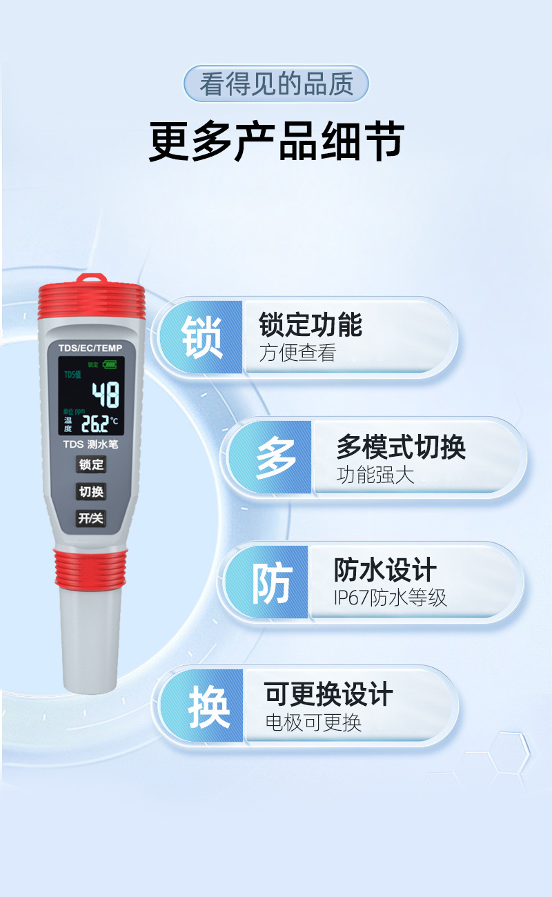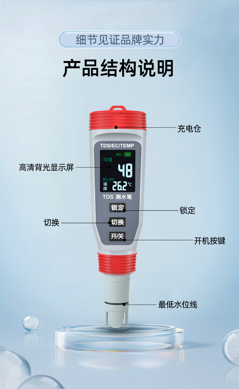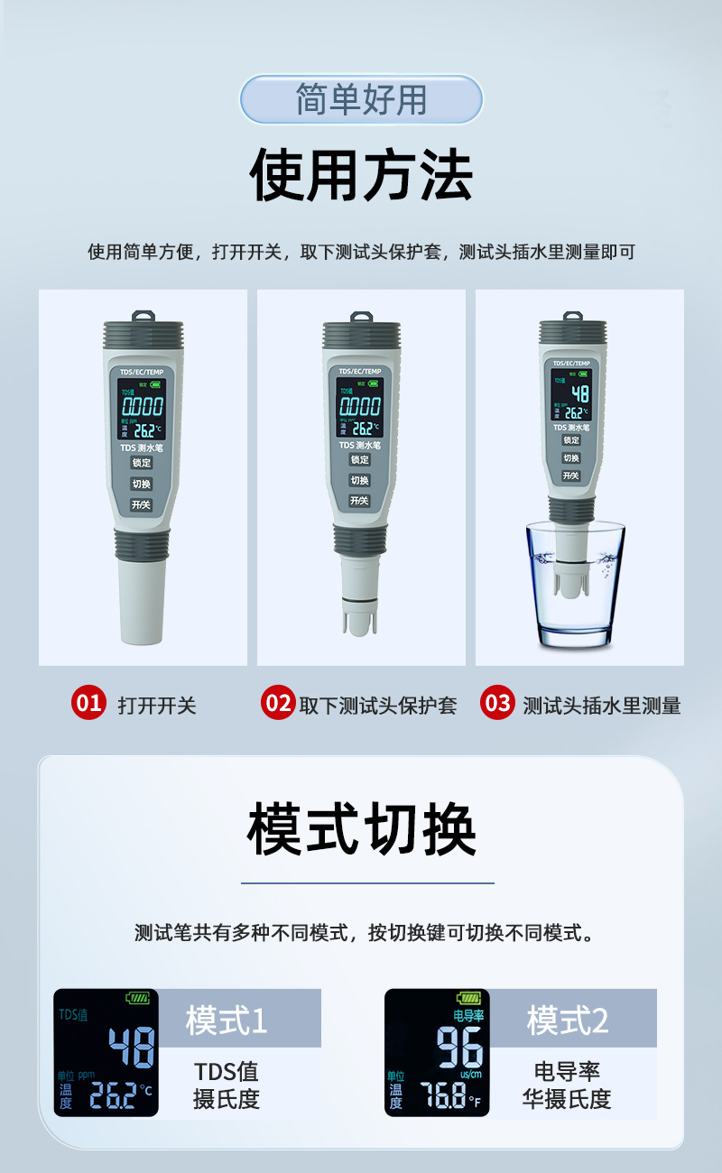 맞춤형 수질 분석기 tds 탐지기 펜 탐지기 휴대용 다기능 EC 전도성 테스트 펜 처리스토어 가기