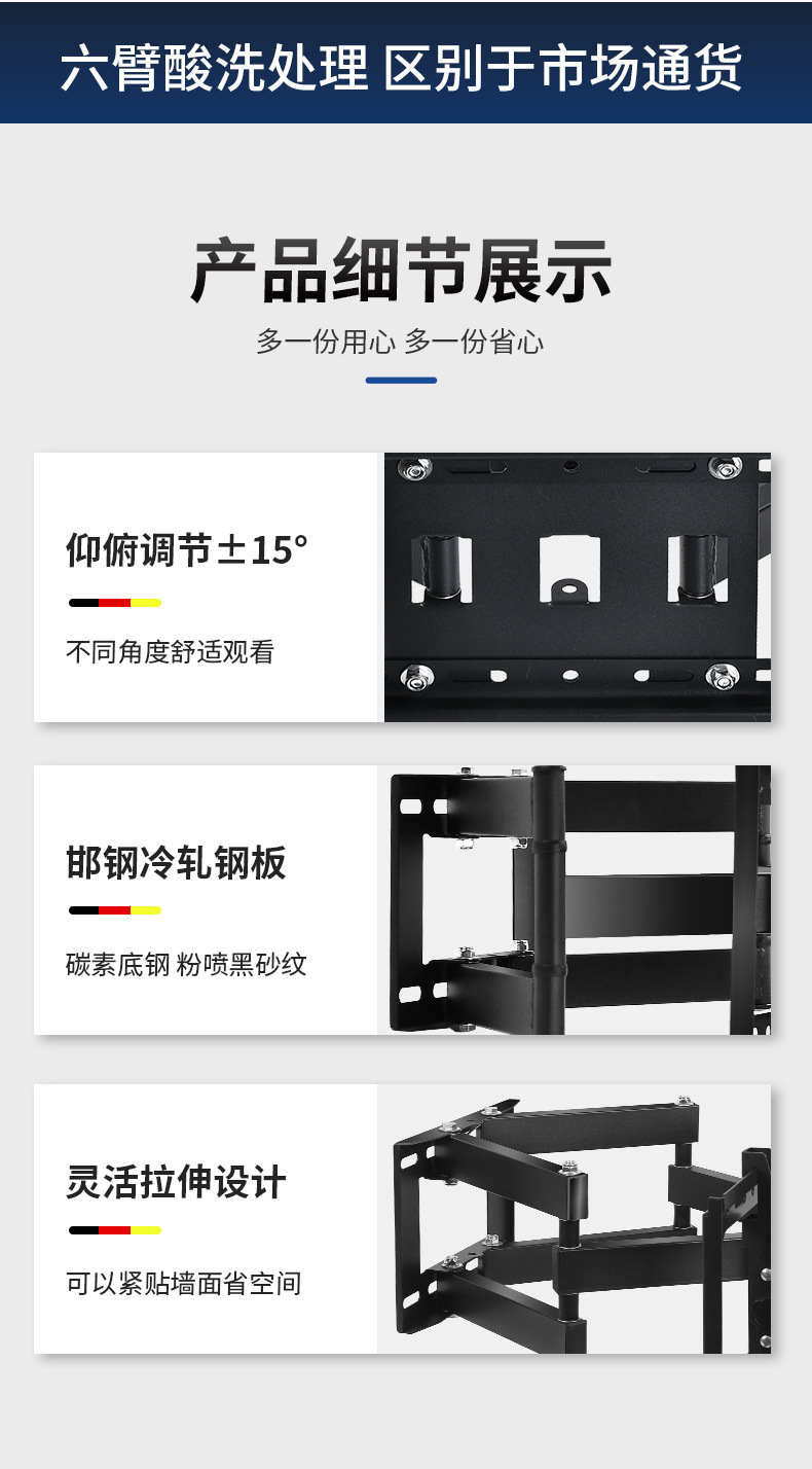 국경 간 TV 브래킷 회전식 신축형 벽걸이 브래킷 14-120inch 모니터 범용 TV 스윙 브래킷스토어 가기