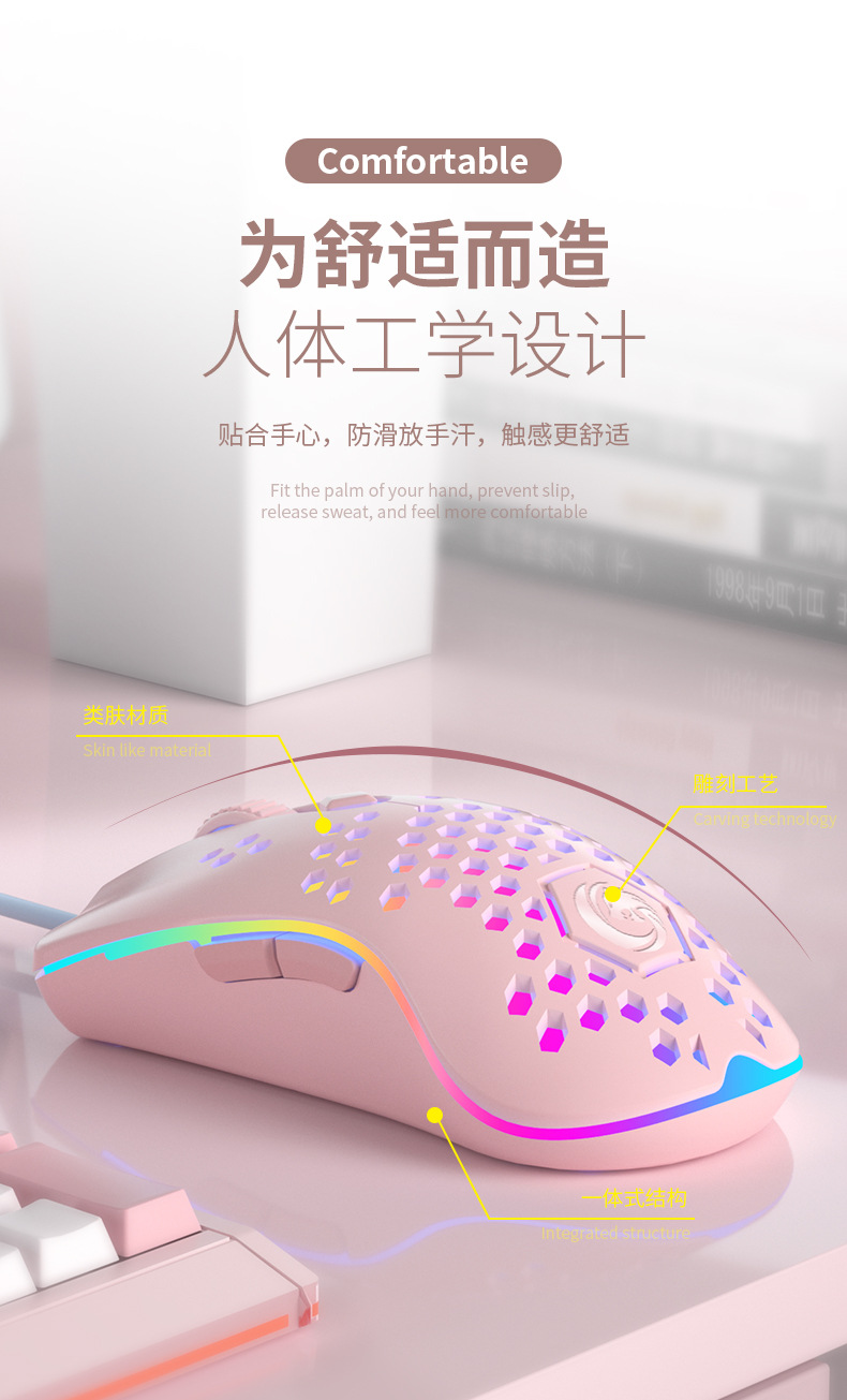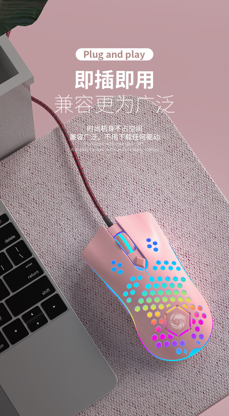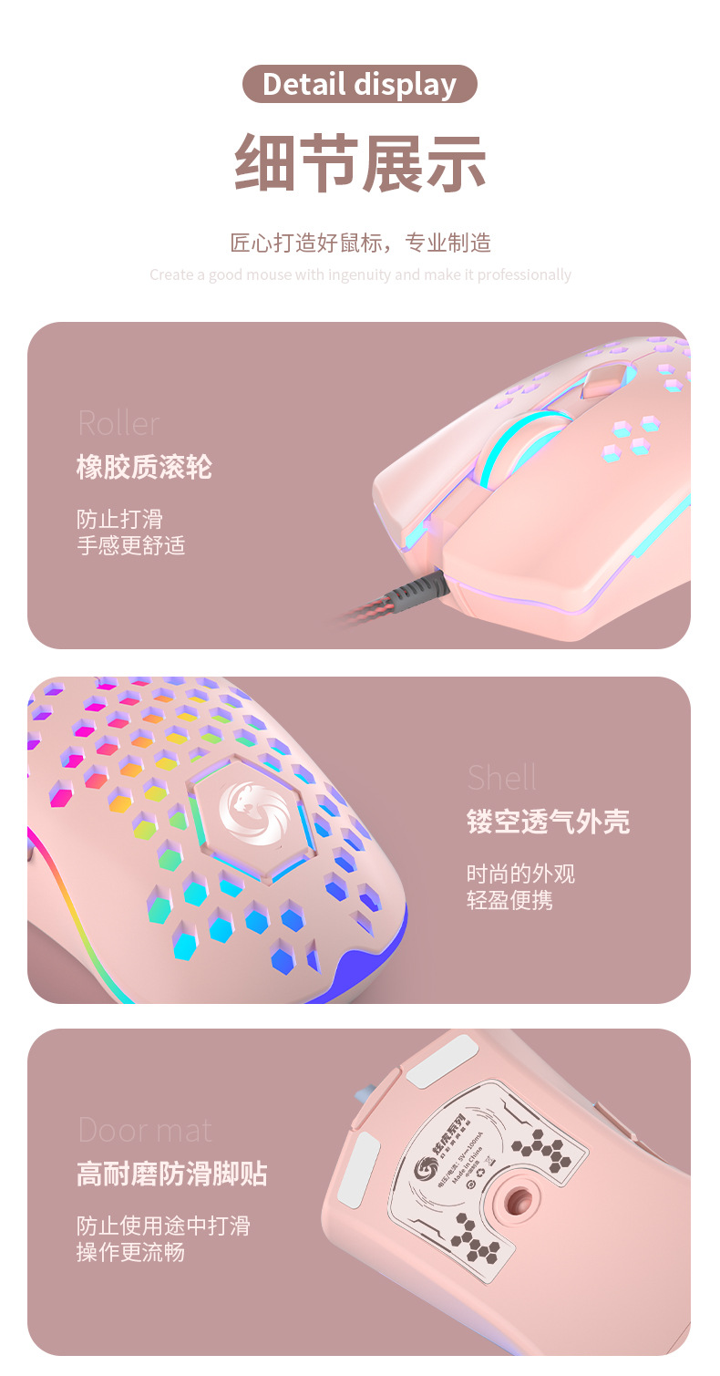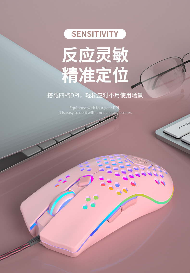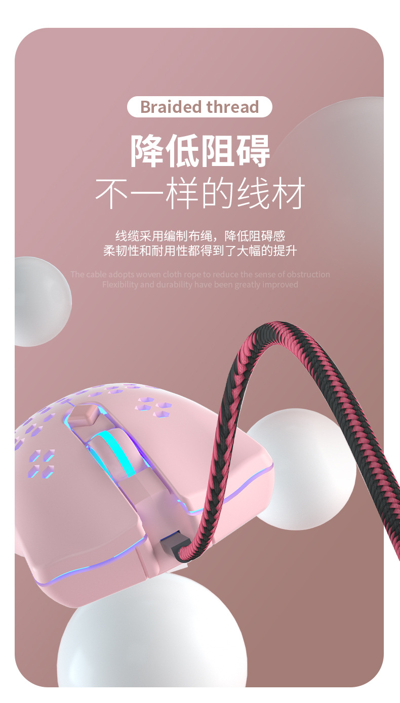 • RGB 유선 게임 마우스-핑크