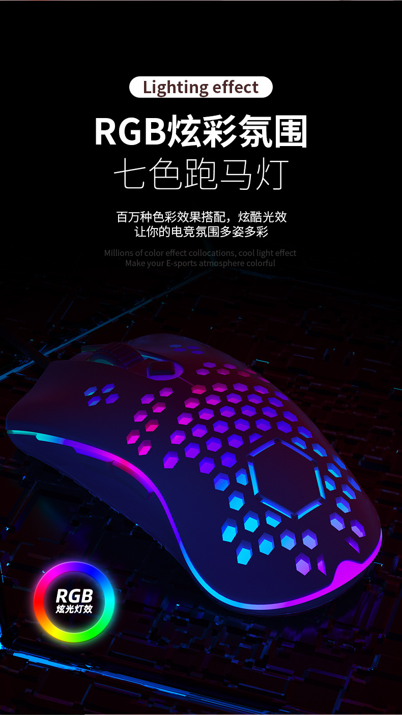 국경 간 유선 게임 마우스 RGB 화려한 비디오 게임 치킨 LOL 오디오 노트북 컴퓨터 구멍 마우스를 먹는다스토어 가기