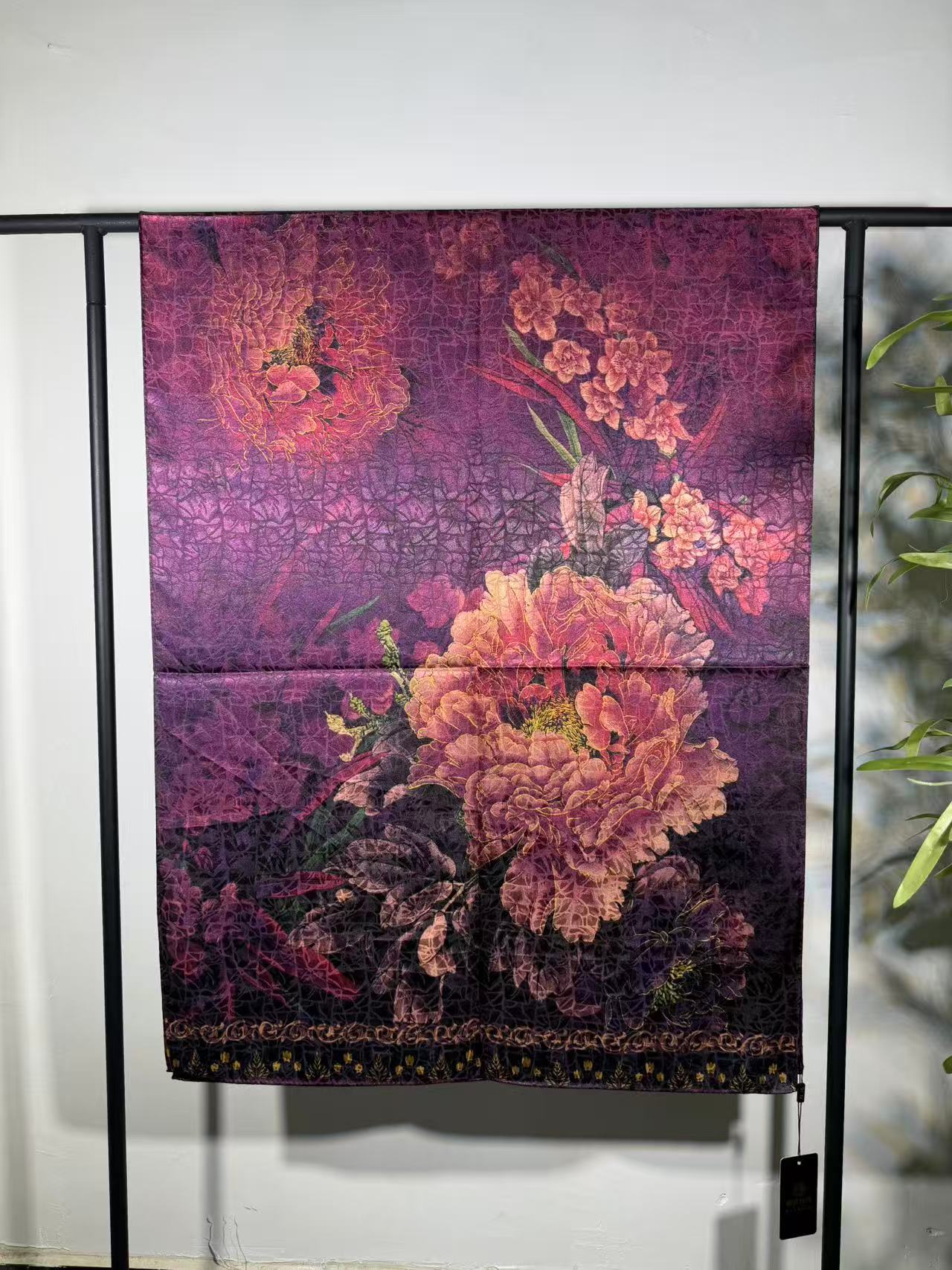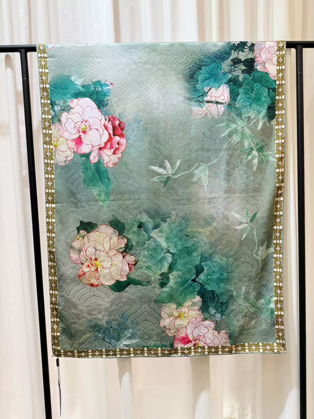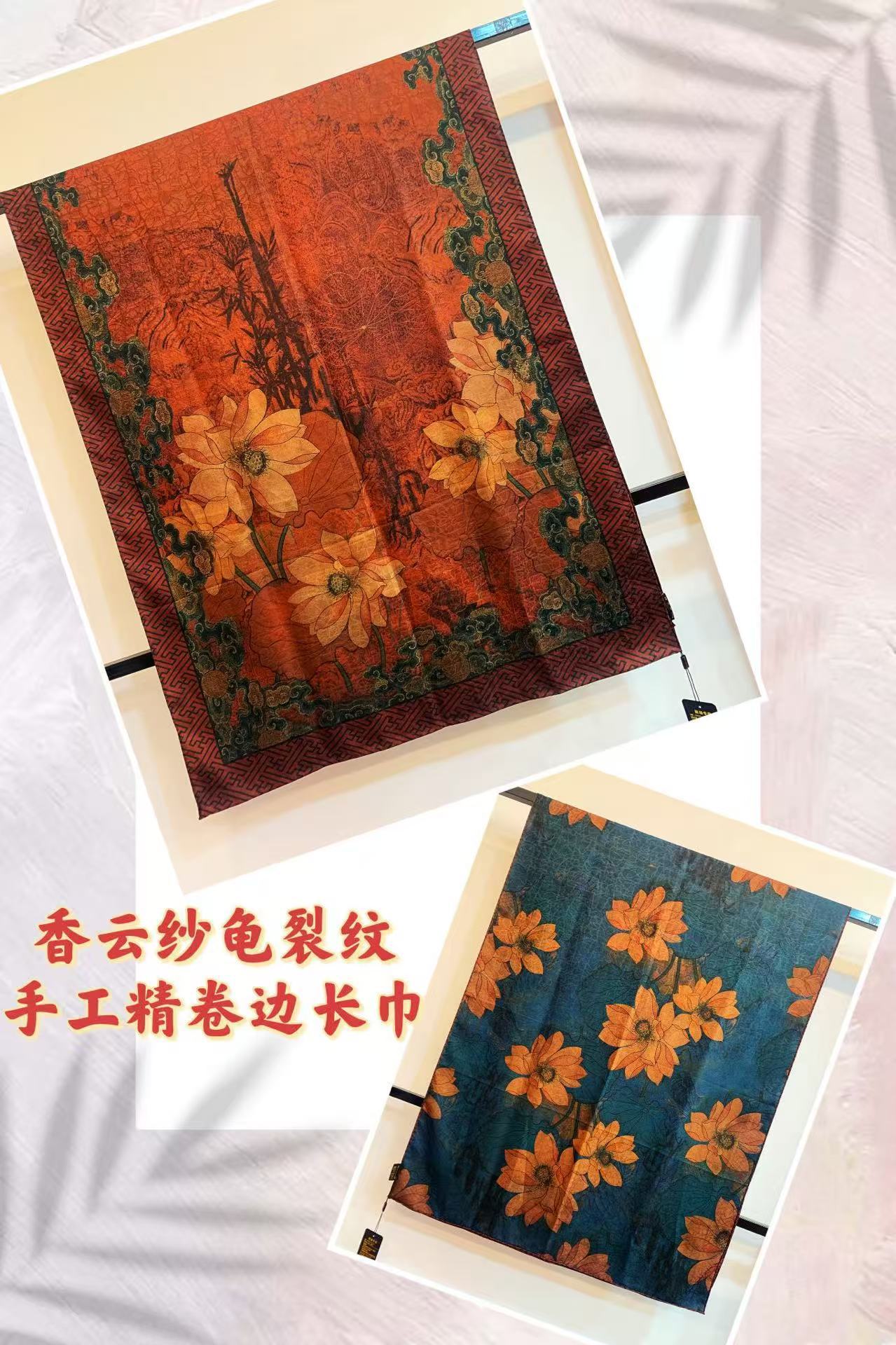 只要有条围巾相配,就有了飘逸的鲜活感,花色让人惊叹,用色复杂,但又那么和谐,浓浓的艺术气息。图案层次丰富、色彩对比强烈、轮廓清晰、具有复古国风的韵味,180cm*75cm左右尺寸,可以披可以围随意披搭在身上,有种怡然自得的慵懒高级感便会自然而然的散发出优雅从容的舒适感