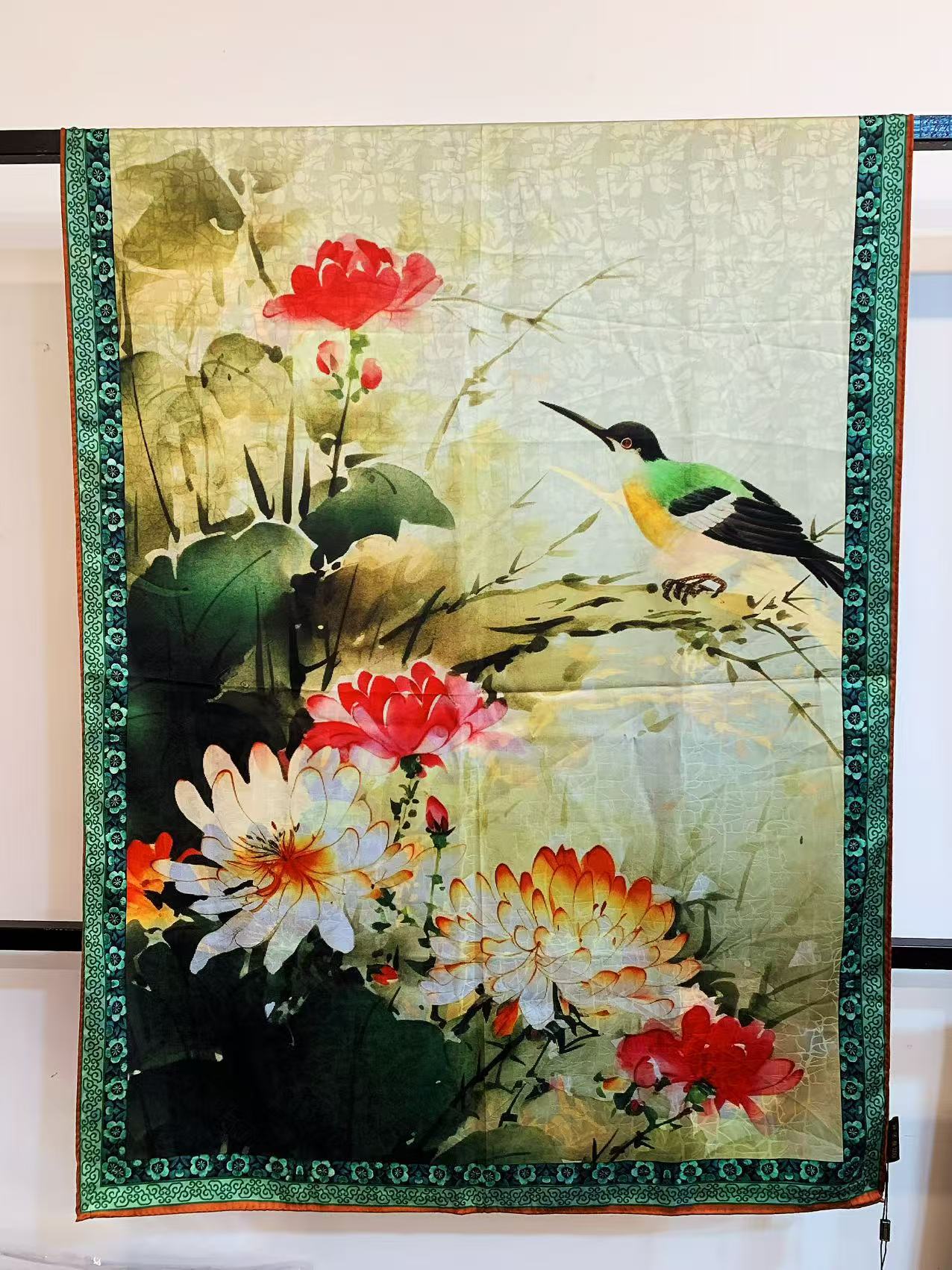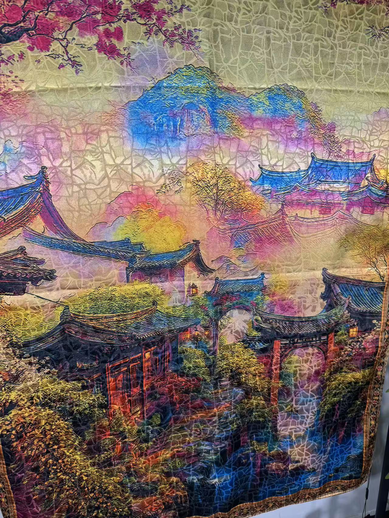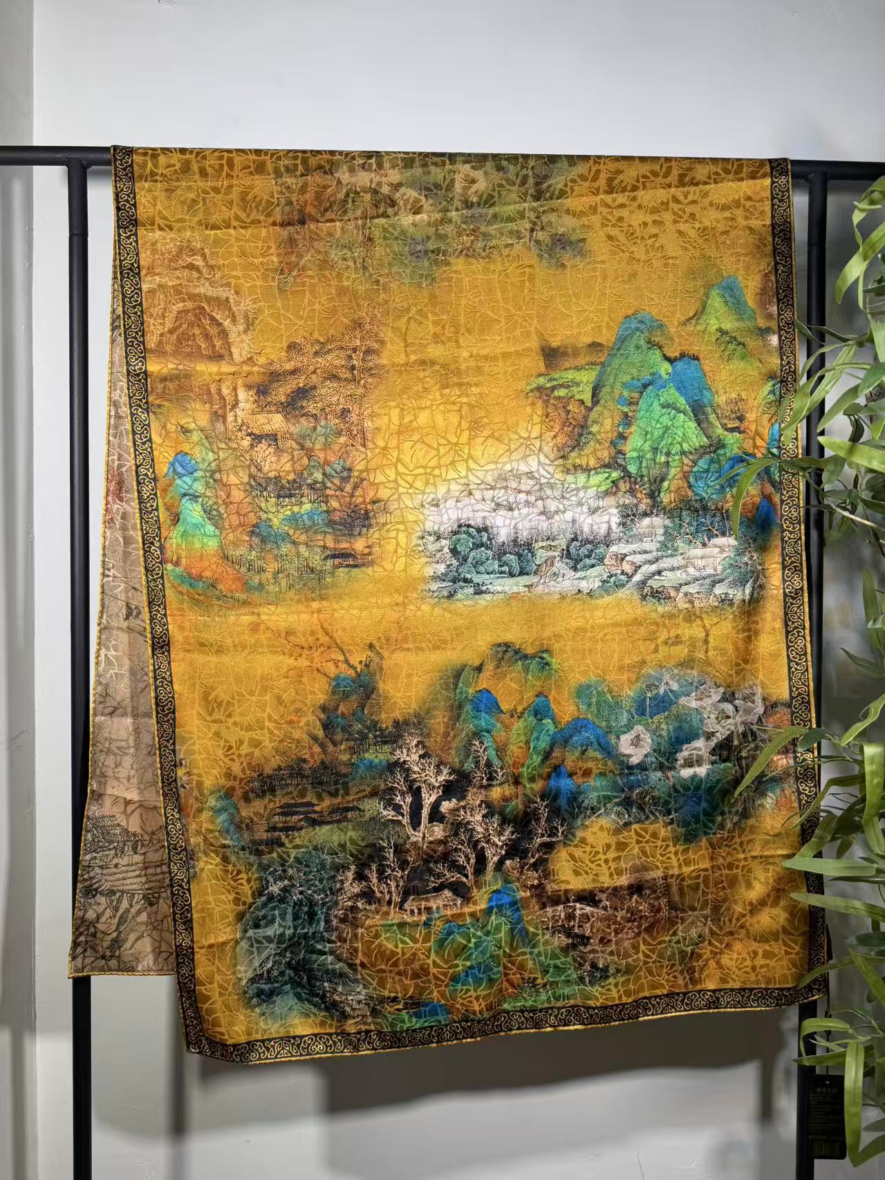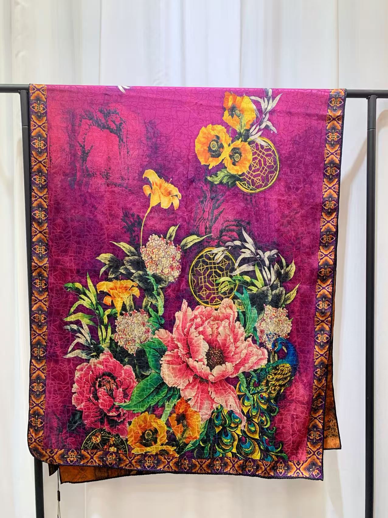 只要有条围巾相配,就有了飘逸的鲜活感,花色让人惊叹,用色复杂,但又那么和谐,浓浓的艺术气息。图案层次丰富、色彩对比强烈、轮廓清晰、具有复古国风的韵味,180cm*75cm左右尺寸,可以披可以围随意披搭在身上,有种怡然自得的慵懒高级感便会自然而然的散发出优雅从容的舒适感