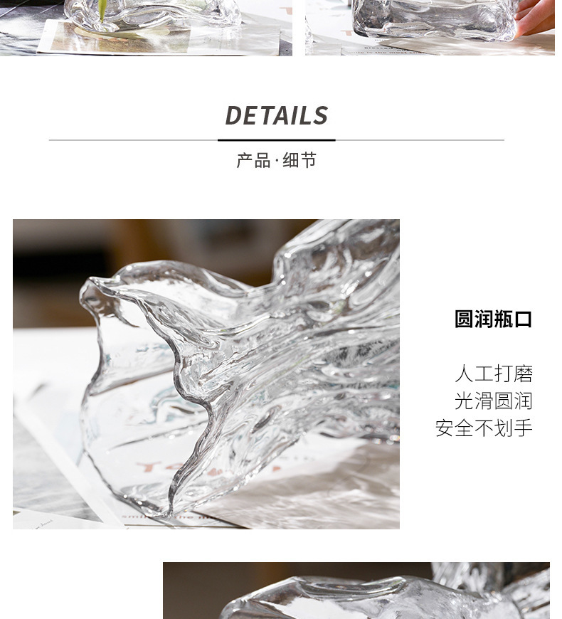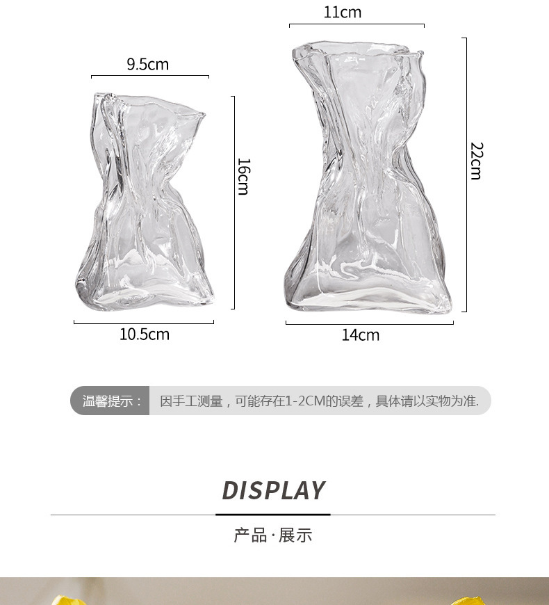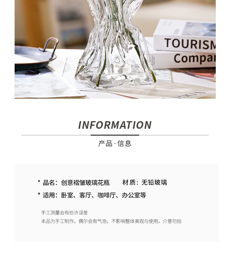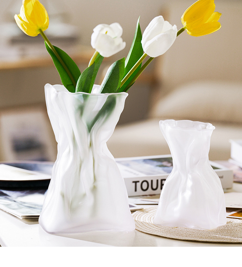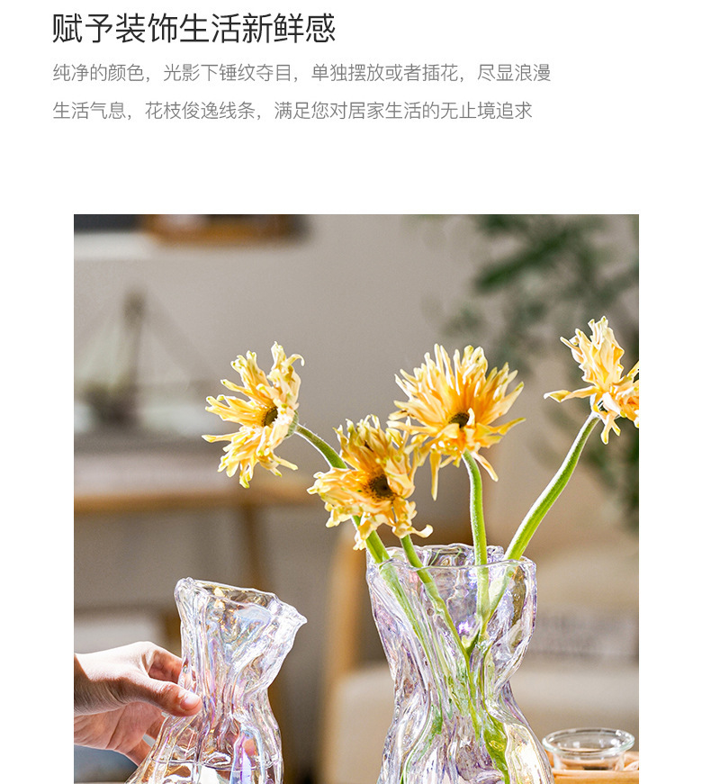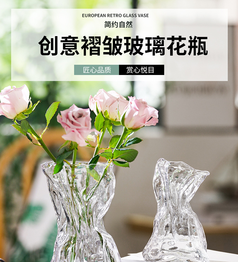 주름 빛 럭셔리 창조적 인 주름 꽃병 투명 거실 스타일 유리 수경 꽃꽂이 장식 북유럽 스타일스토어 가기
