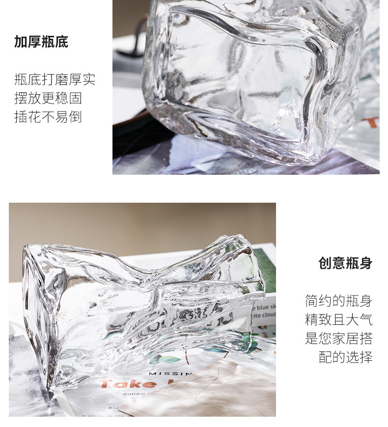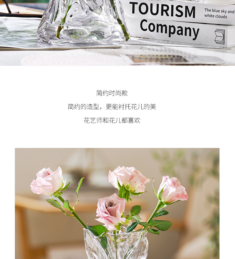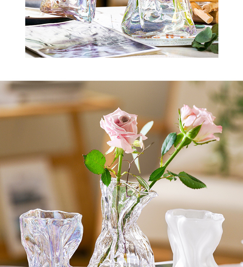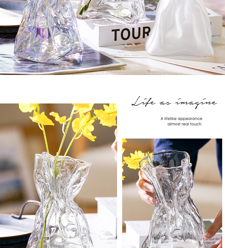 주름 빛 럭셔리 창조적 인 주름 꽃병 투명 거실 스타일 유리 수경 꽃꽂이 장식 북유럽 스타일