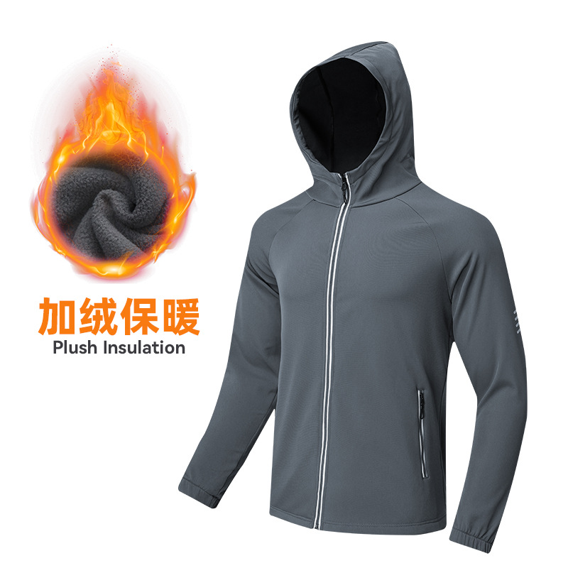 뜨거운 판매 외국 무역 기모 캐주얼 스포츠 재킷 실행 등산 훈련 세트 남자의 후드 지퍼 재킷 플러스 사이즈스토어 가기