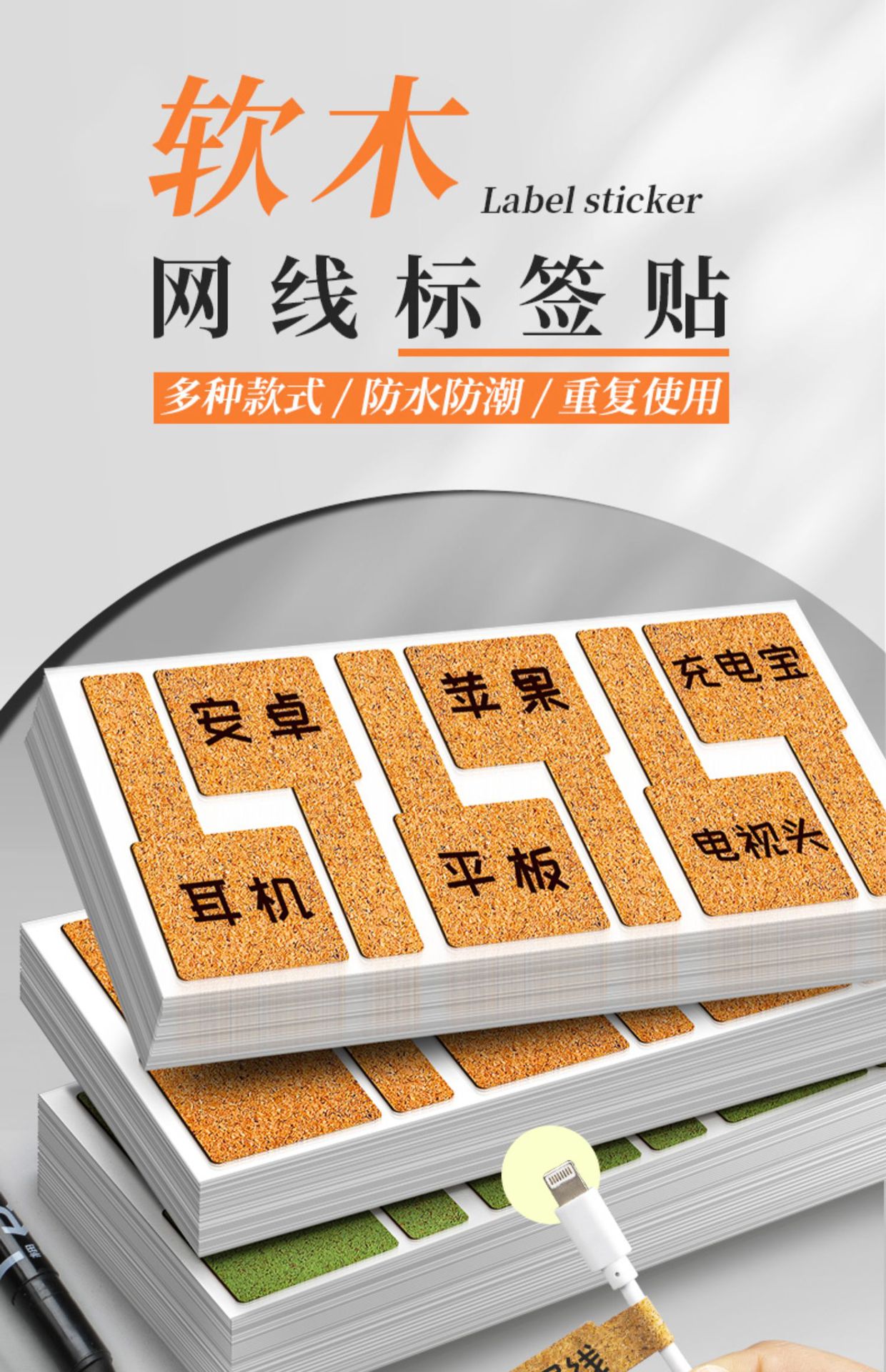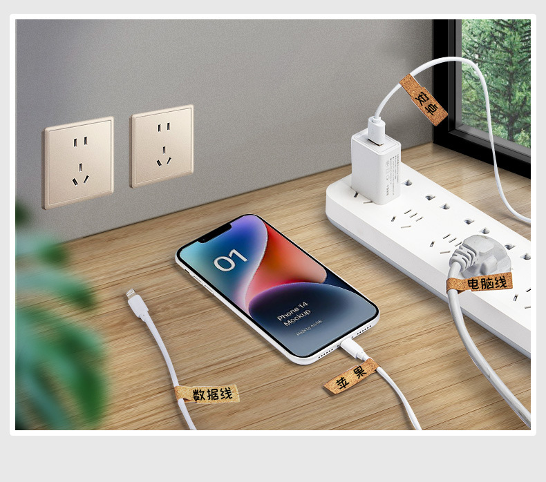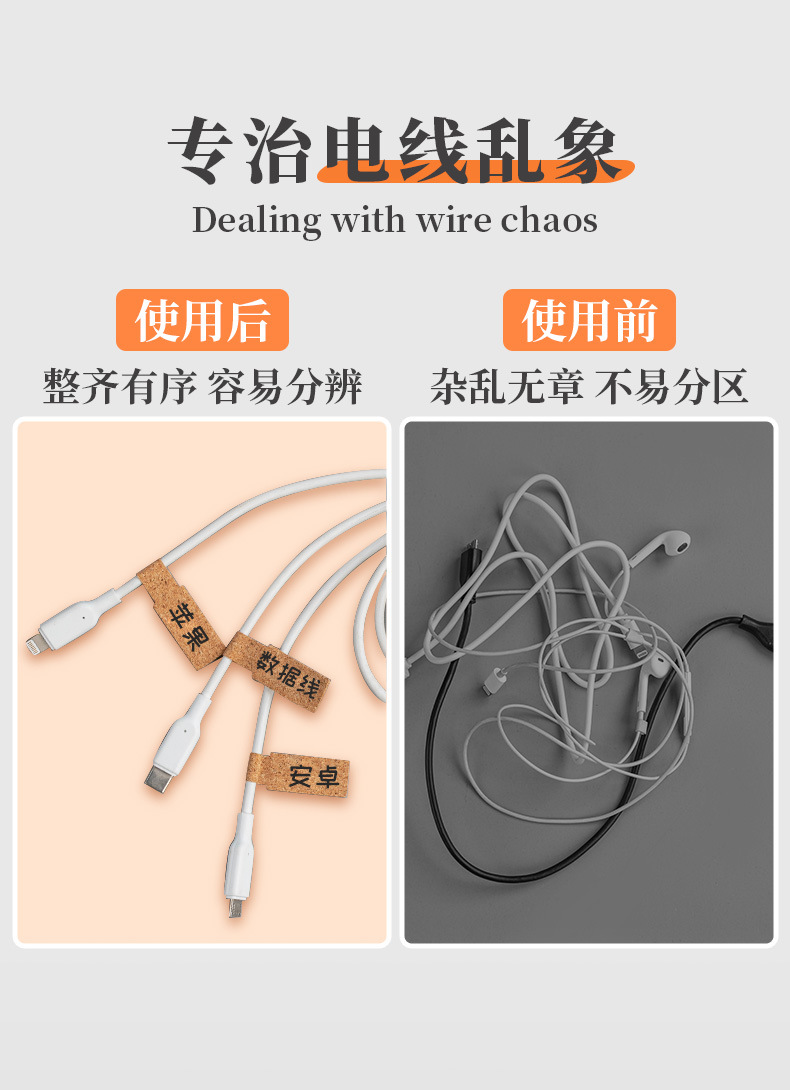 코르크 케이블 라벨 스티커 컬러 데이터 케이블 스티커 로고 와이어 및 케이블 저장 마무리 라벨 스티커
