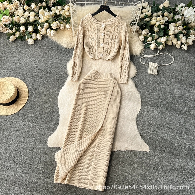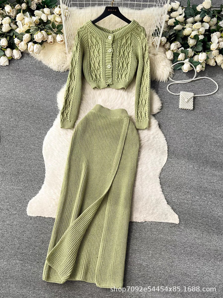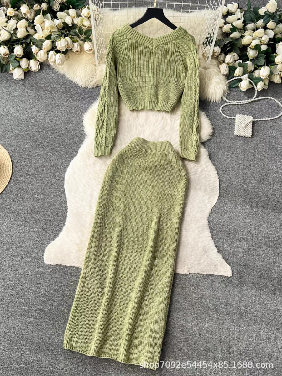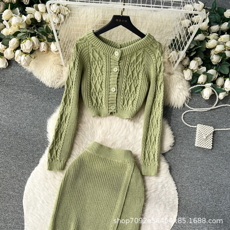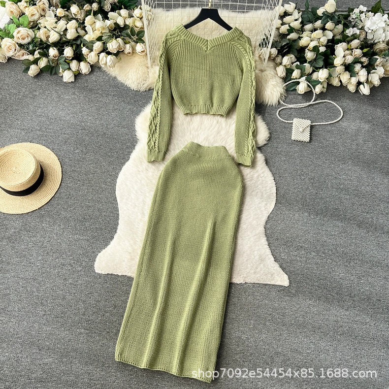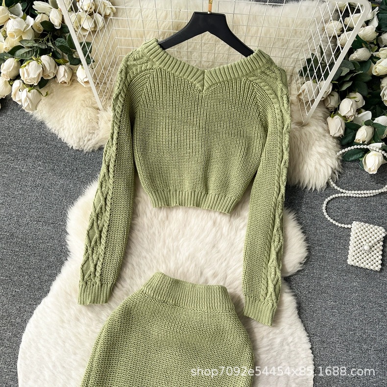 한국 동대문 게으른 바람 느슨한 트위스트 스웨터 여자의 꽉 허리 꽉 엉덩이 스커트 니트 스웨터 투피스 세트스토어 가기