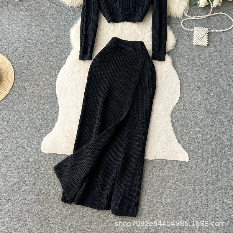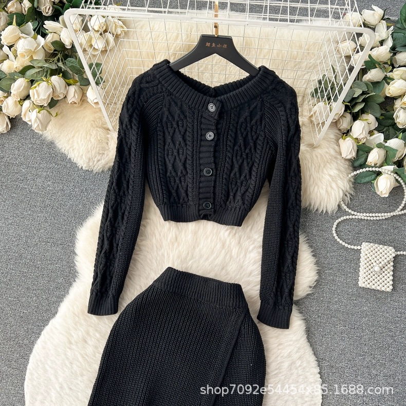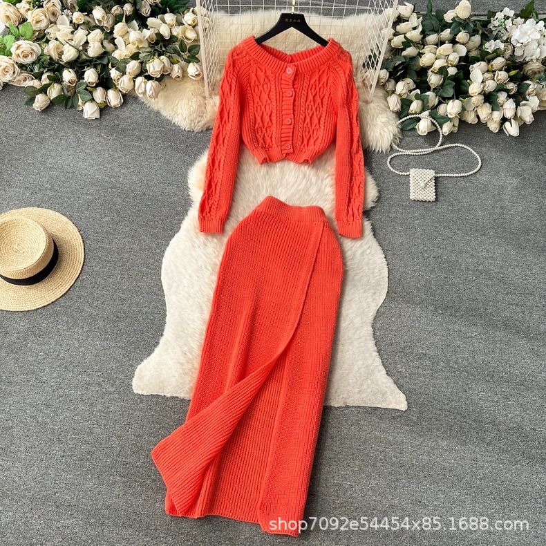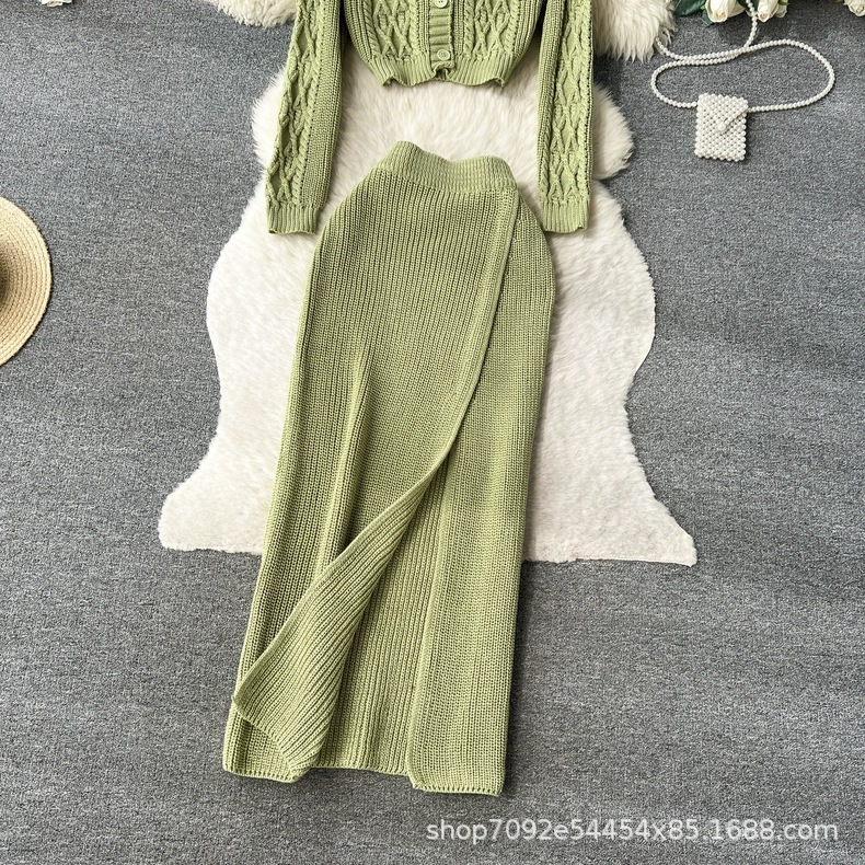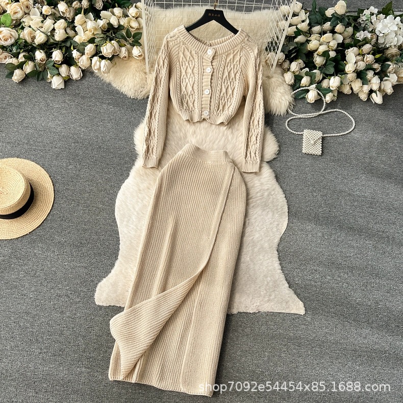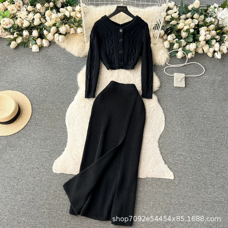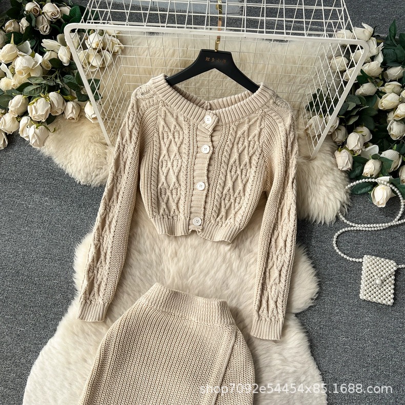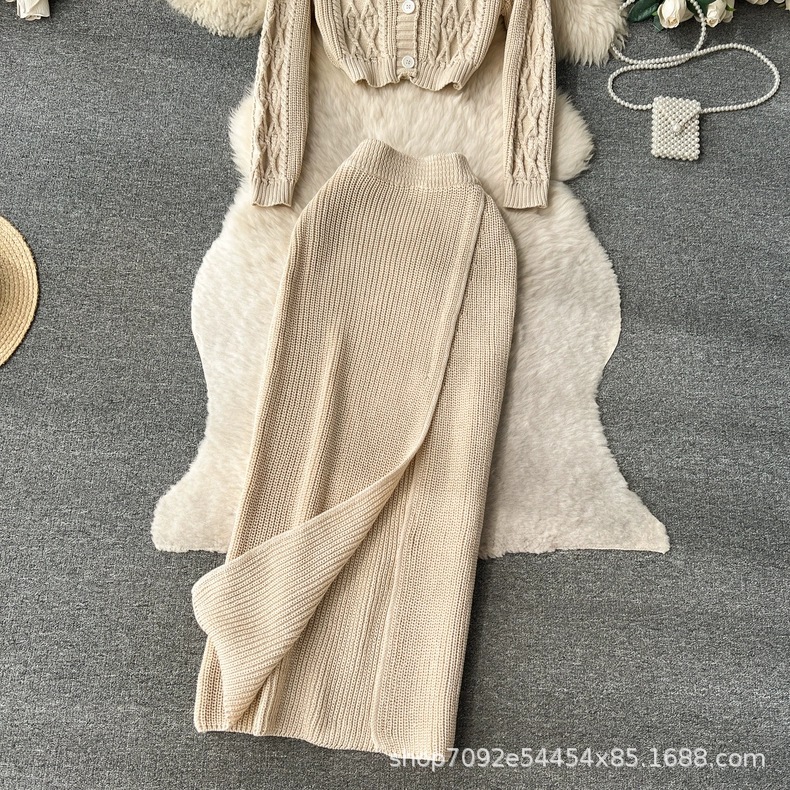 한국 동대문 게으른 바람 느슨한 트위스트 스웨터 여자의 꽉 허리 꽉 엉덩이 스커트 니트 스웨터 투피스 세트스토어 가기