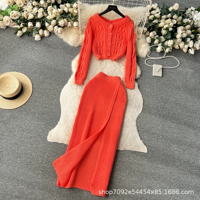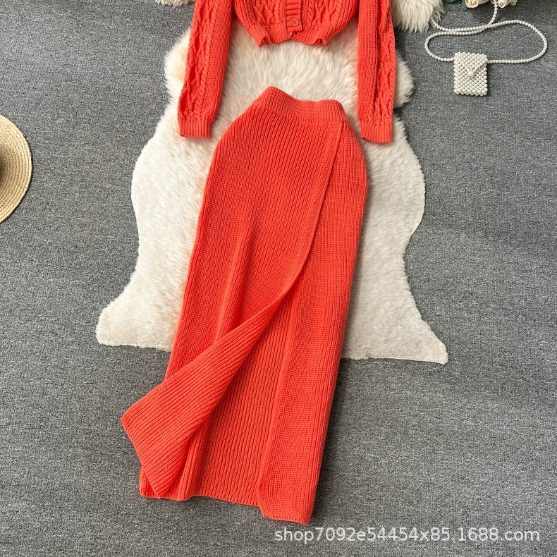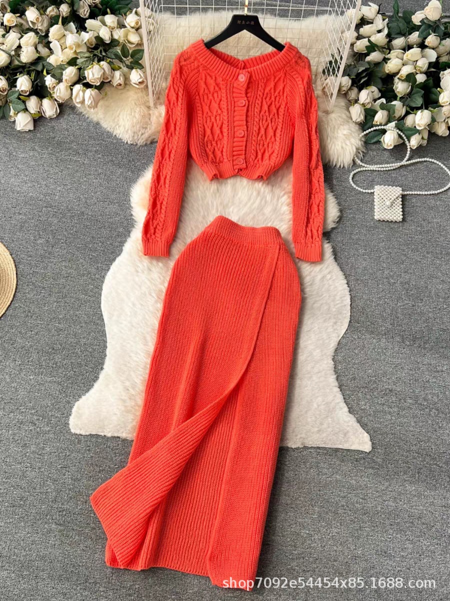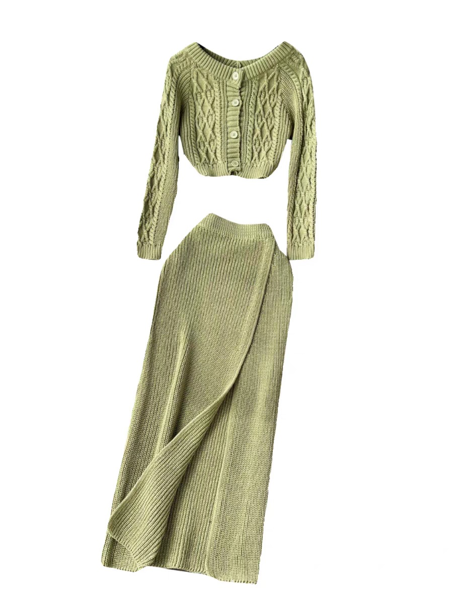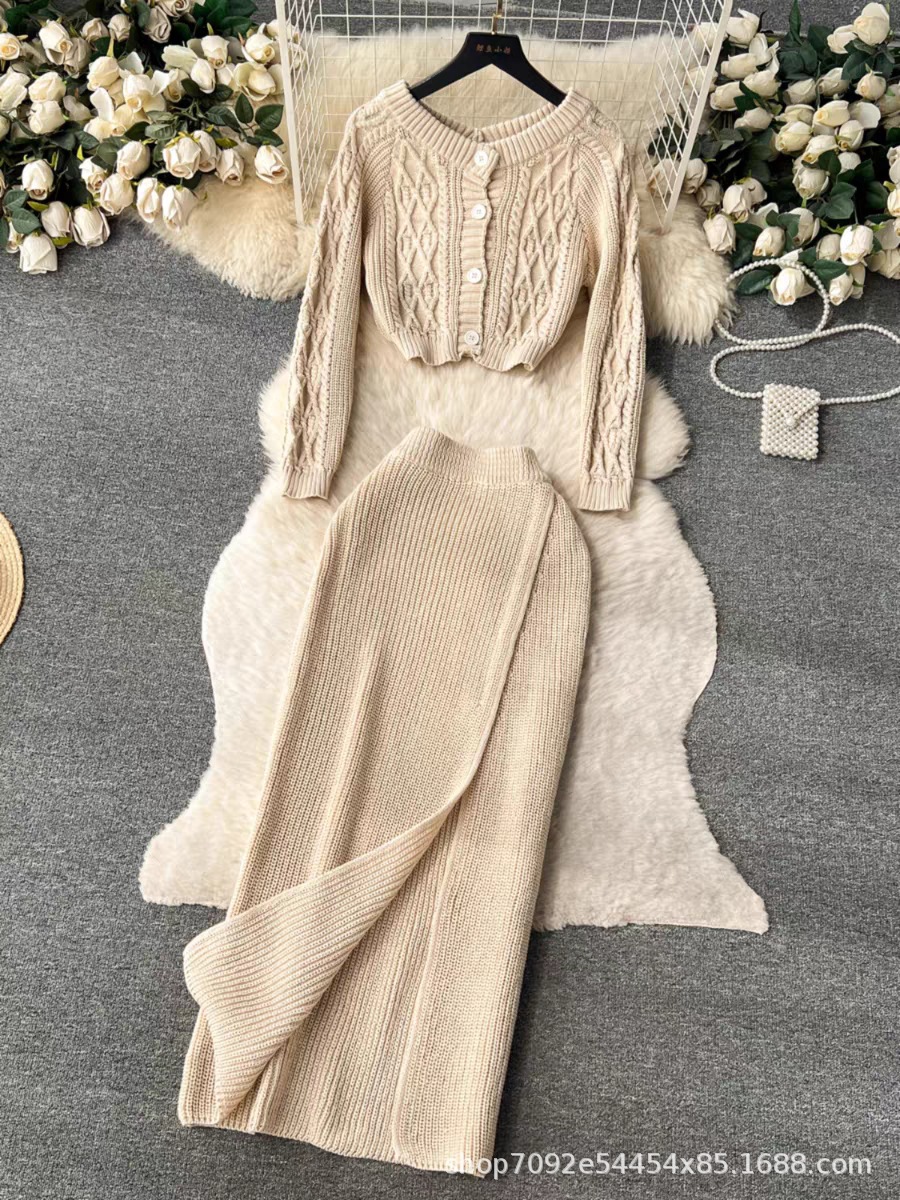 한국 동대문 게으른 바람 느슨한 트위스트 스웨터 여자의 꽉 허리 꽉 엉덩이 스커트 니트 스웨터 투피스 세트스토어 가기