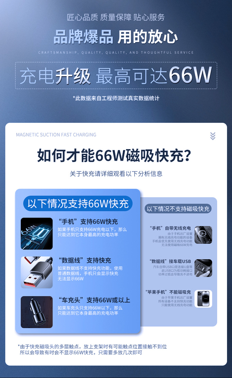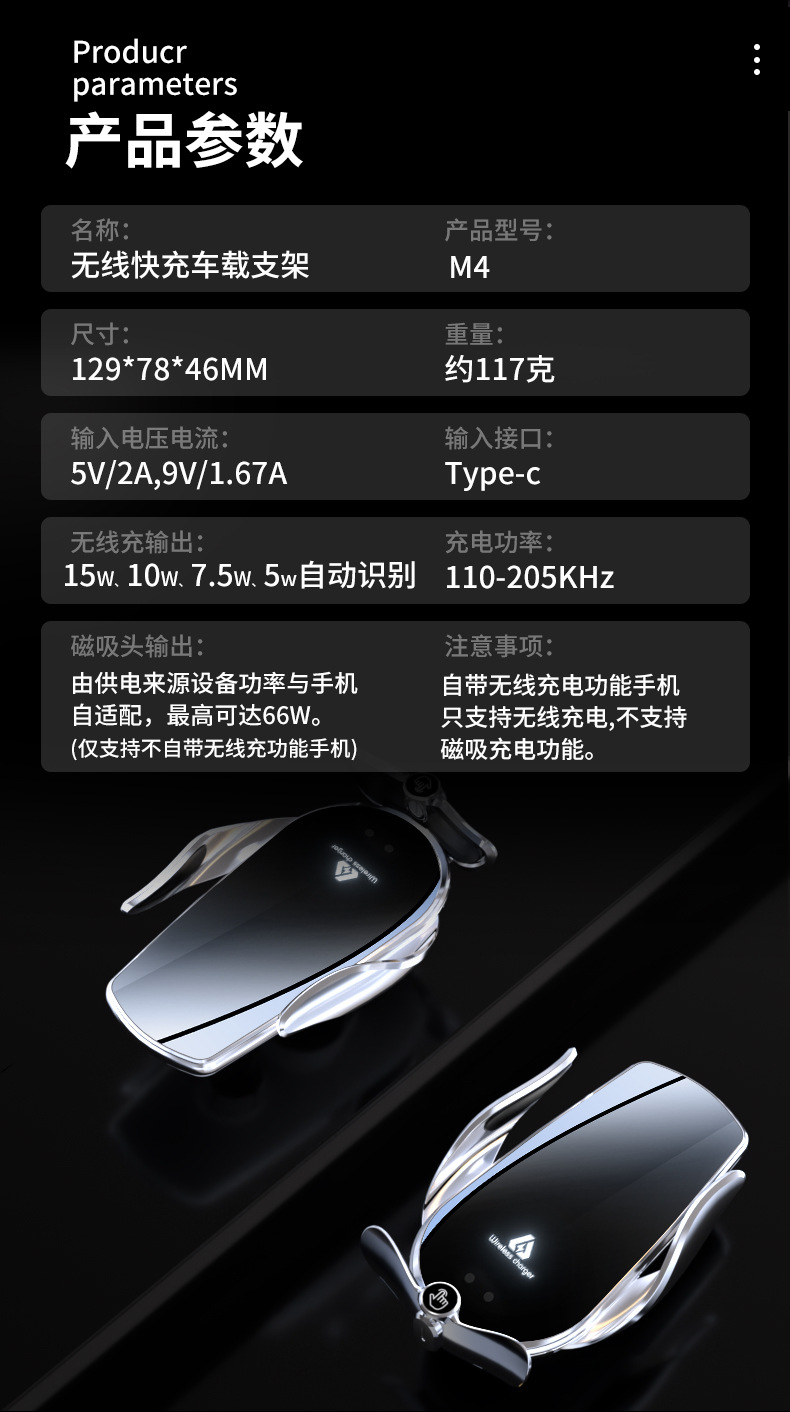 매직 클립 M4 자기 흡입 66 와트 초고속 충전 지능형 유도 화염 픽업 무선 충전 휴대 전화 브래킷 자동 공급스토어 가기