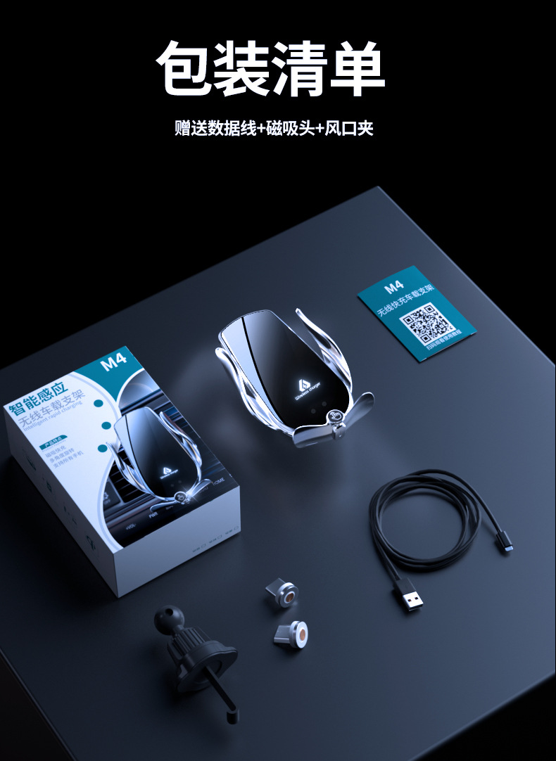 매직 클립 M4 자기 흡입 66 와트 초고속 충전 지능형 유도 화염 픽업 무선 충전 휴대 전화 브래킷 자동 공급