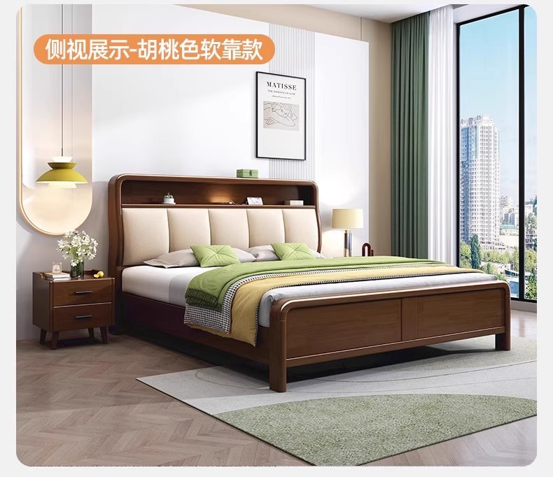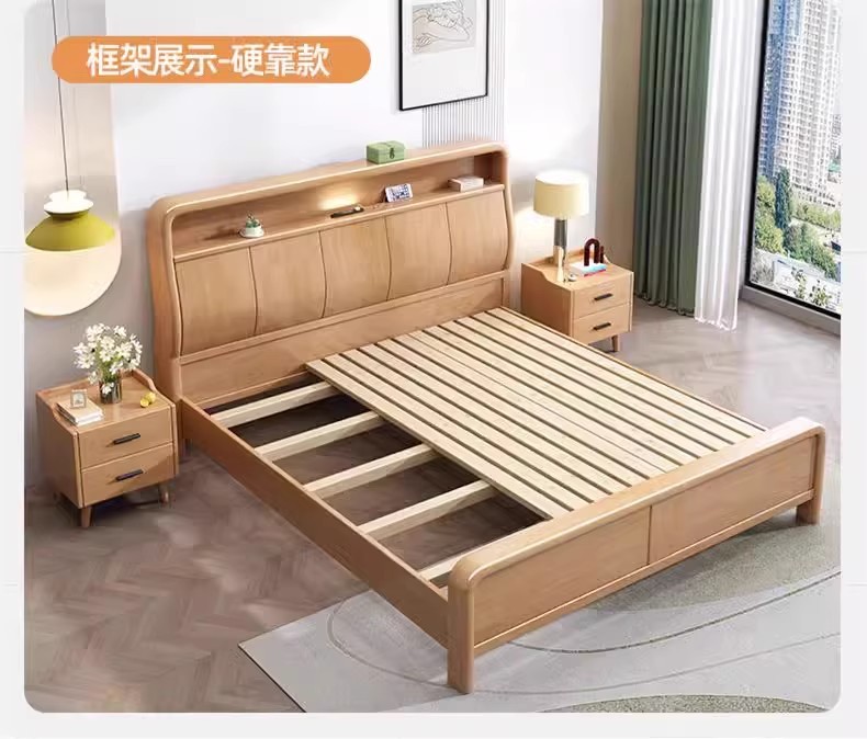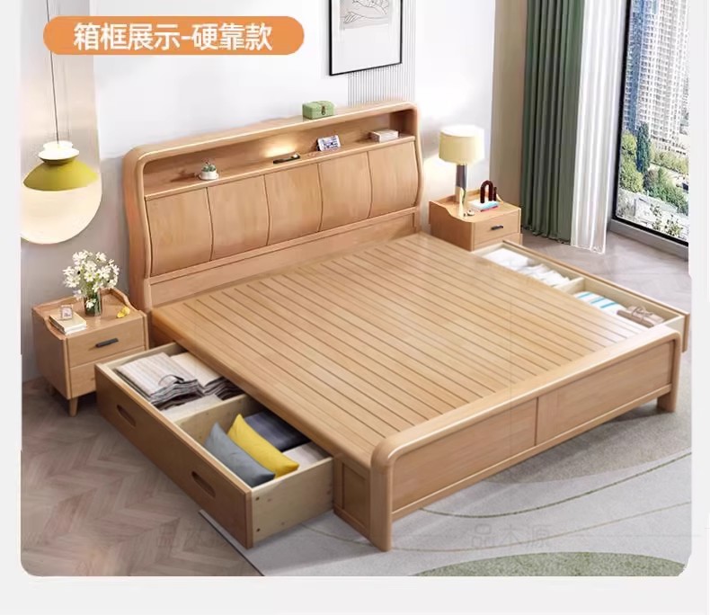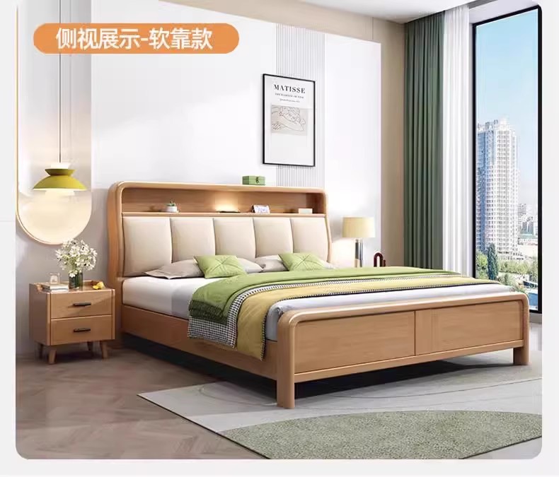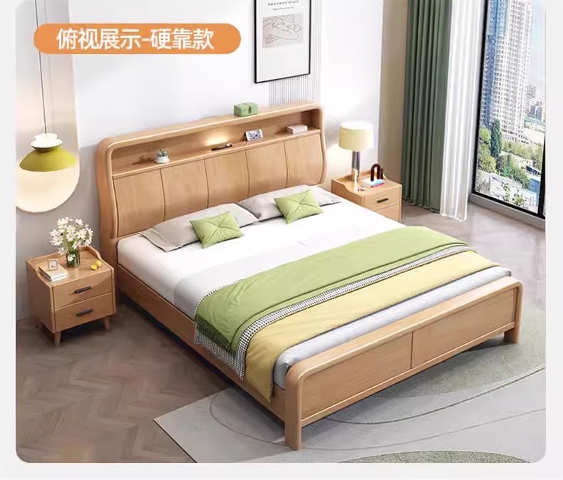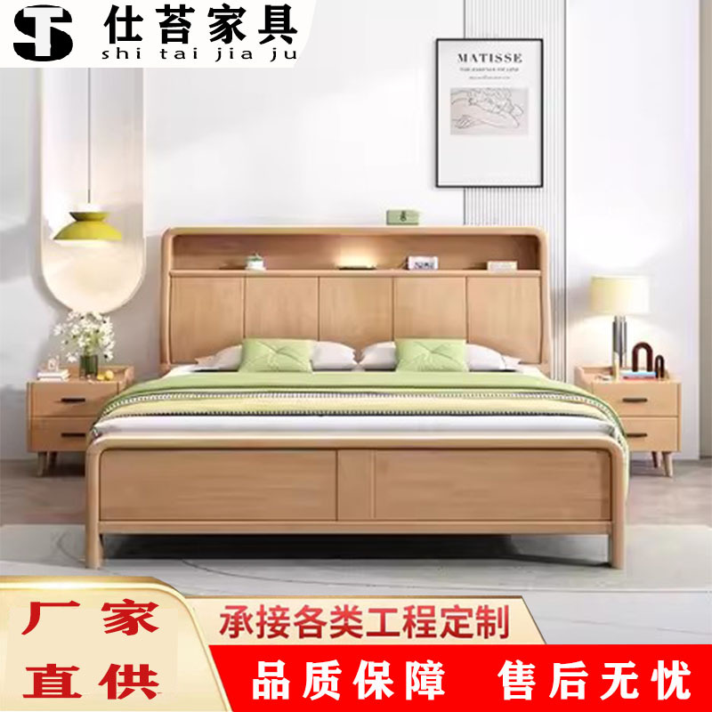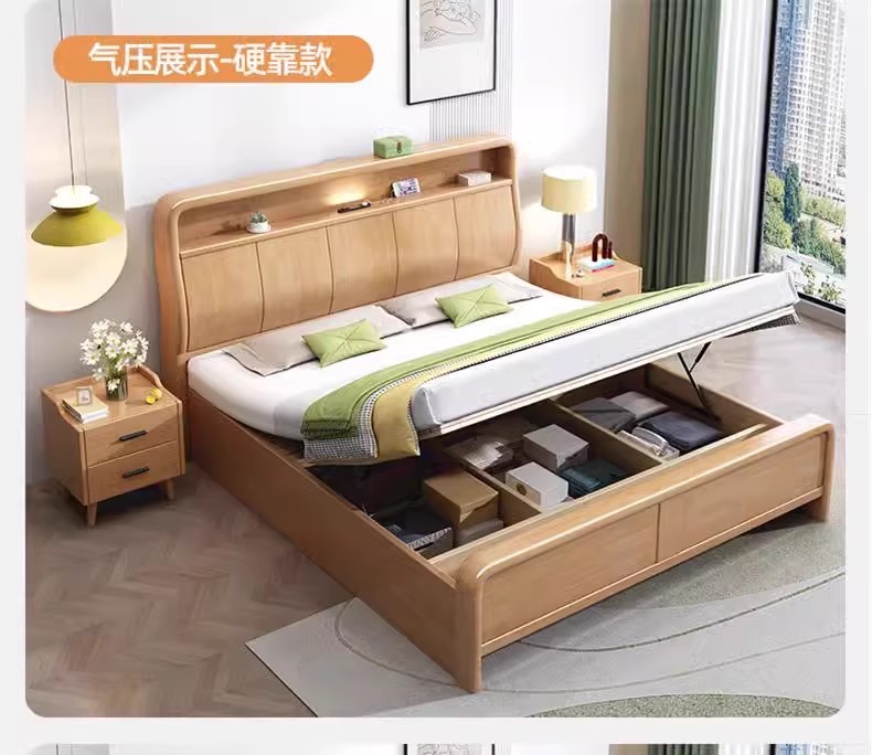 북유럽 1.8 m 마스터 침실 더블 침대 1.5 m 가정용 USB 램프 나무 침대 현대 간단한 높은 상자 보관 침대스토어 가기